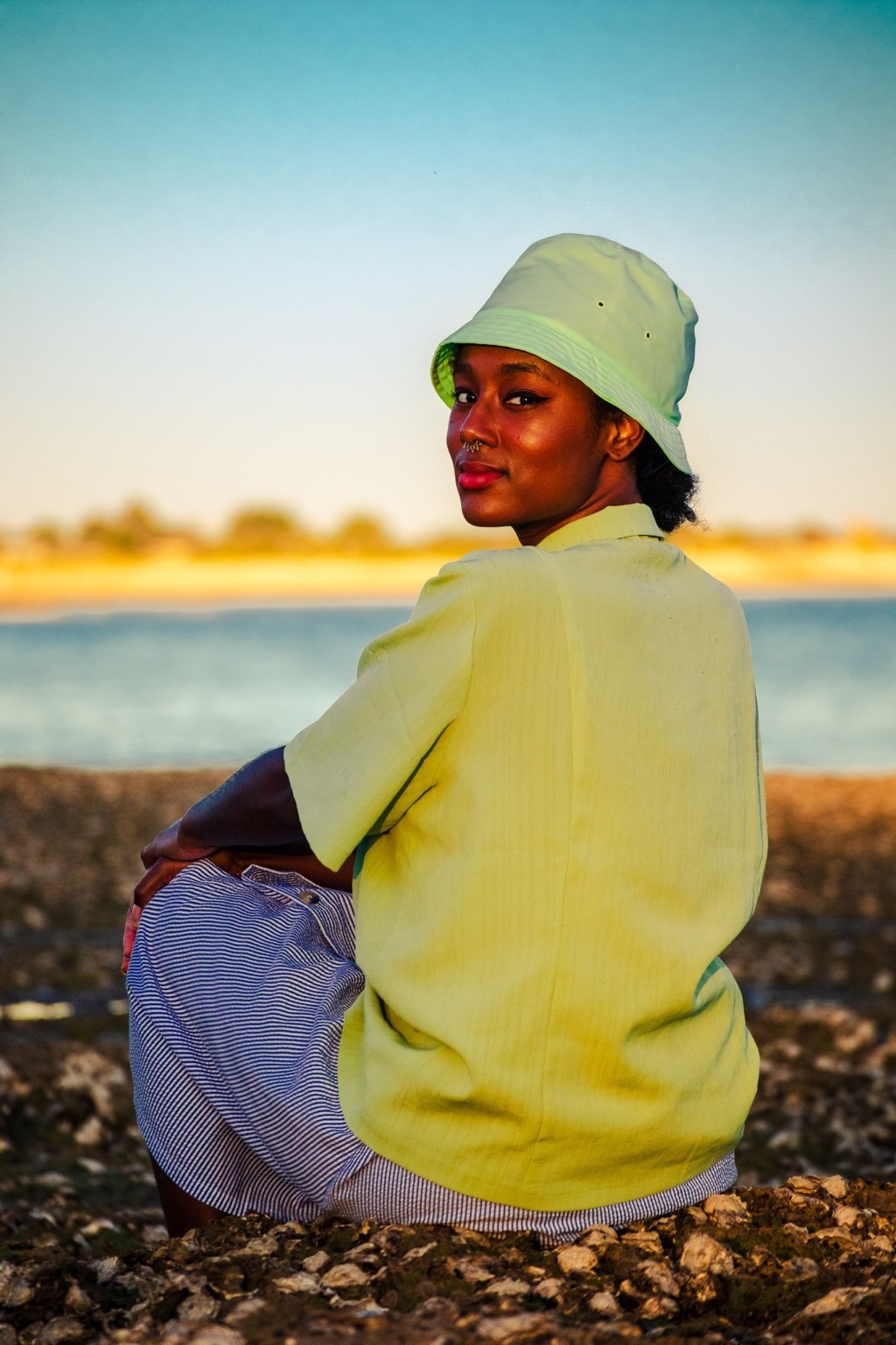 Amare, c’est aimer en latin. Mais sans objet. Juste le verbe. J’ai pris ce mot parce qu’il dit tout sans en rajouter. Il évoque l’instant, la grâce de l’instant. C’est une invitation douce. Une manière de dire : sois là, aime ce que tu vois, ce que tu vis. Ça colle parfaitement à l’ambiance du shoot. C’est à la fois universel et intime.