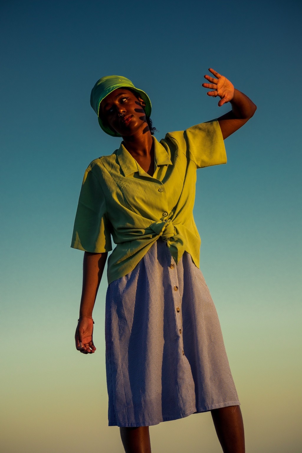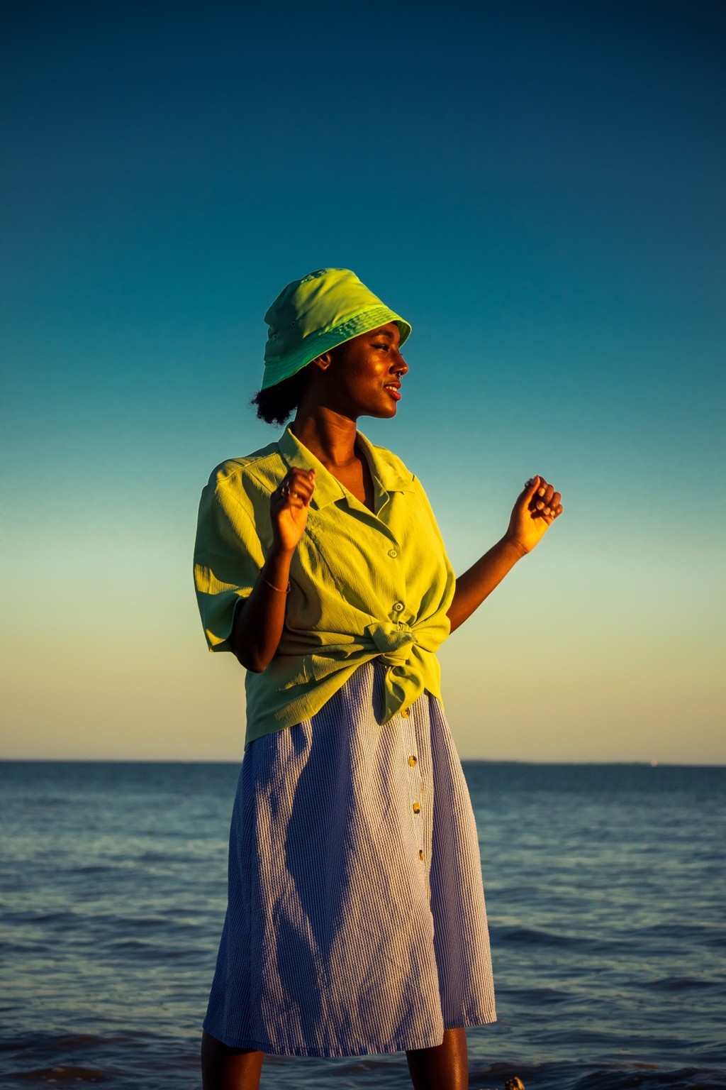 Je pensais à Tyler Mitchell, pour ce mélange entre douceur et lumière franche. Aussi un peu de Jacquemus pour les couleurs, ou des campagnes Mango version été. Le style, c’est du minimal solaire. Ça évoque les vacances, mais avec une âme. Un truc méditerranéen, mais pas carte postale.
