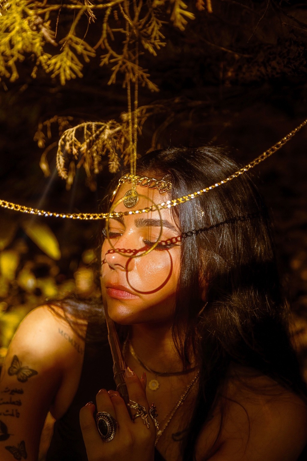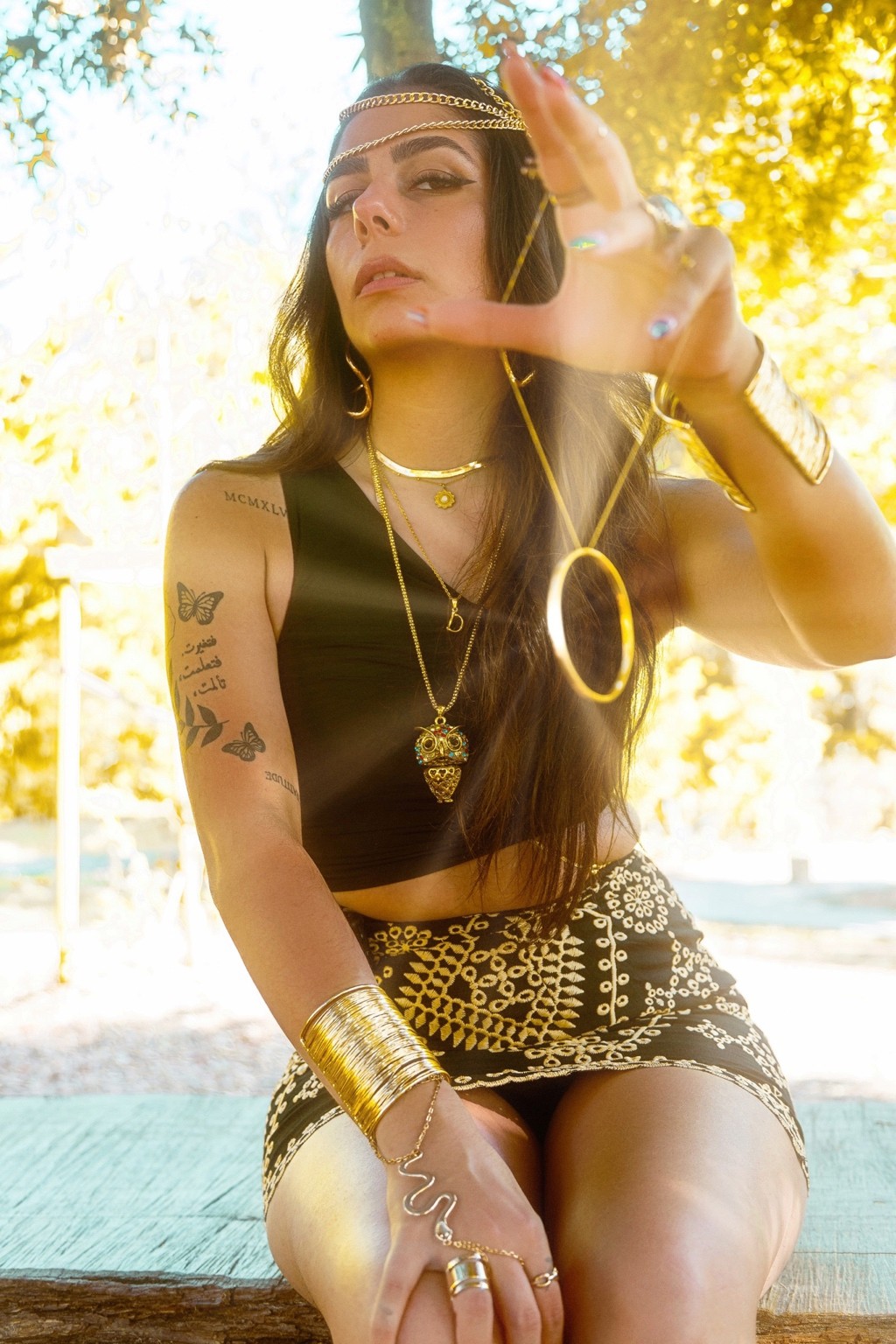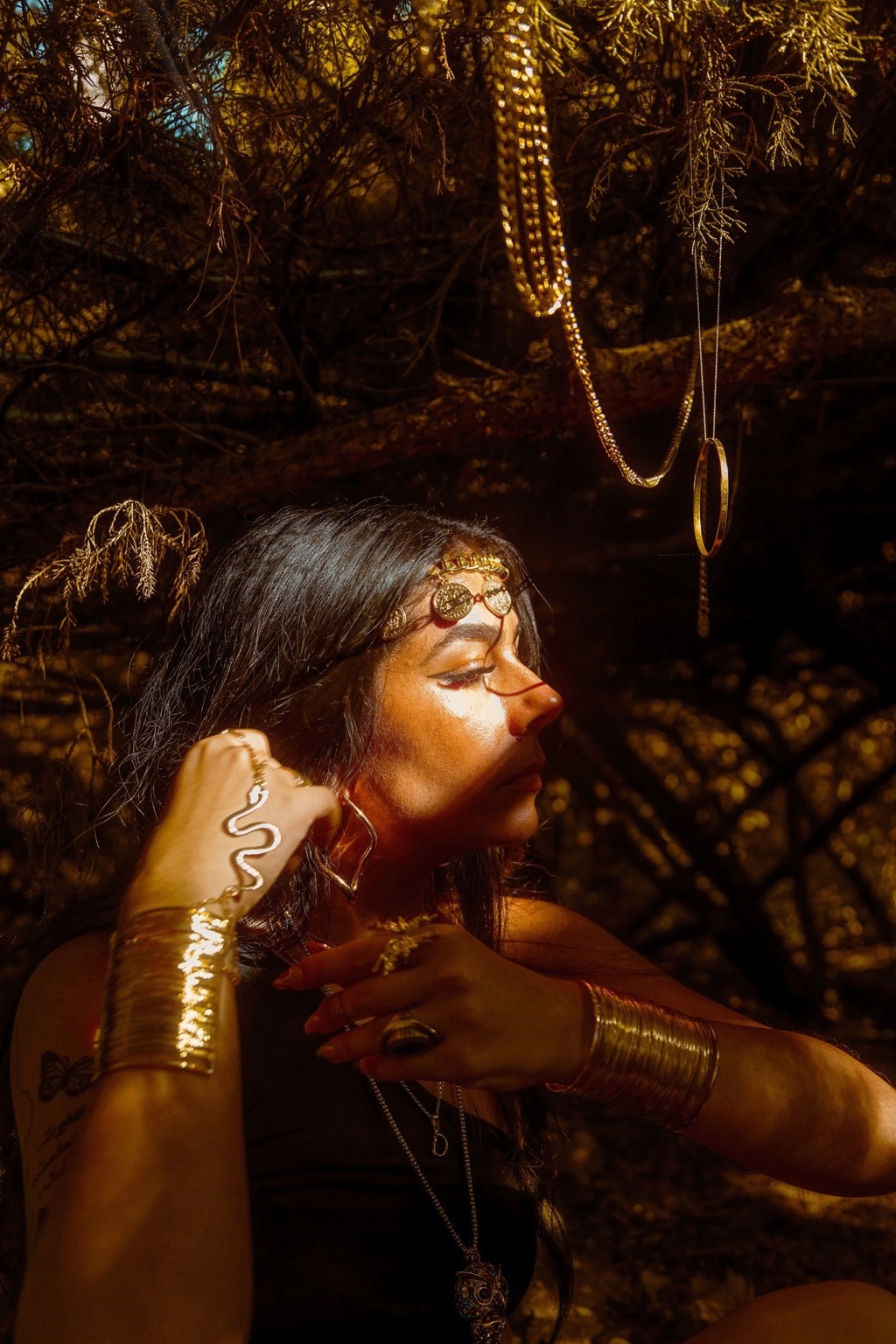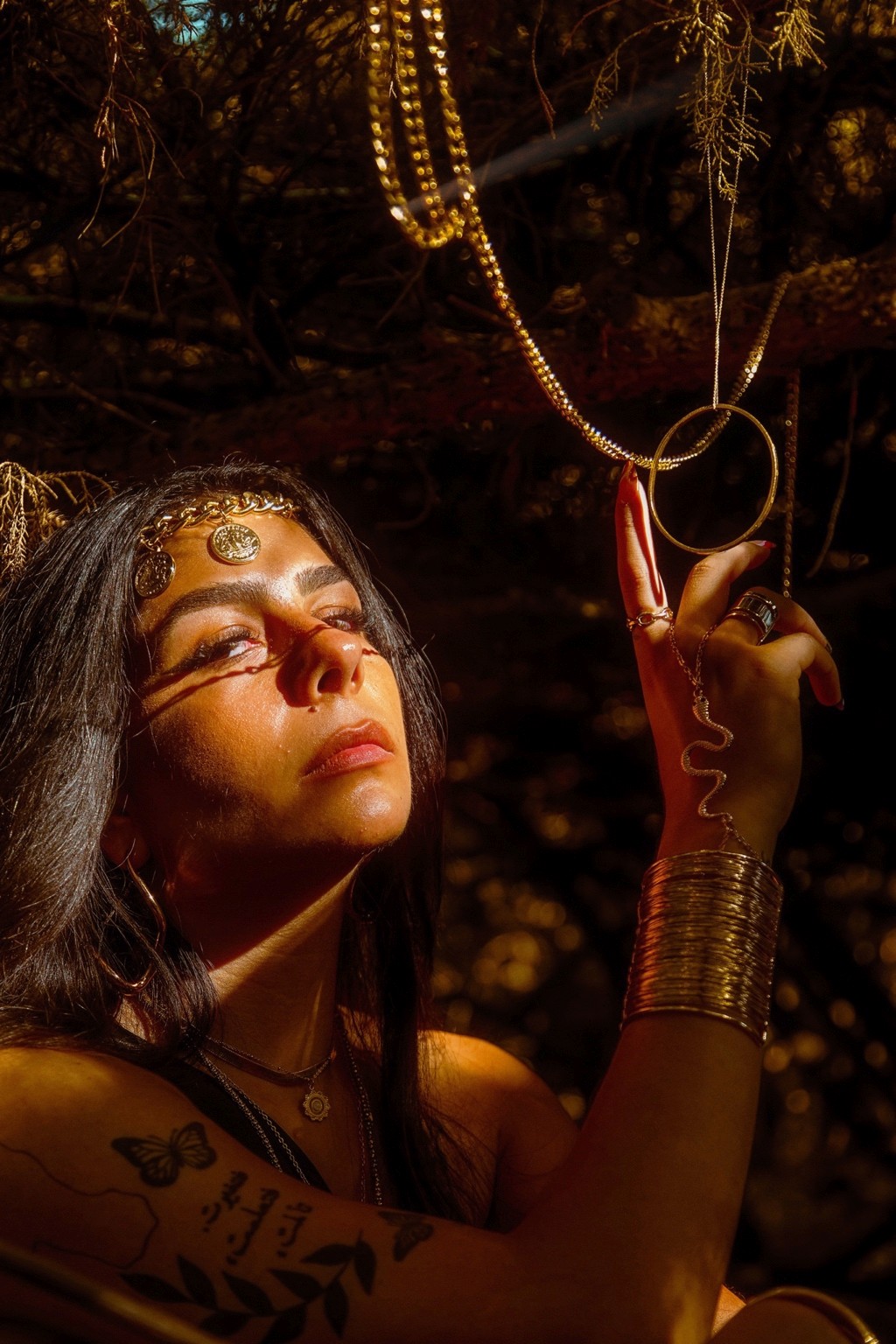 Aurum, c’est l’or. Wicca, c’est la sorcellerie. Ensemble, ça donne une forme de magie brillante, assumée. J’ai choisi ce nom parce qu’il disait tout sans avoir besoin d’expliquer. Ce n’est pas une esthétique : c’est une énergie. Celle de pouvoir briller, d’être excessive, d’être mystique sans se cacher. Delal a tout incarné. C’était clair dès les premiers tests : cette série serait solaire, totale, dorée.