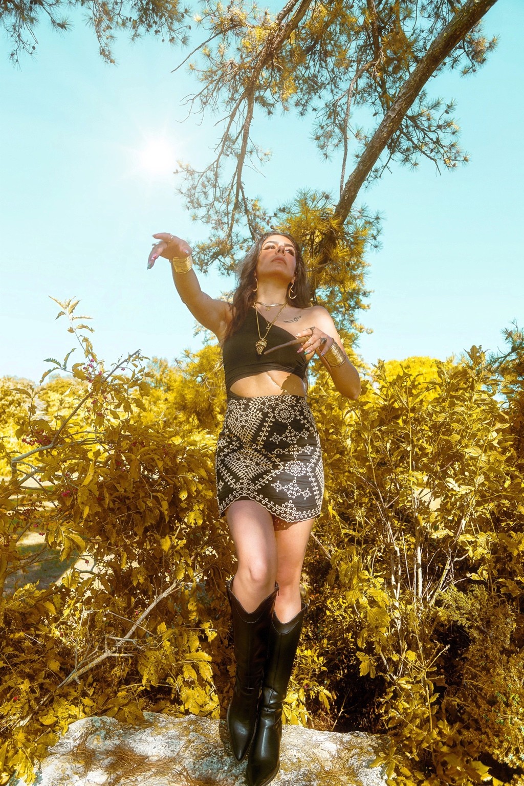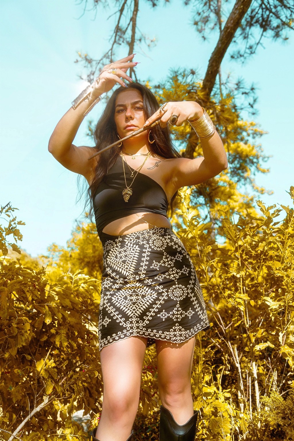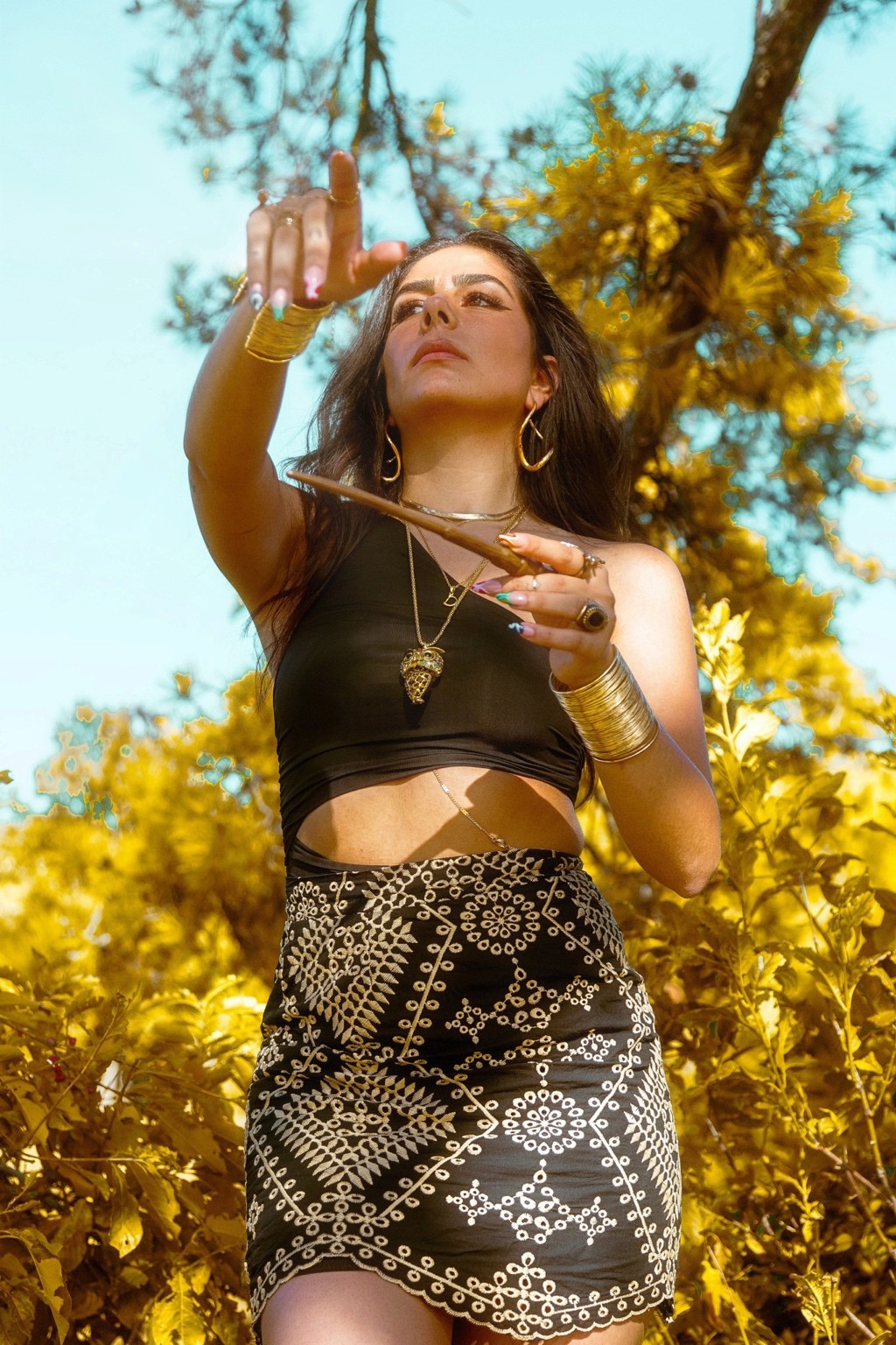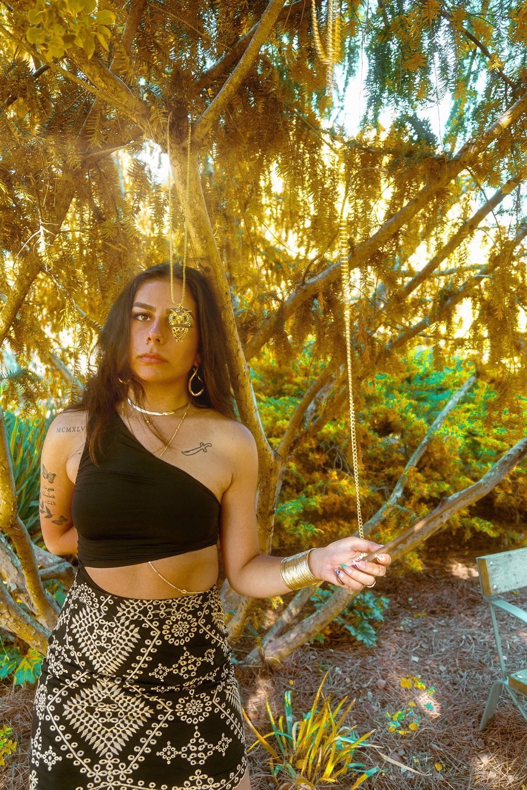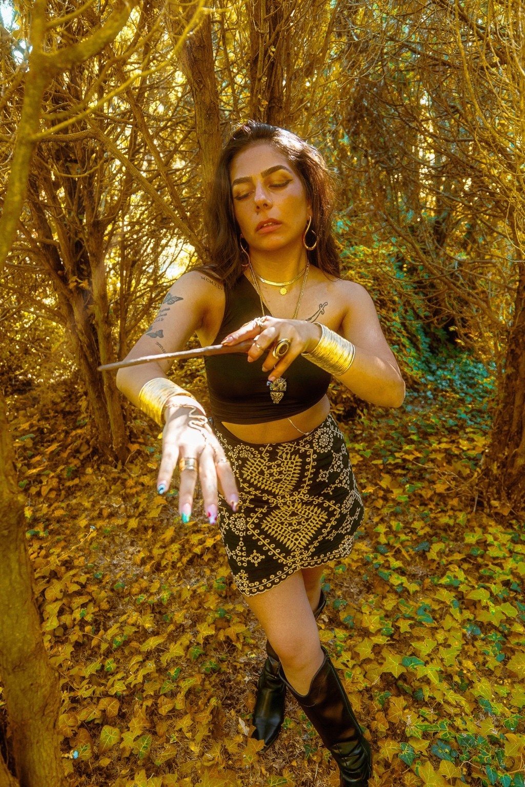 Aurum, c’est l’or. Wicca, c’est la sorcellerie. Ensemble, ça donne une forme de magie brillante, assumée. J’ai choisi ce nom parce qu’il disait tout sans avoir besoin d’expliquer. Ce n’est pas une esthétique : c’est une énergie. Celle de pouvoir briller, d’être excessive, d’être mystique sans se cacher. Delal a tout incarné. C’était clair dès les premiers tests : cette série serait solaire, totale, dorée.