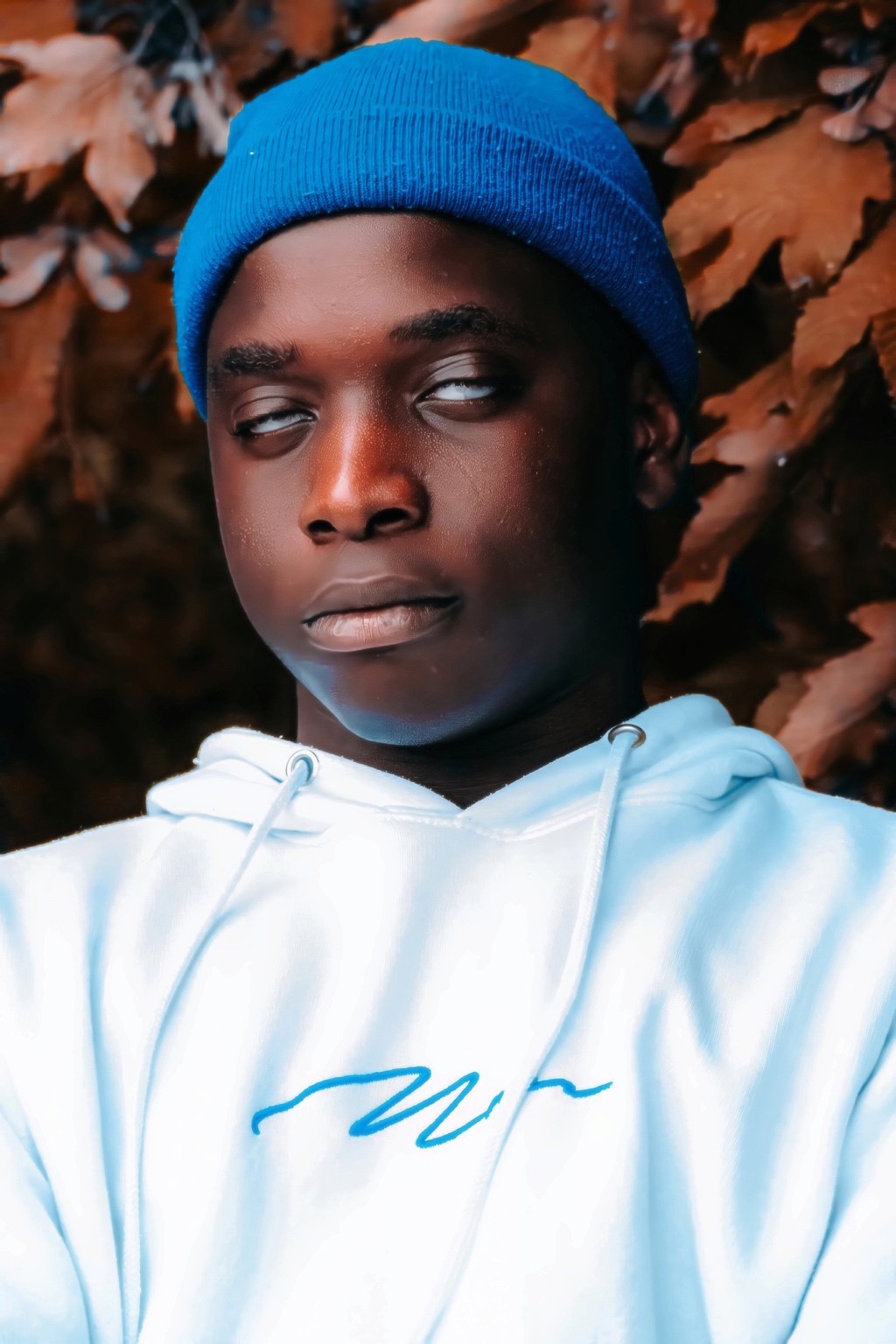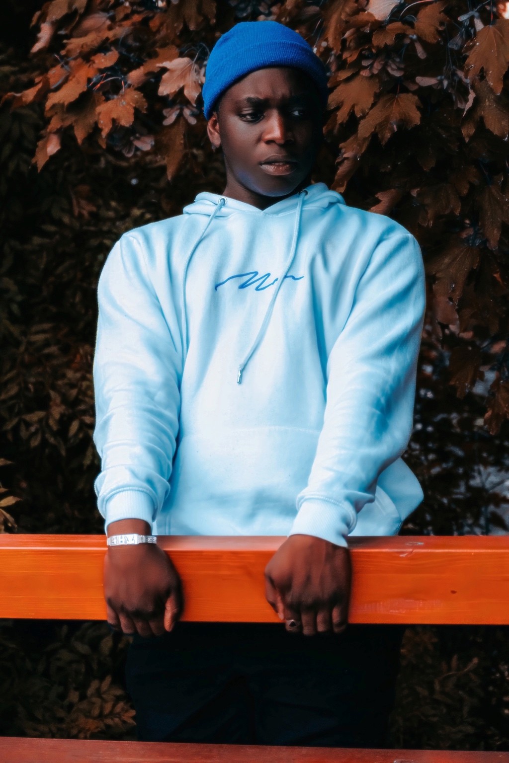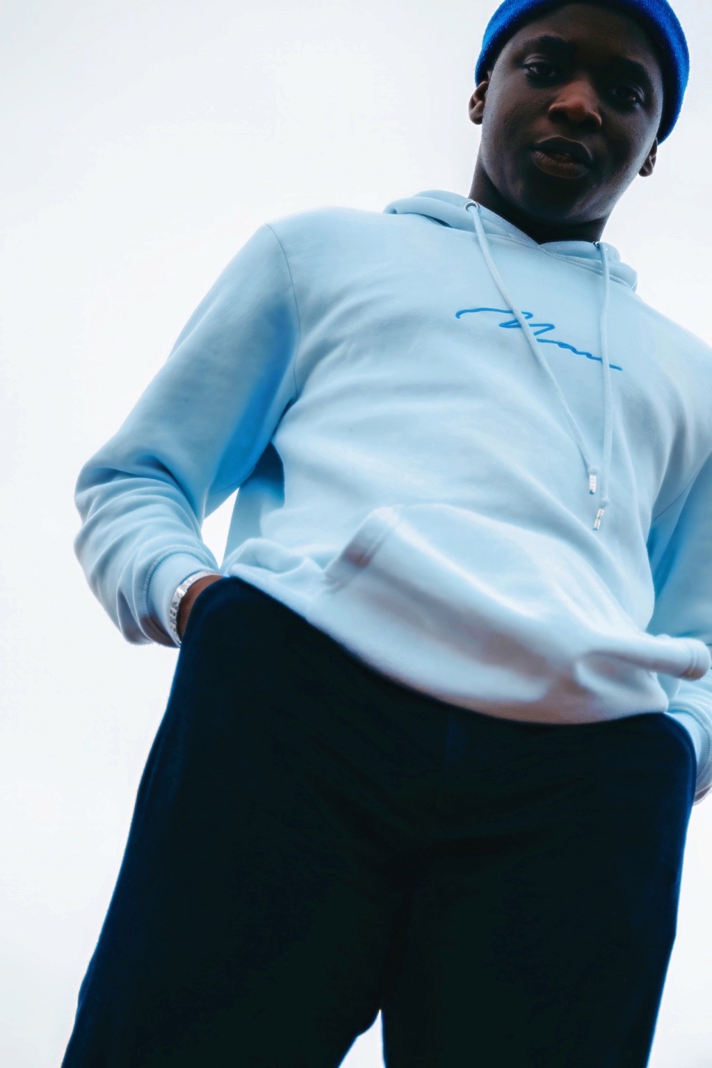 Blueissh, c’est un jeu sur le mot “blue” et le suffixe “-ish”. Ça veut dire : un peu bleu, ou dans le mood du bleu. Pas juste une couleur, une sensation. J’ai choisi ce mot parce qu’il dit ce flottement, cette nuance douce. C’est pas bleu pur, c’est un bleu d’état d’âme. Et c’est exactement l’esprit du shoot.