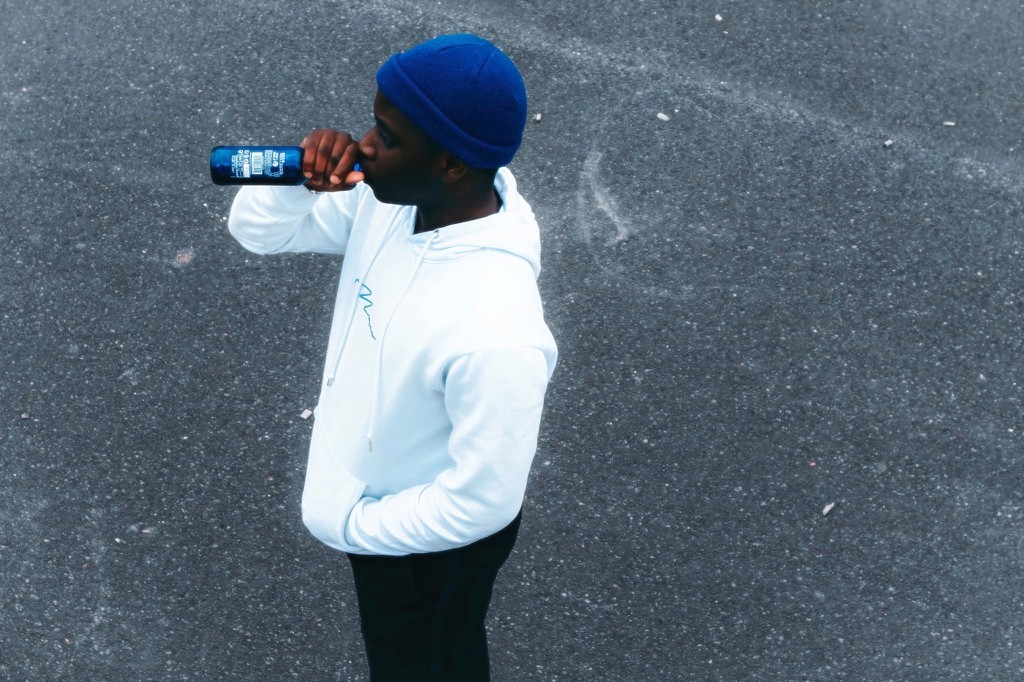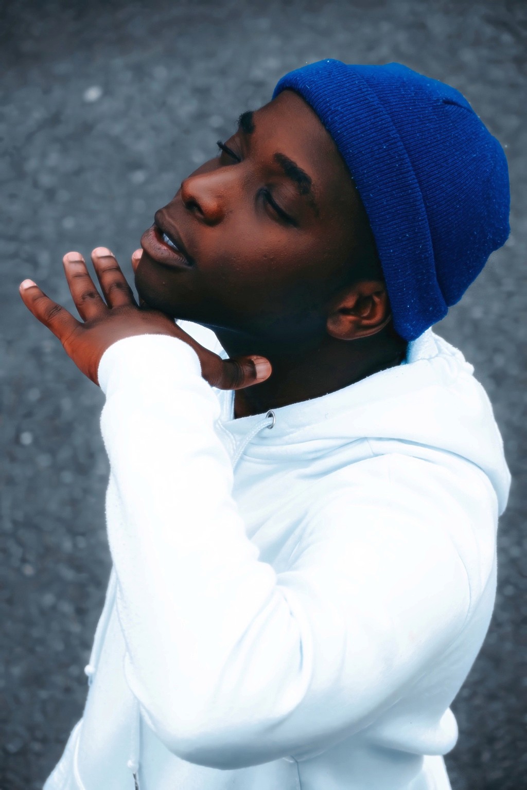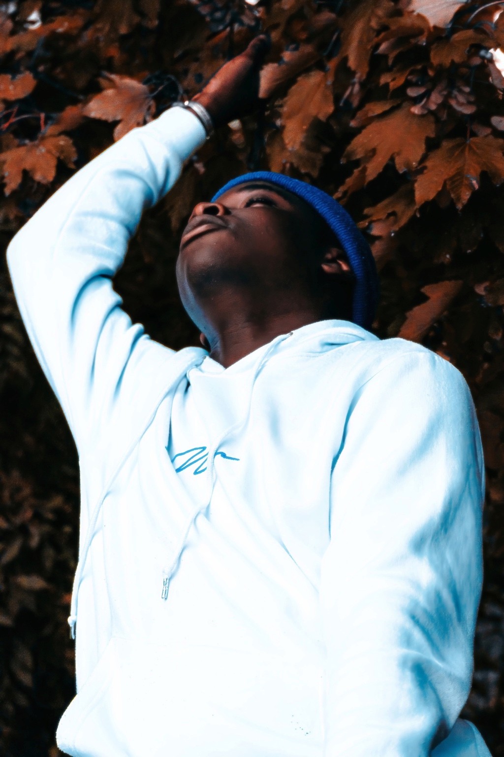 Blueissh, c’est un jeu sur le mot “blue” et le suffixe “-ish”. Ça veut dire : un peu bleu, ou dans le mood du bleu. Pas juste une couleur, une sensation. J’ai choisi ce mot parce qu’il dit ce flottement, cette nuance douce. C’est pas bleu pur, c’est un bleu d’état d’âme. Et c’est exactement l’esprit du shoot.