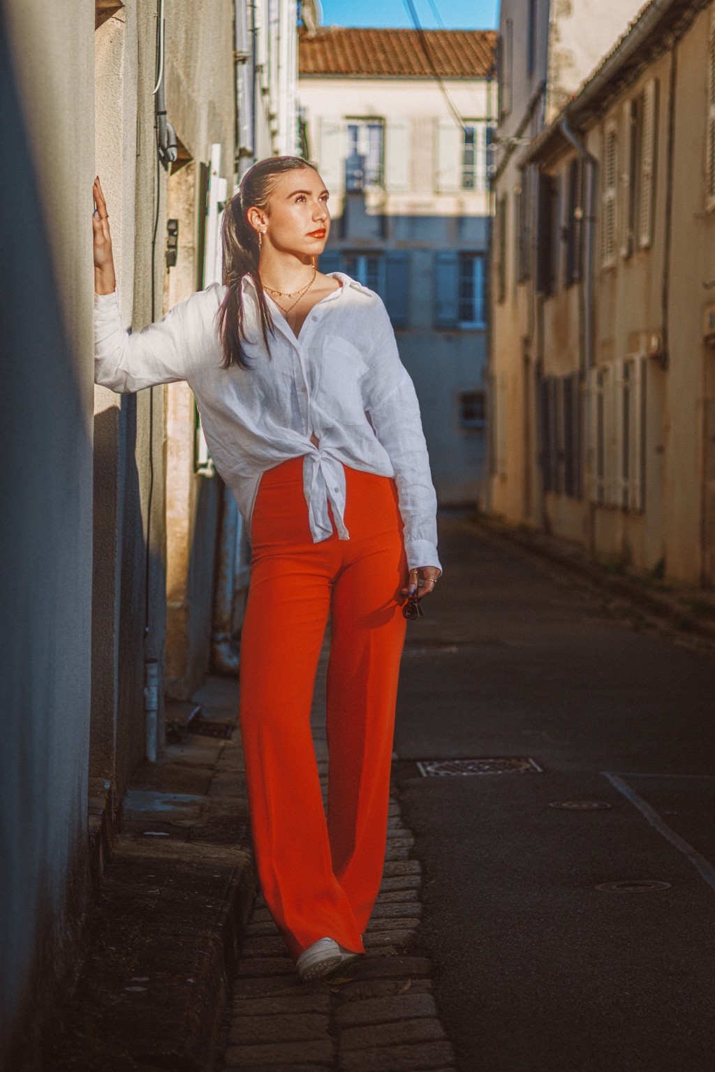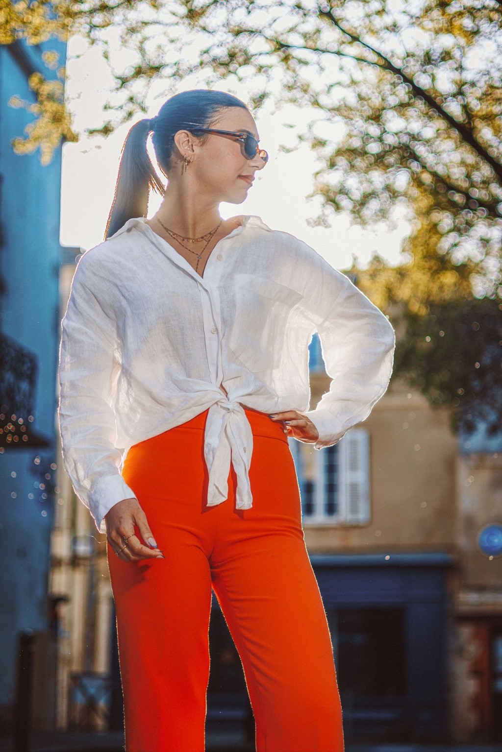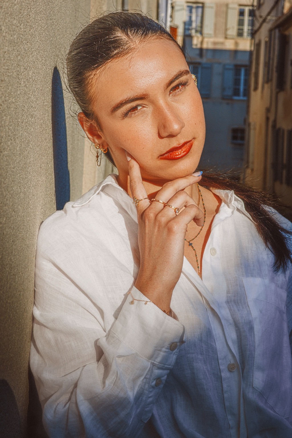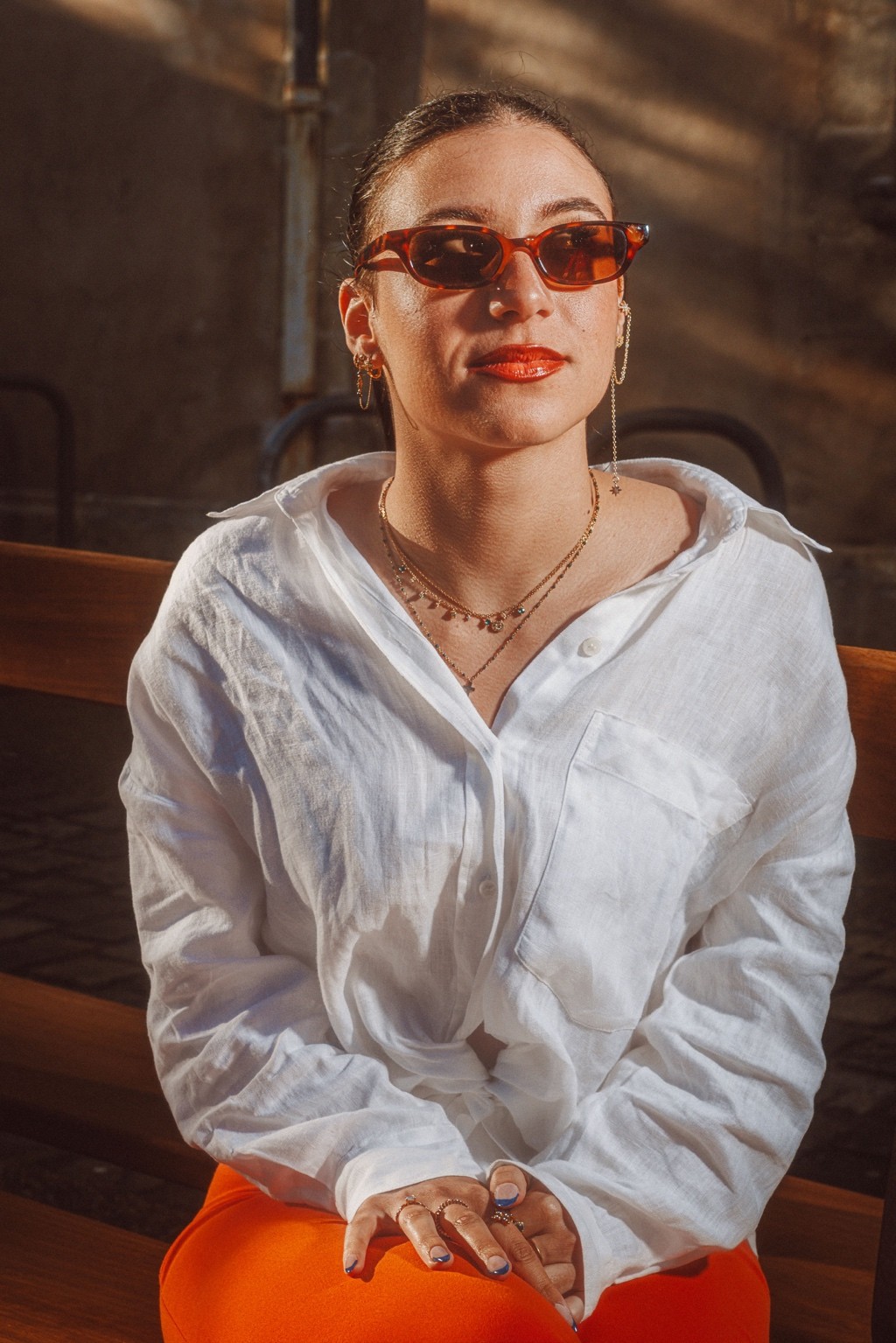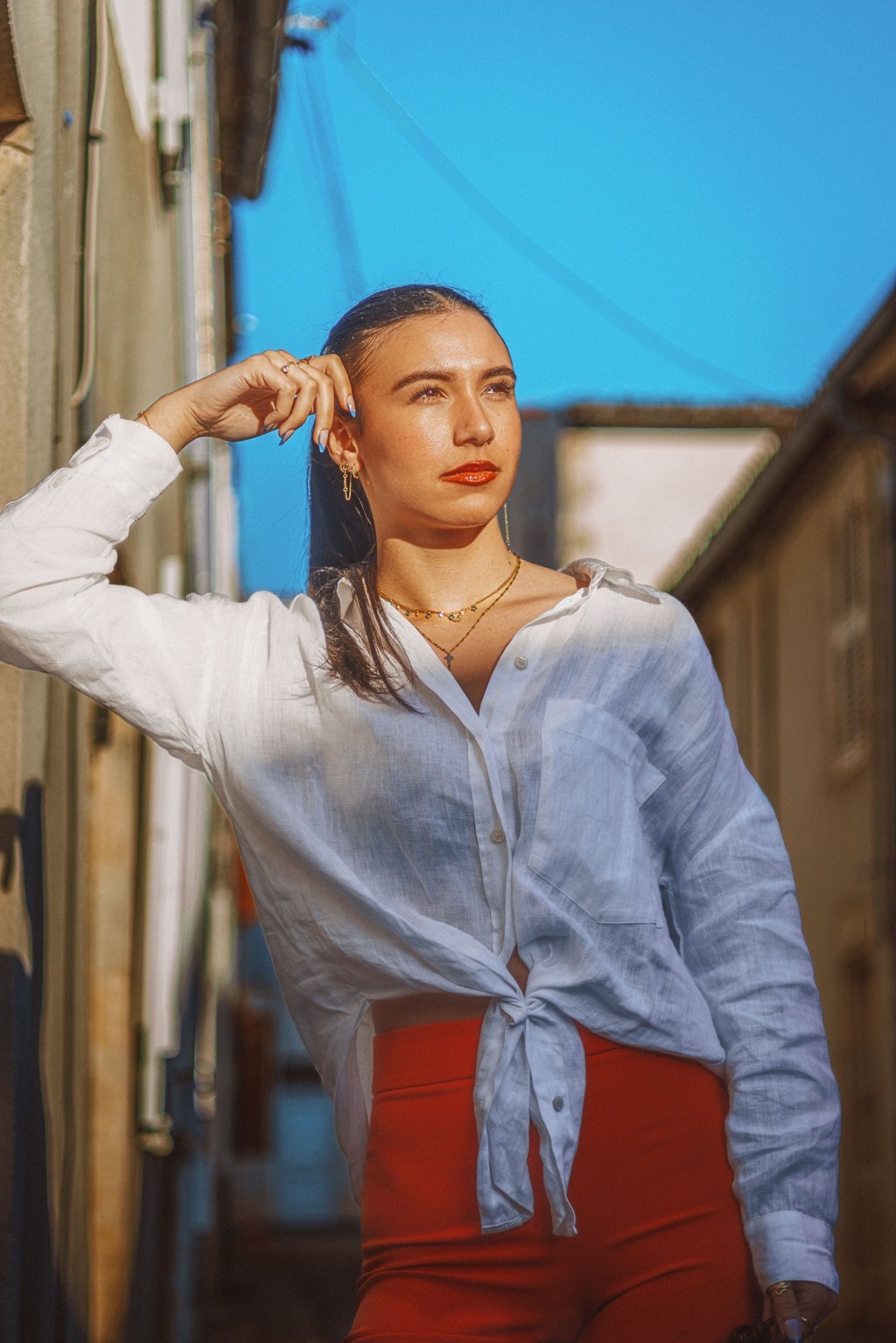 On pense à des éditos mode d’été version Elle ou Vogue Italie, à certains plans de films de Luca Guadagnino ou clips d’Aurora James où la lumière devient presque personnage. C’est une vibe entre sensualité maîtrisée et confiance solaire. Les teintes chaudes et textures naturelles évoquent une fin d’après-midi à Rome ou Séville, entre ruelle et terrasse. C’est du cinéma de rue stylisé, pas du lifestyle figé.