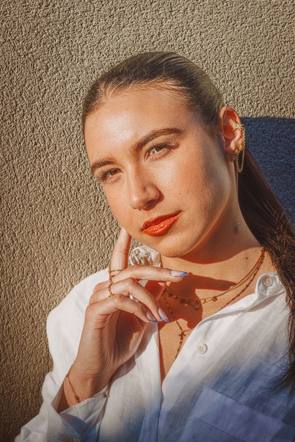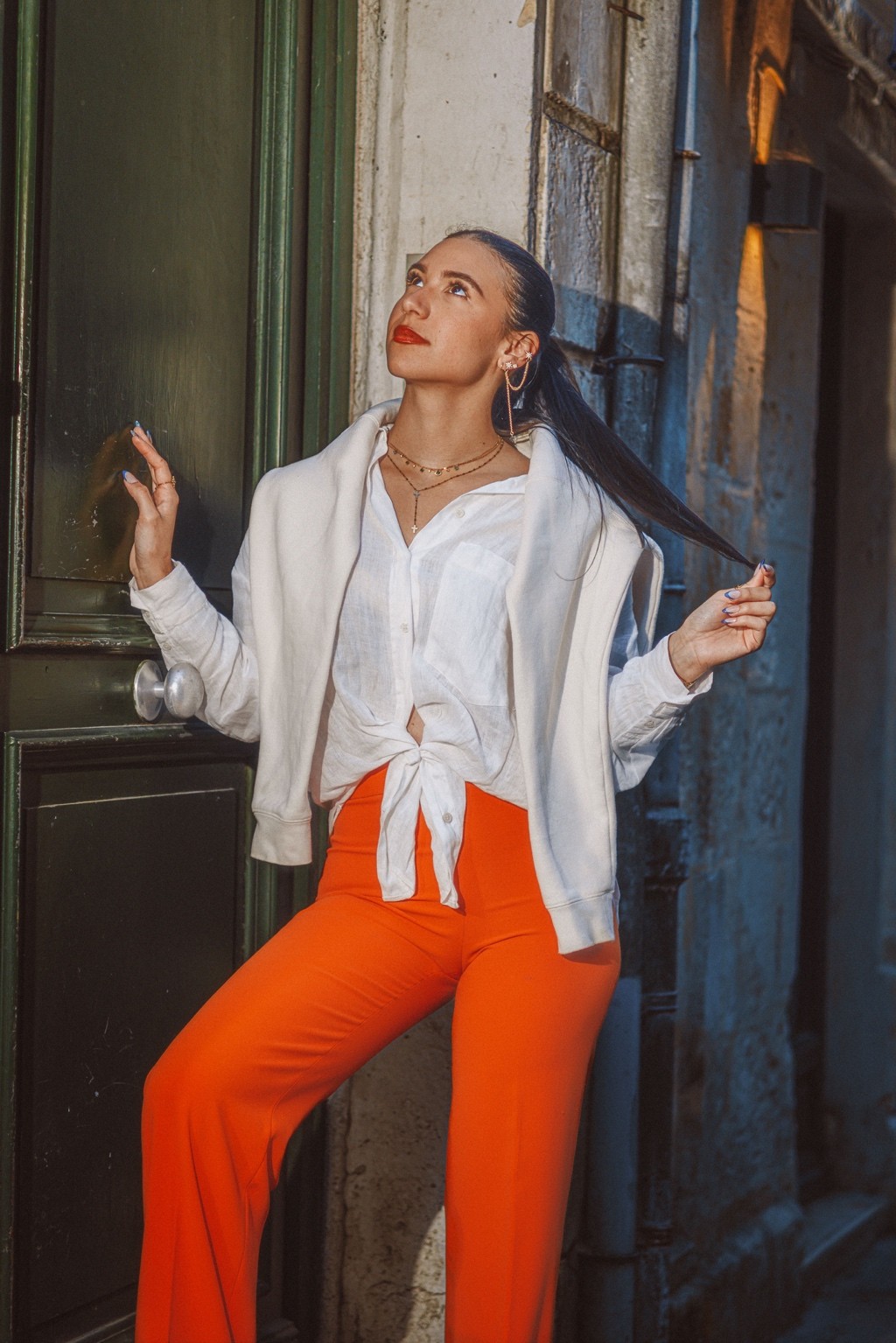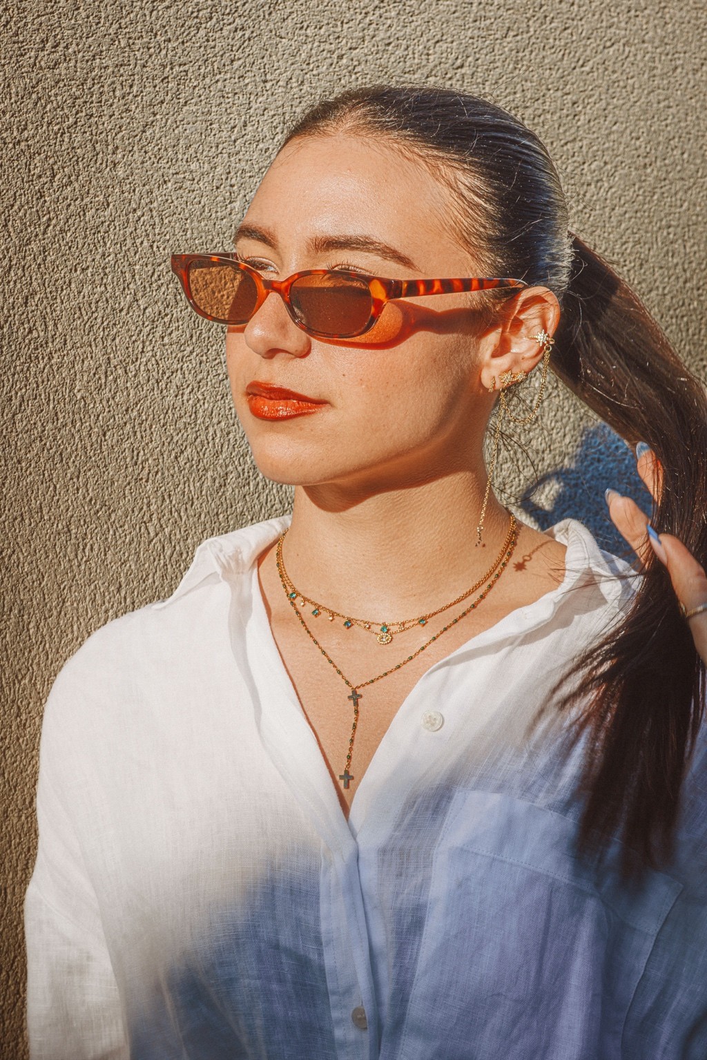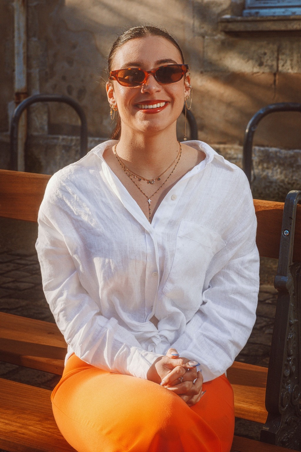 On pense à des éditos mode d’été version Elle ou Vogue Italie, à certains plans de films de Luca Guadagnino ou clips d’Aurora James où la lumière devient presque personnage. C’est une vibe entre sensualité maîtrisée et confiance solaire. Les teintes chaudes et textures naturelles évoquent une fin d’après-midi à Rome ou Séville, entre ruelle et terrasse. C’est du cinéma de rue stylisé, pas du lifestyle figé.