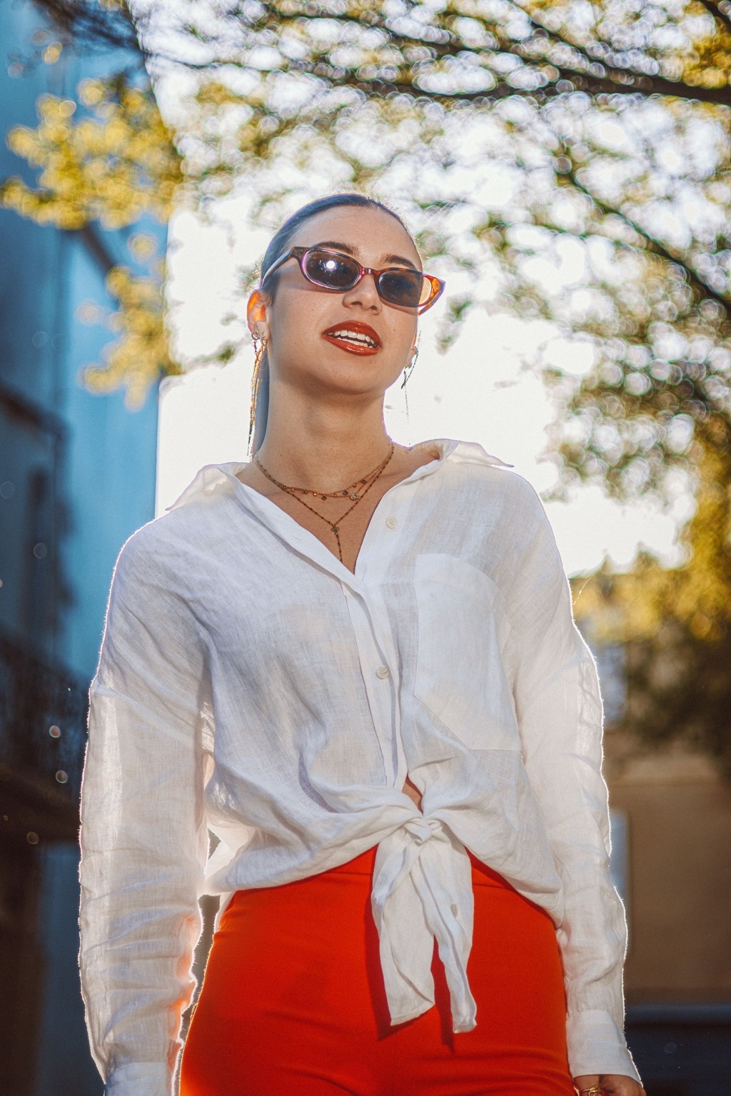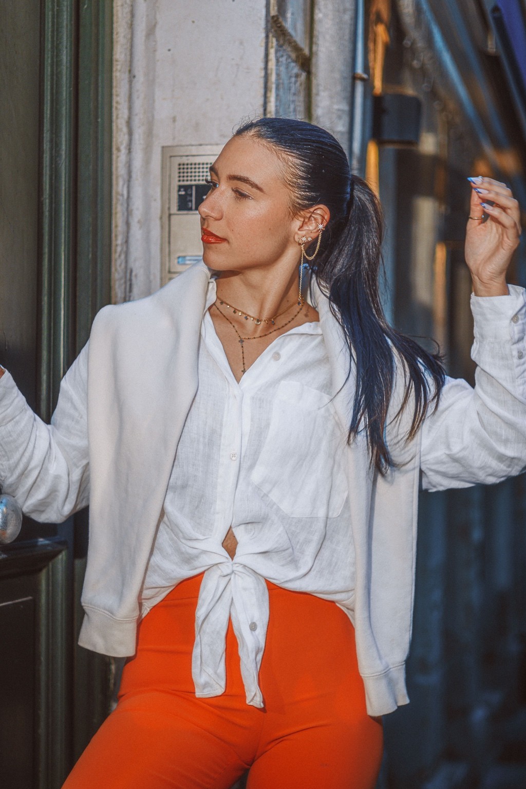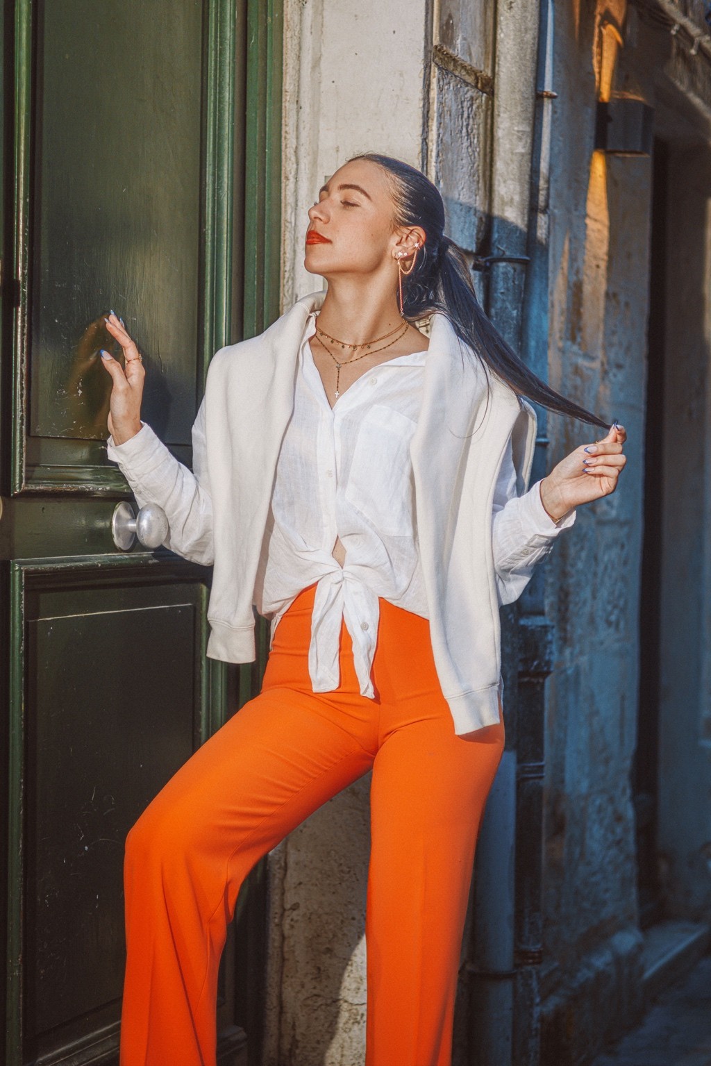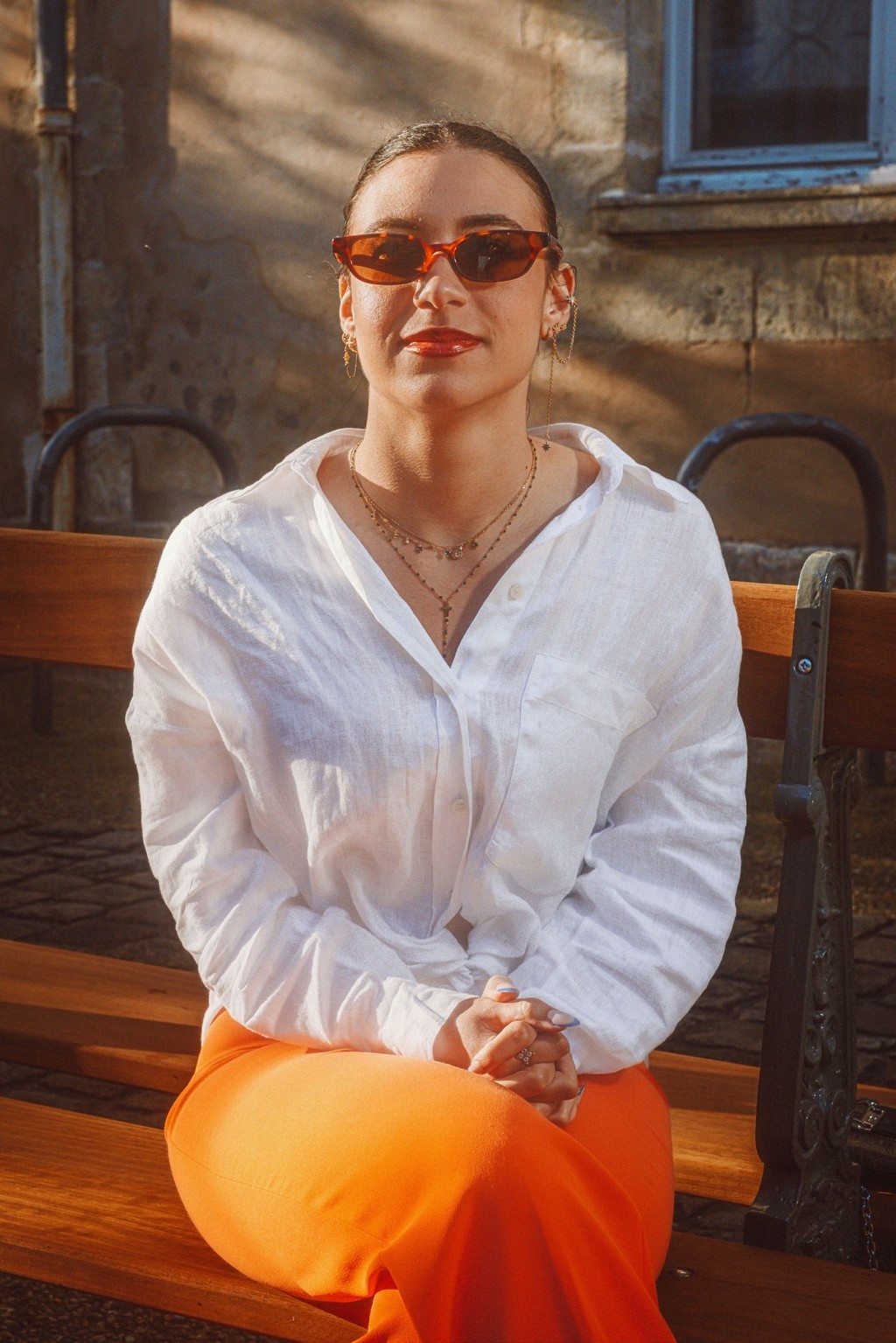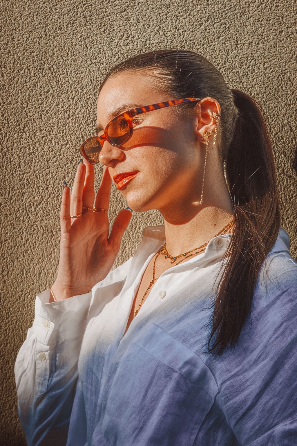 On pense à des éditos mode d’été version Elle ou Vogue Italie, à certains plans de films de Luca Guadagnino ou clips d’Aurora James où la lumière devient presque personnage. C’est une vibe entre sensualité maîtrisée et confiance solaire. Les teintes chaudes et textures naturelles évoquent une fin d’après-midi à Rome ou Séville, entre ruelle et terrasse. C’est du cinéma de rue stylisé, pas du lifestyle figé.
