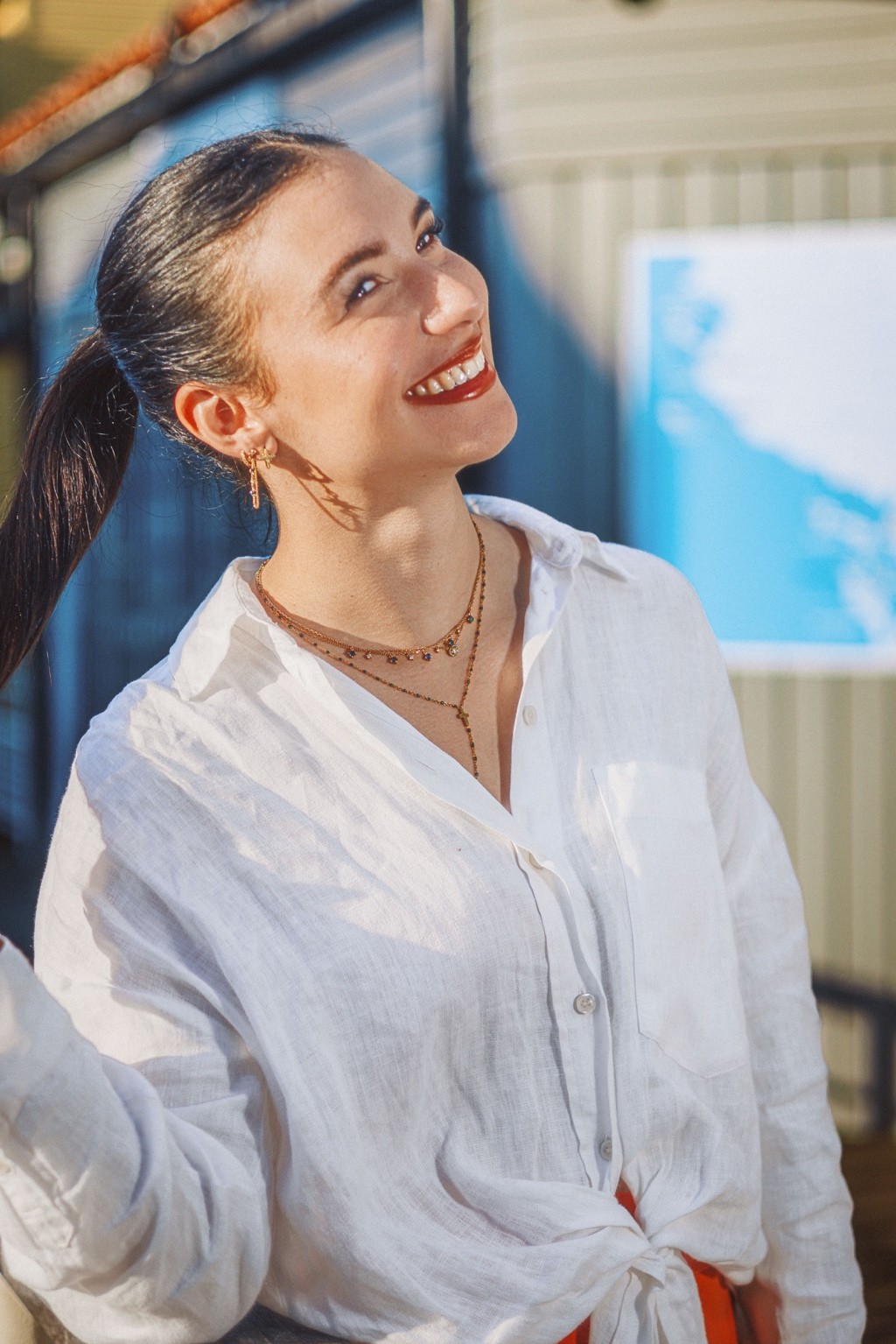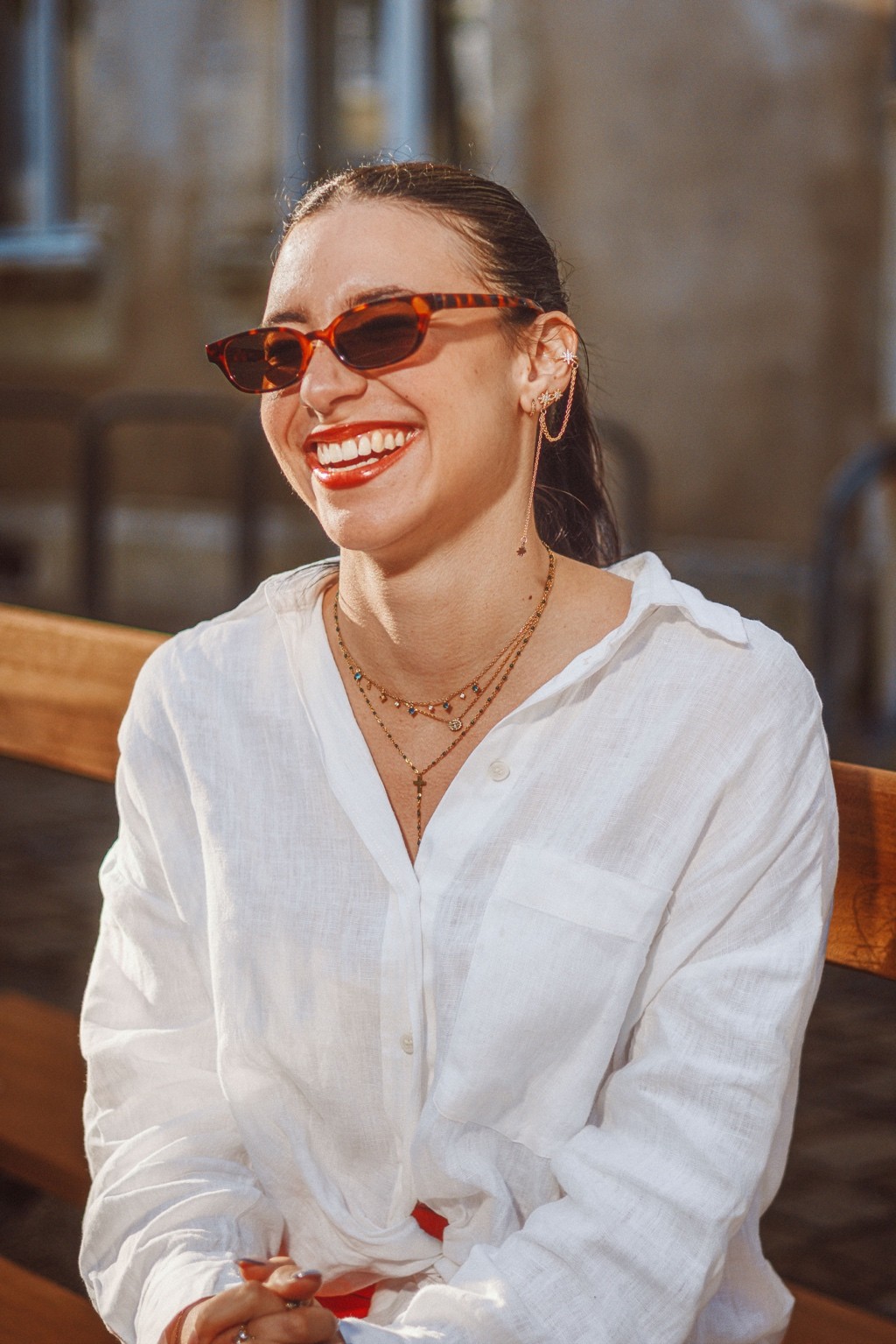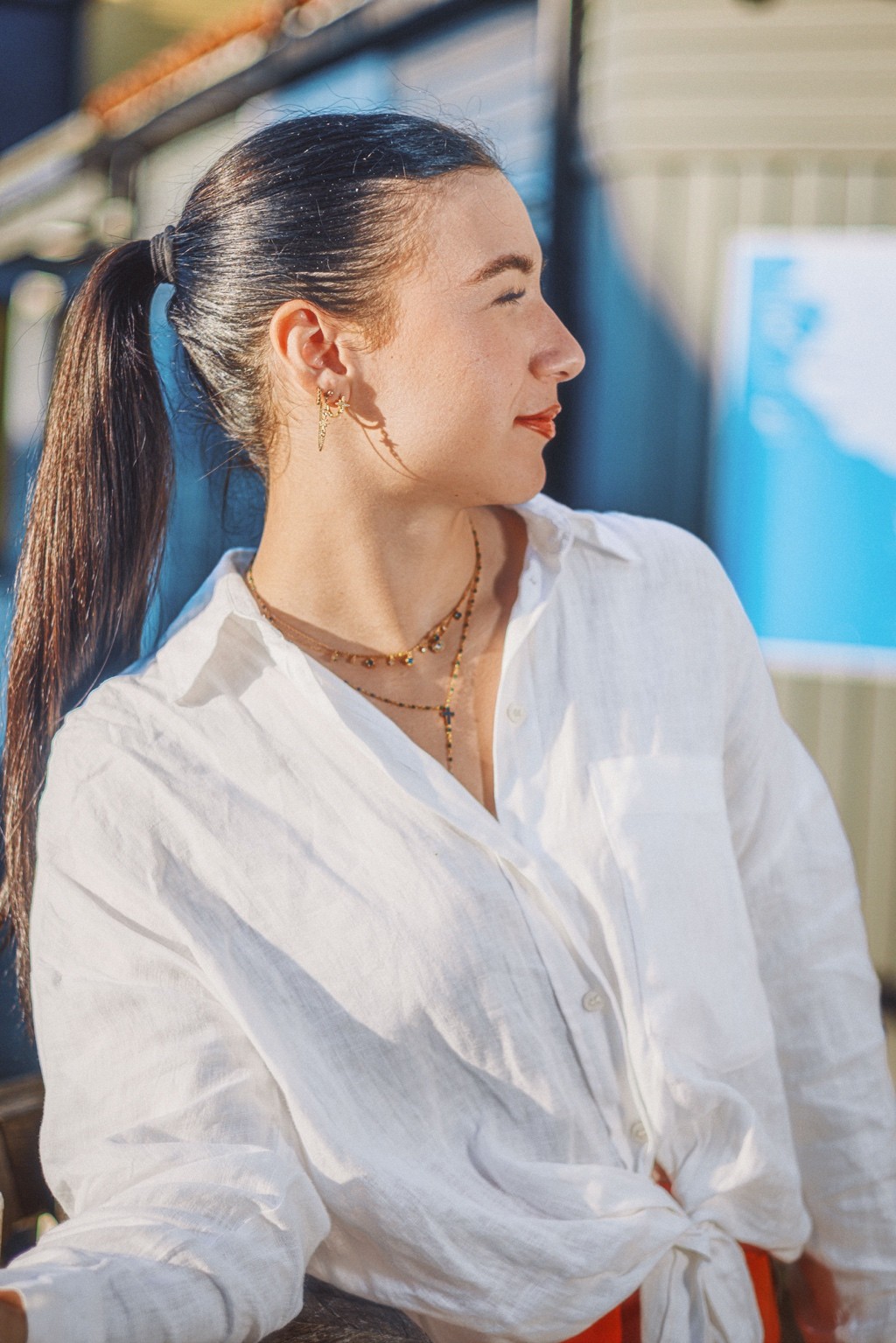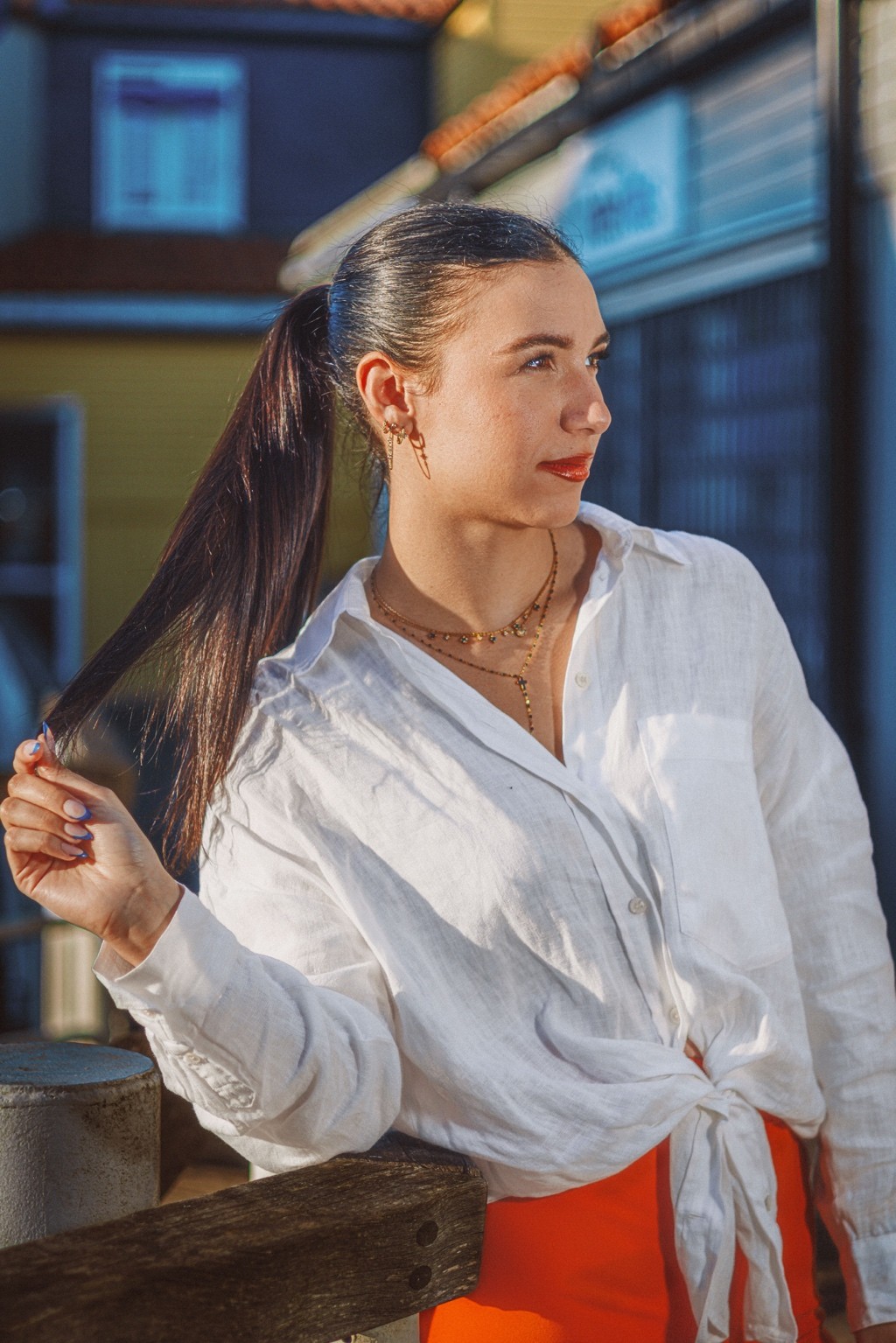 On pense à des éditos mode d’été version Elle ou Vogue Italie, à certains plans de films de Luca Guadagnino ou clips d’Aurora James où la lumière devient presque personnage. C’est une vibe entre sensualité maîtrisée et confiance solaire. Les teintes chaudes et textures naturelles évoquent une fin d’après-midi à Rome ou Séville, entre ruelle et terrasse. C’est du cinéma de rue stylisé, pas du lifestyle figé.