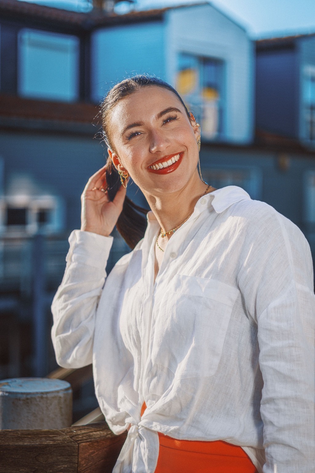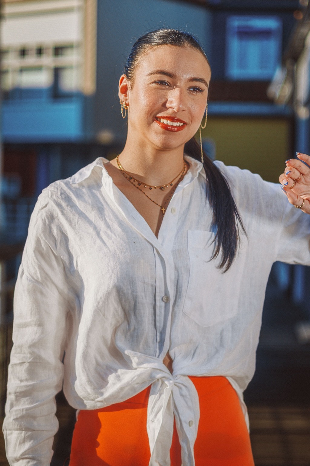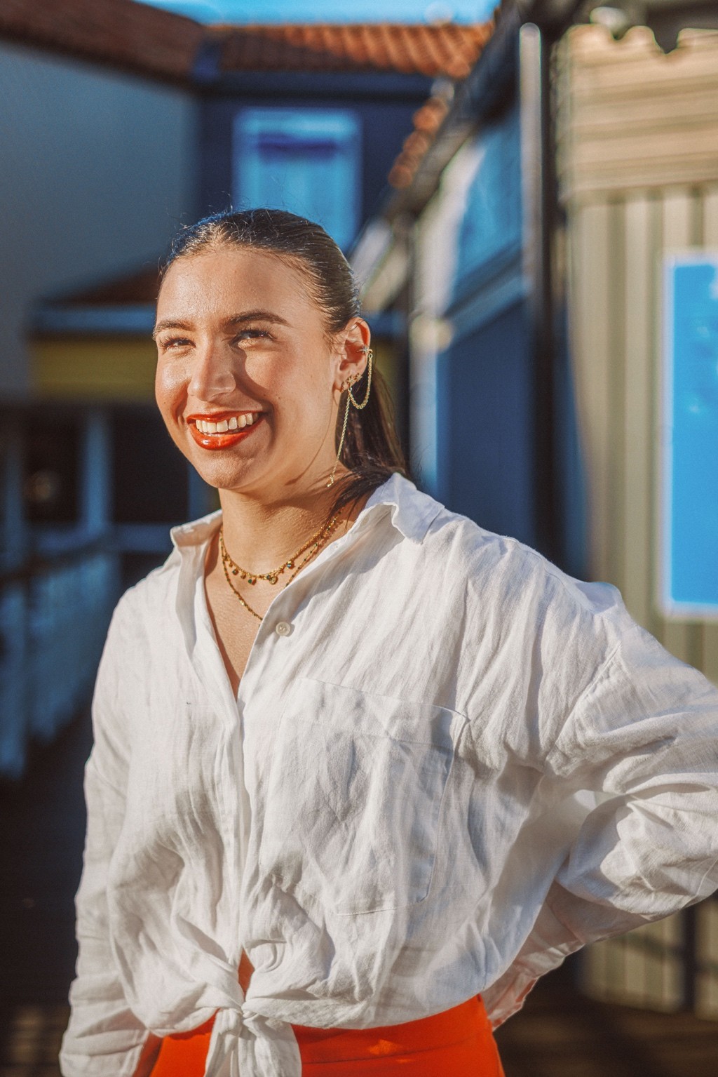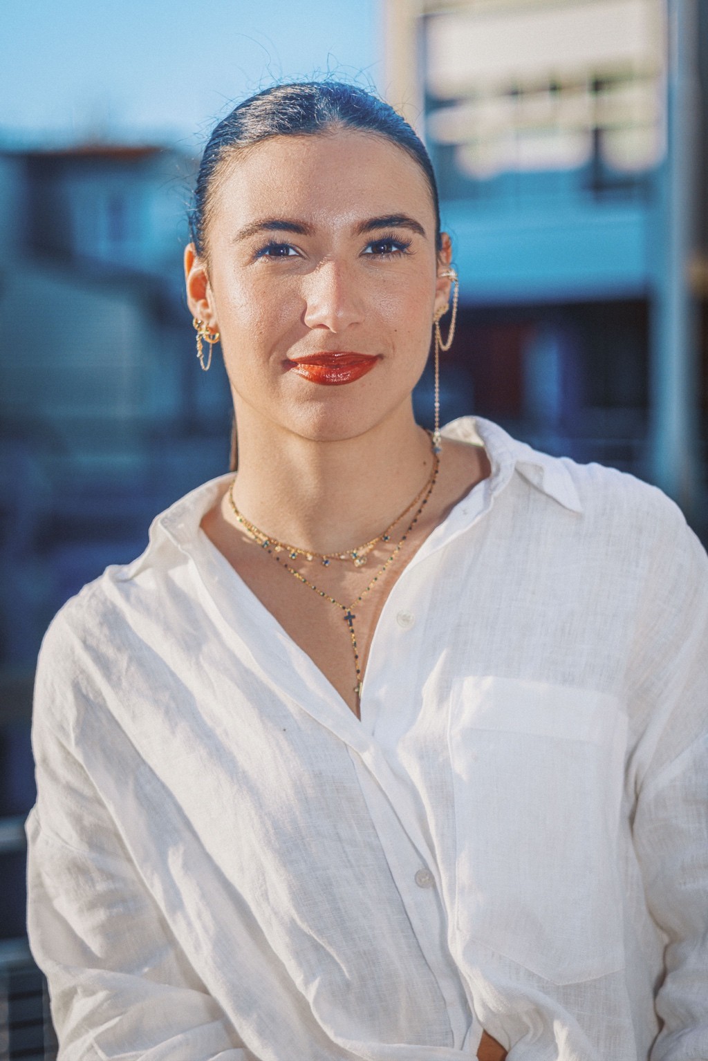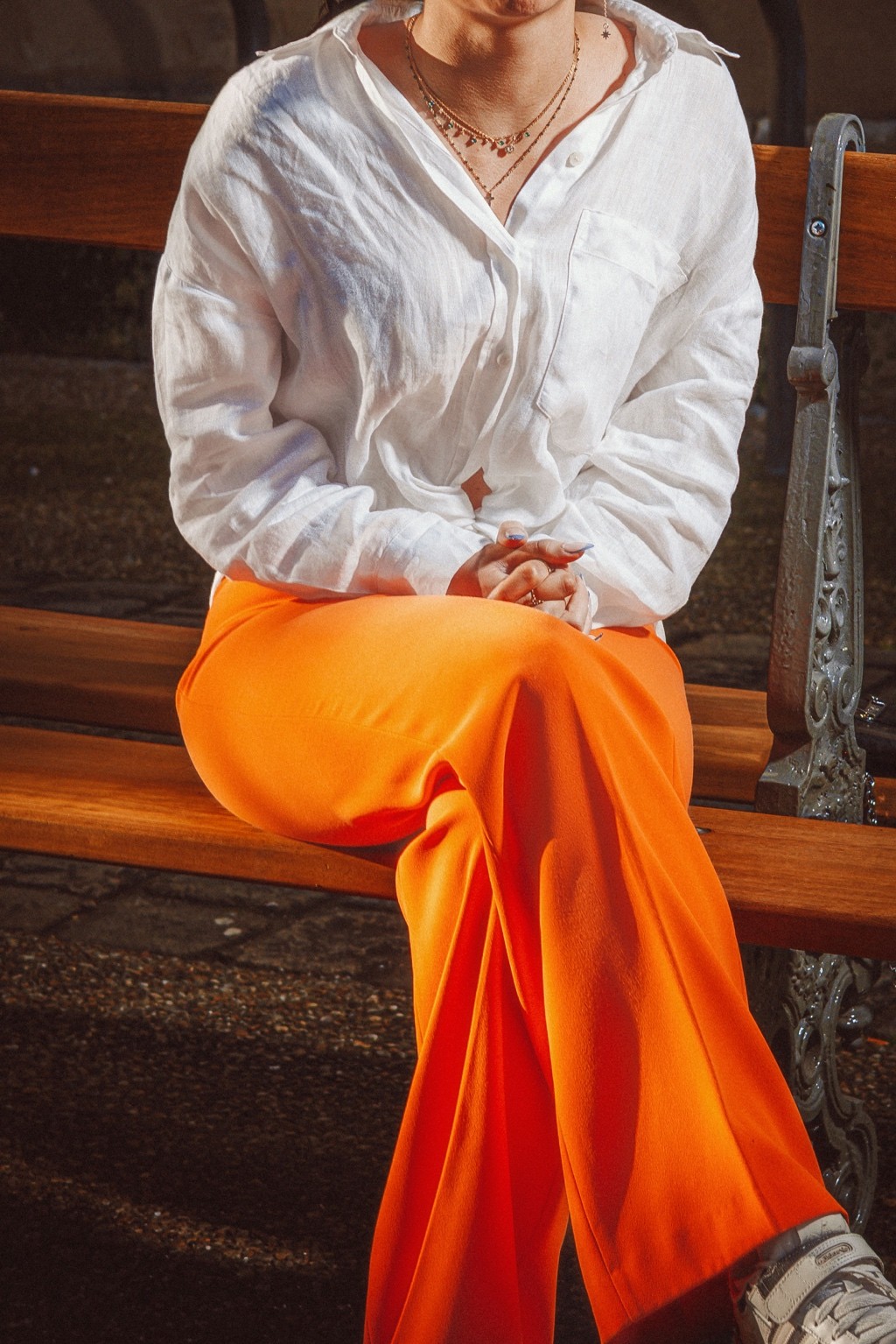 On pense à des éditos mode d’été version Elle ou Vogue Italie, à certains plans de films de Luca Guadagnino ou clips d’Aurora James où la lumière devient presque personnage. C’est une vibe entre sensualité maîtrisée et confiance solaire. Les teintes chaudes et textures naturelles évoquent une fin d’après-midi à Rome ou Séville, entre ruelle et terrasse. C’est du cinéma de rue stylisé, pas du lifestyle figé.