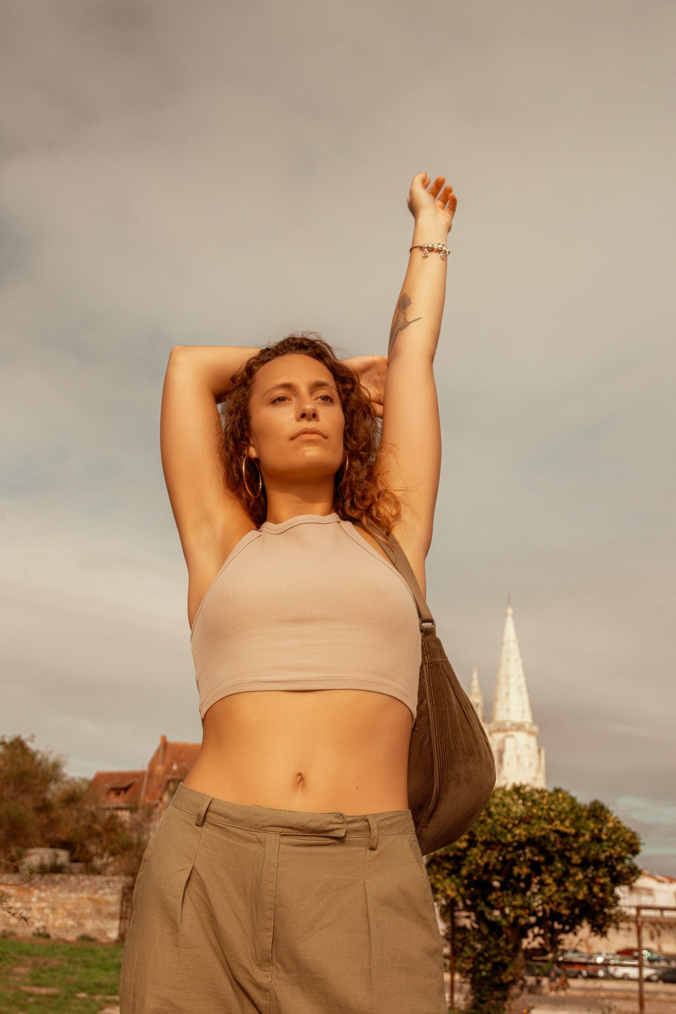 Clémentine Sol, c’est une alliance évidente. Clémentine : un prénom doux, fruité, chaleureux, qui évoque à la fois l’enfance et l’été. Sol : pour le soleil, en latin, en espagnol, en chaleur. Le nom sonne comme un vers de poème. Il est simple mais profond. Il décrit parfaitement ce qu’on voit : une personne bien dans son moment, une lumière juste, un équilibre naturel. C’est un shoot qui ne veut rien prouver. Il existe. Et ça suffit.