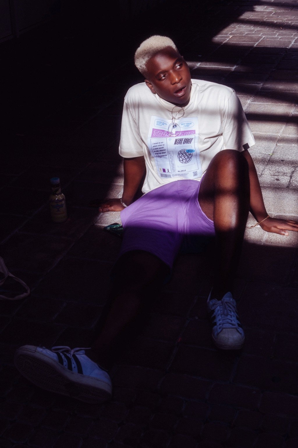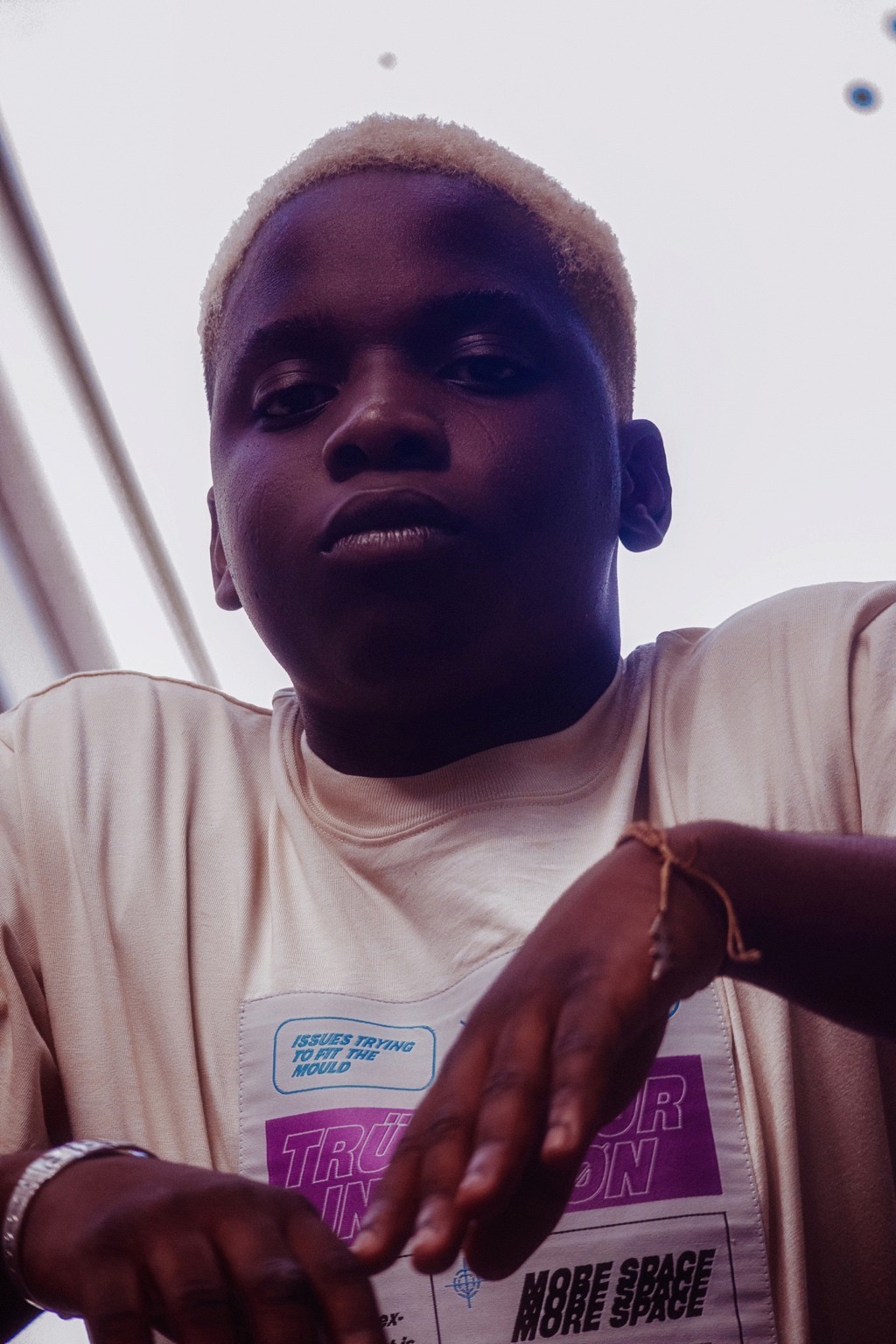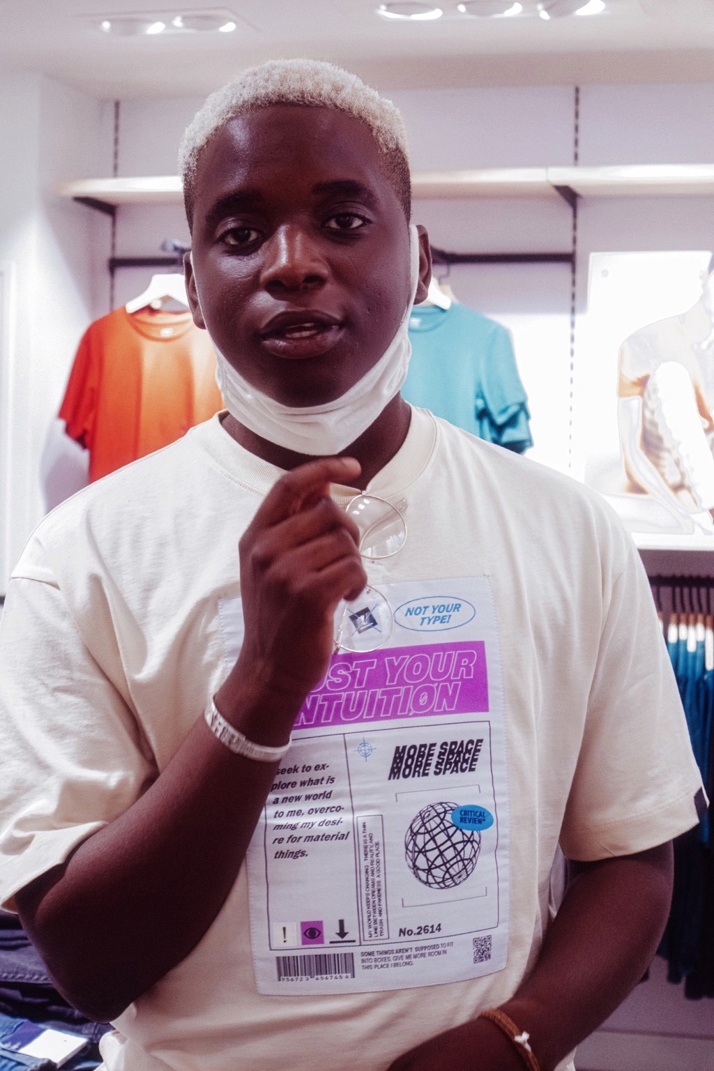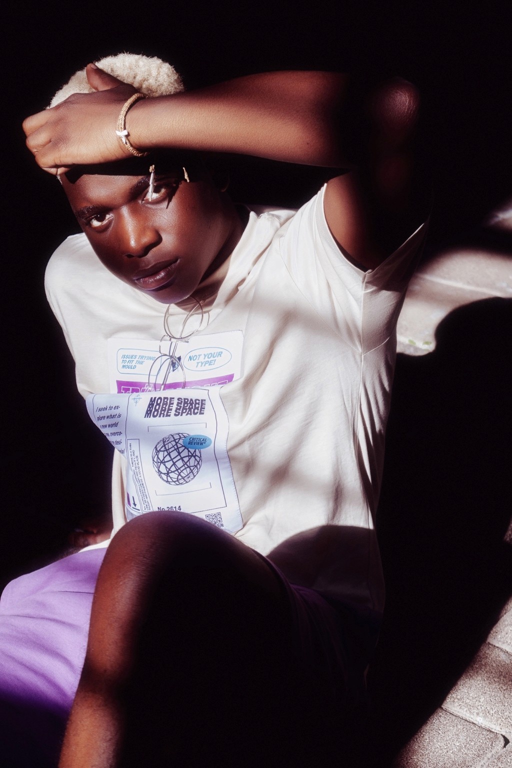 On pense à des séries édito à la Dazed ou i-D, entre déclaration et minimalisme graphique. Le message visuel évoque aussi certaines campagnes de marques comme Acne Studios ou Daily Paper, qui jouent avec le vêtement comme manifeste identitaire. Il y a une vibe très “future human”, sans tomber dans le cliché. Juste un style affirmé, une présence tranquille.