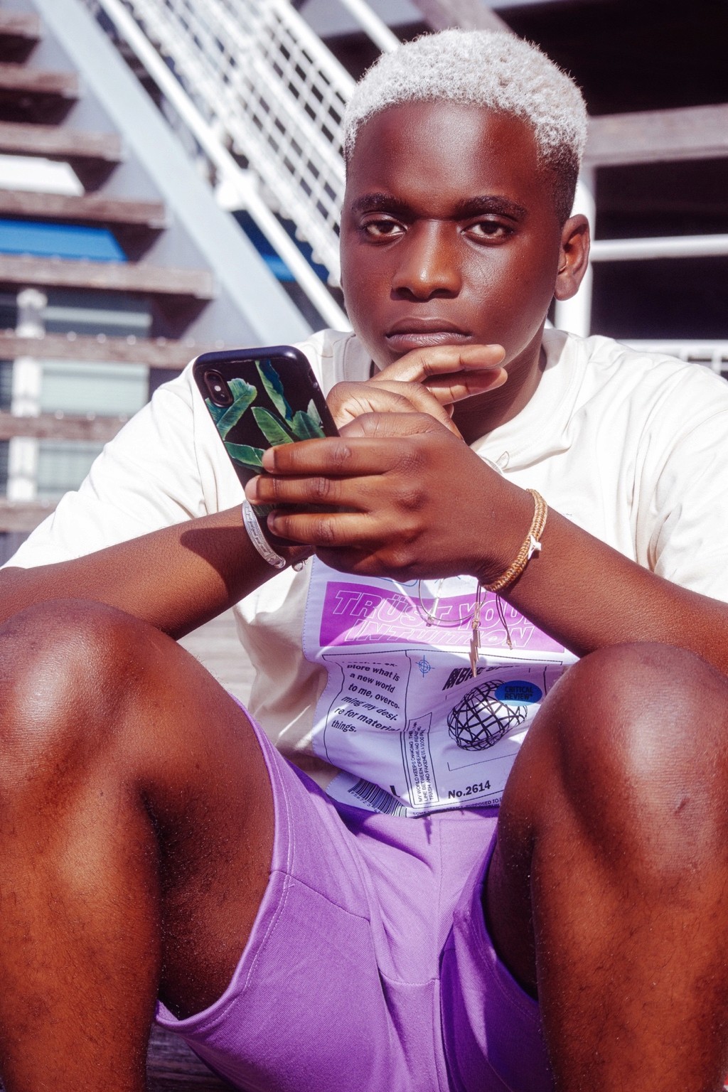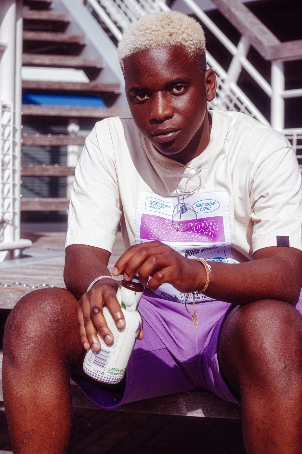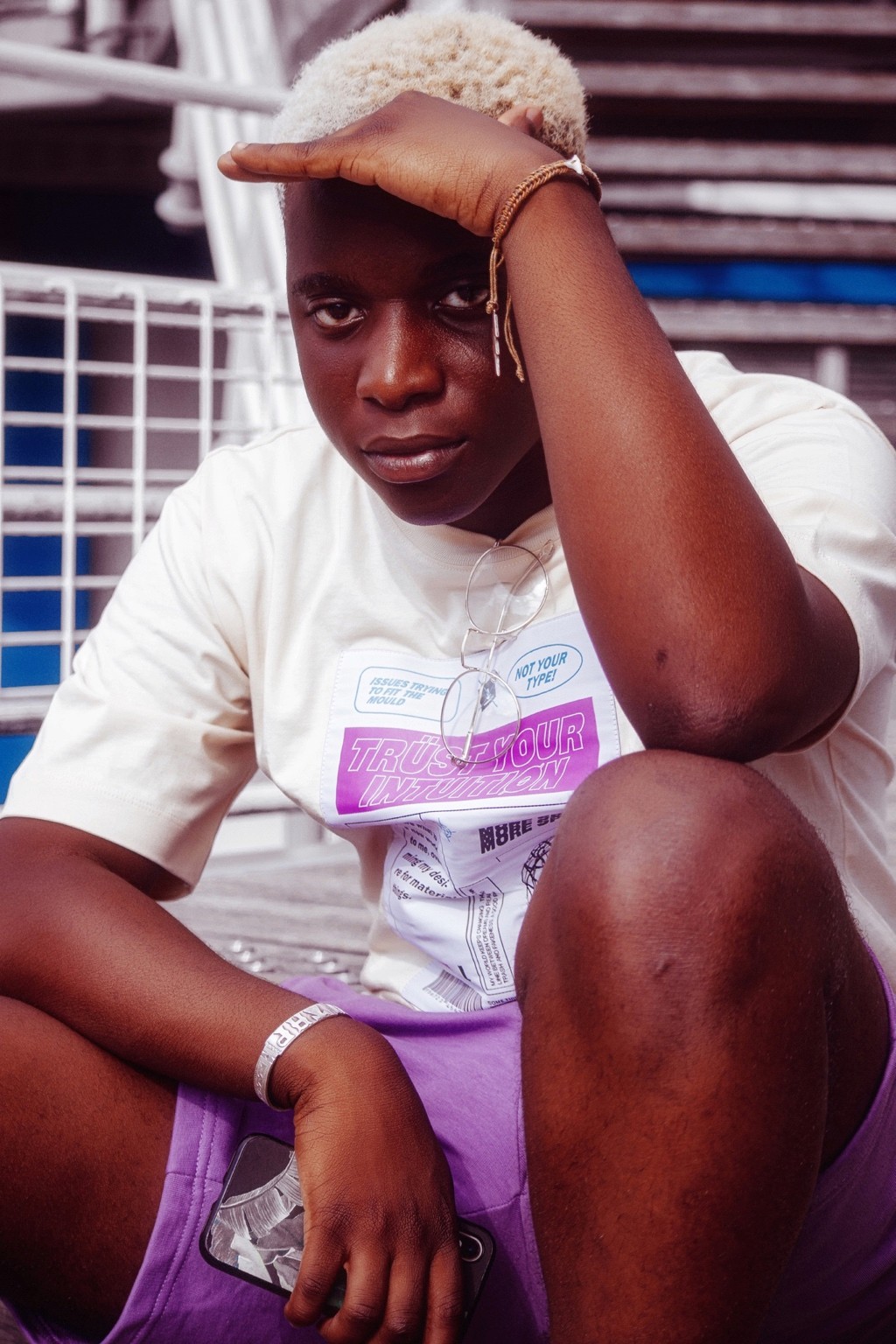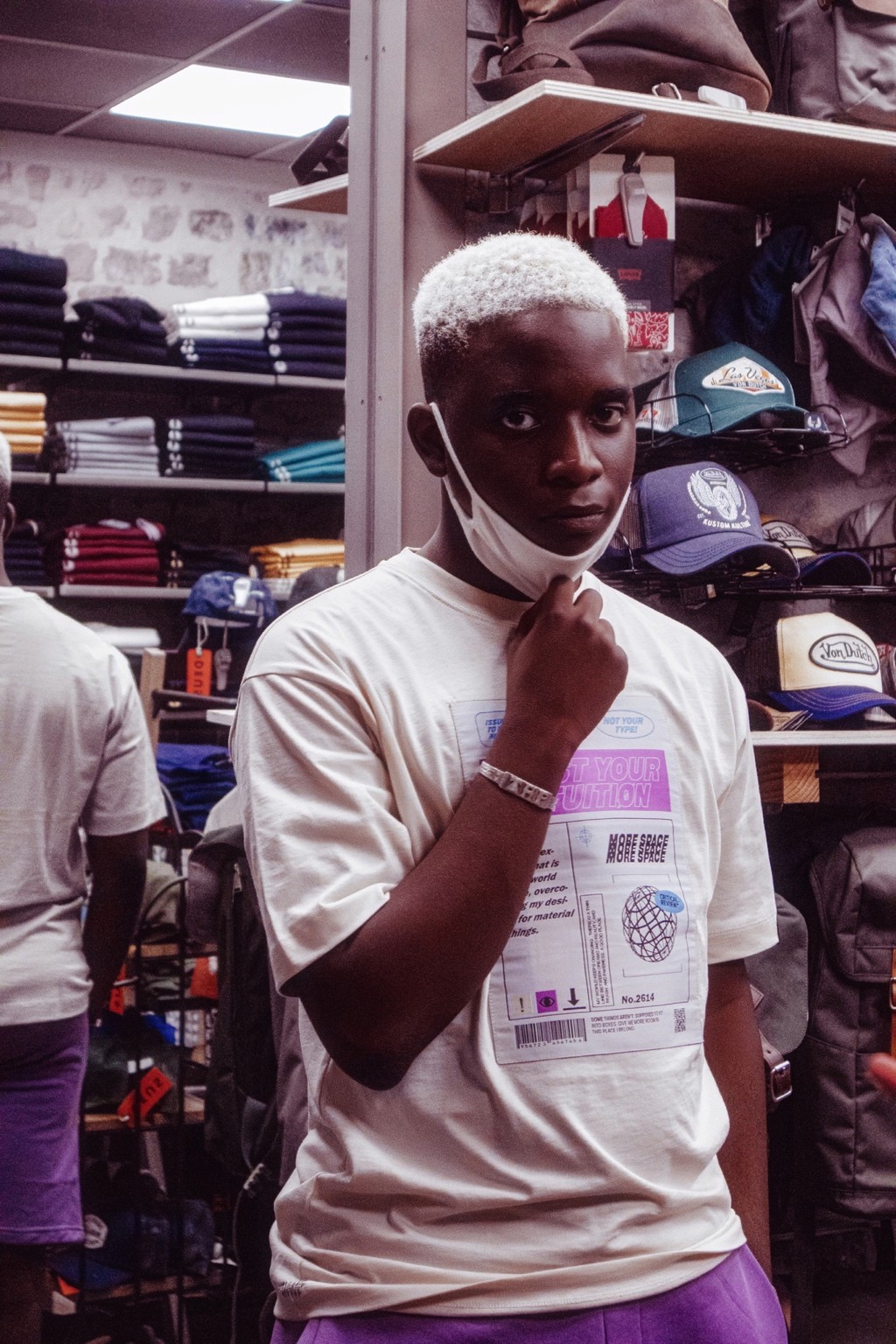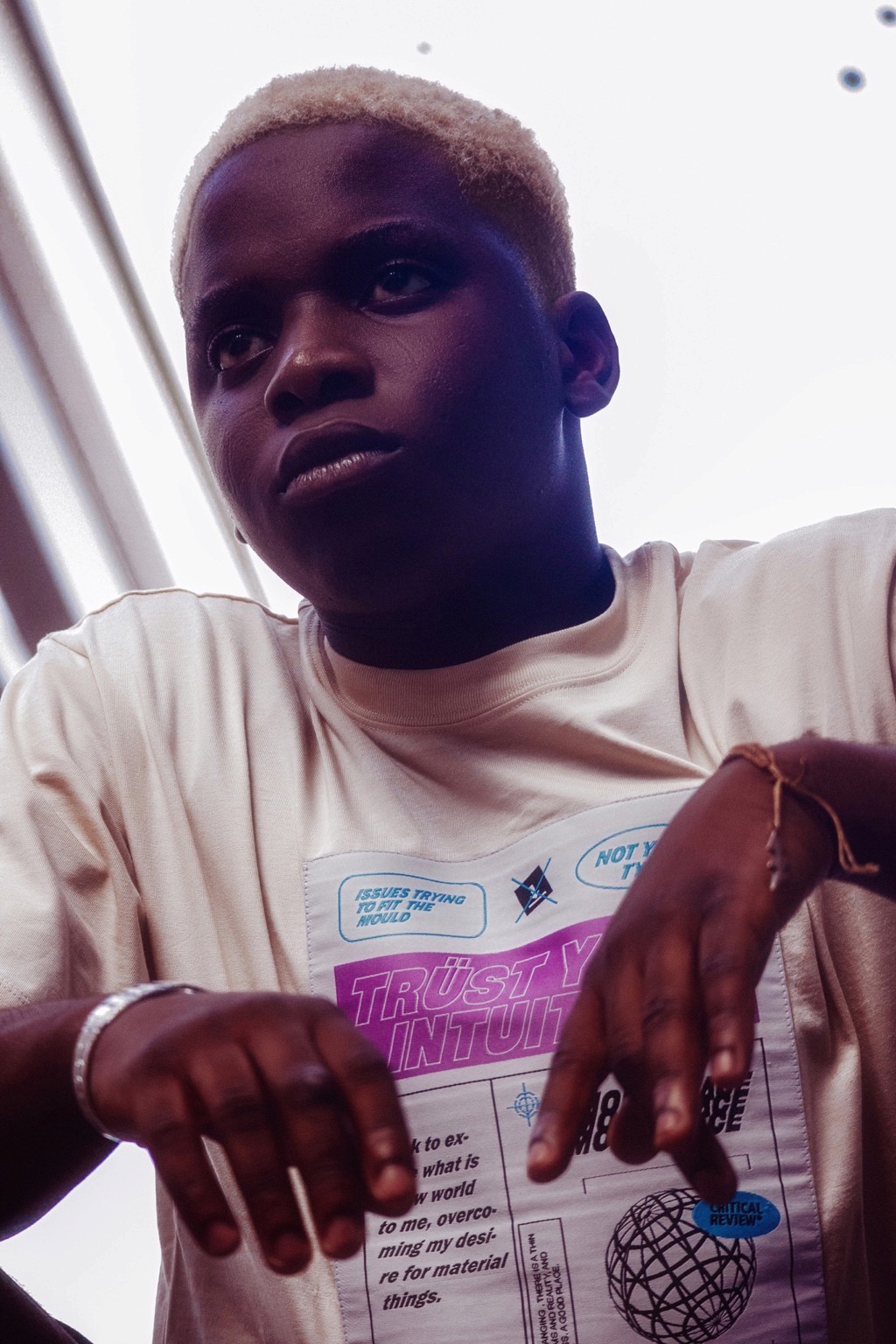 On pense à des séries édito à la Dazed ou i-D, entre déclaration et minimalisme graphique. Le message visuel évoque aussi certaines campagnes de marques comme Acne Studios ou Daily Paper, qui jouent avec le vêtement comme manifeste identitaire. Il y a une vibe très “future human”, sans tomber dans le cliché. Juste un style affirmé, une présence tranquille.