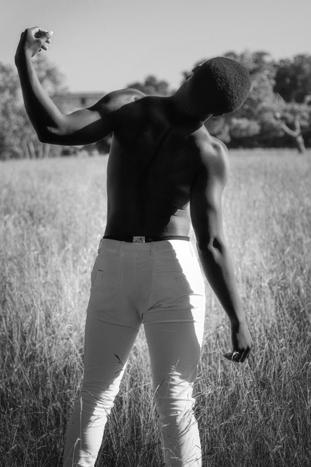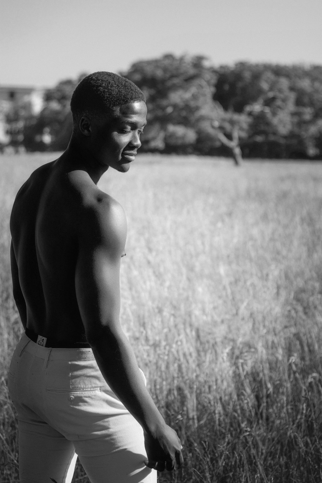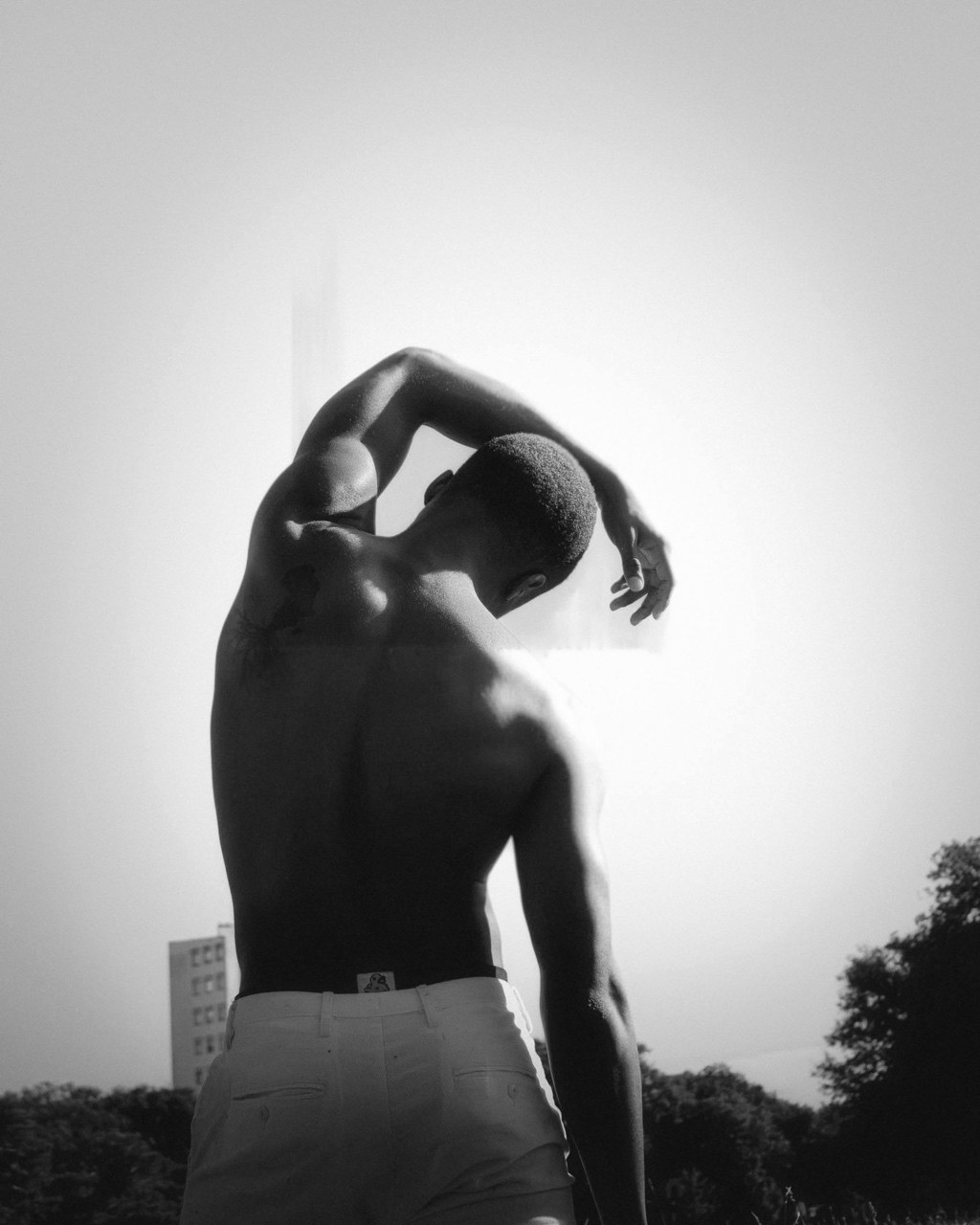 Je pensais à des portraits de mode masculins classiques, mais avec une tension plus contemporaine. Un peu comme les travaux d’Ethan James Green ou certaines séries de Peter Lindbergh, où l’élégance naît du naturel. En ciné, y’a un soupçon de Moonlight dans la manière d’assumer la lumière sur la peau noire.