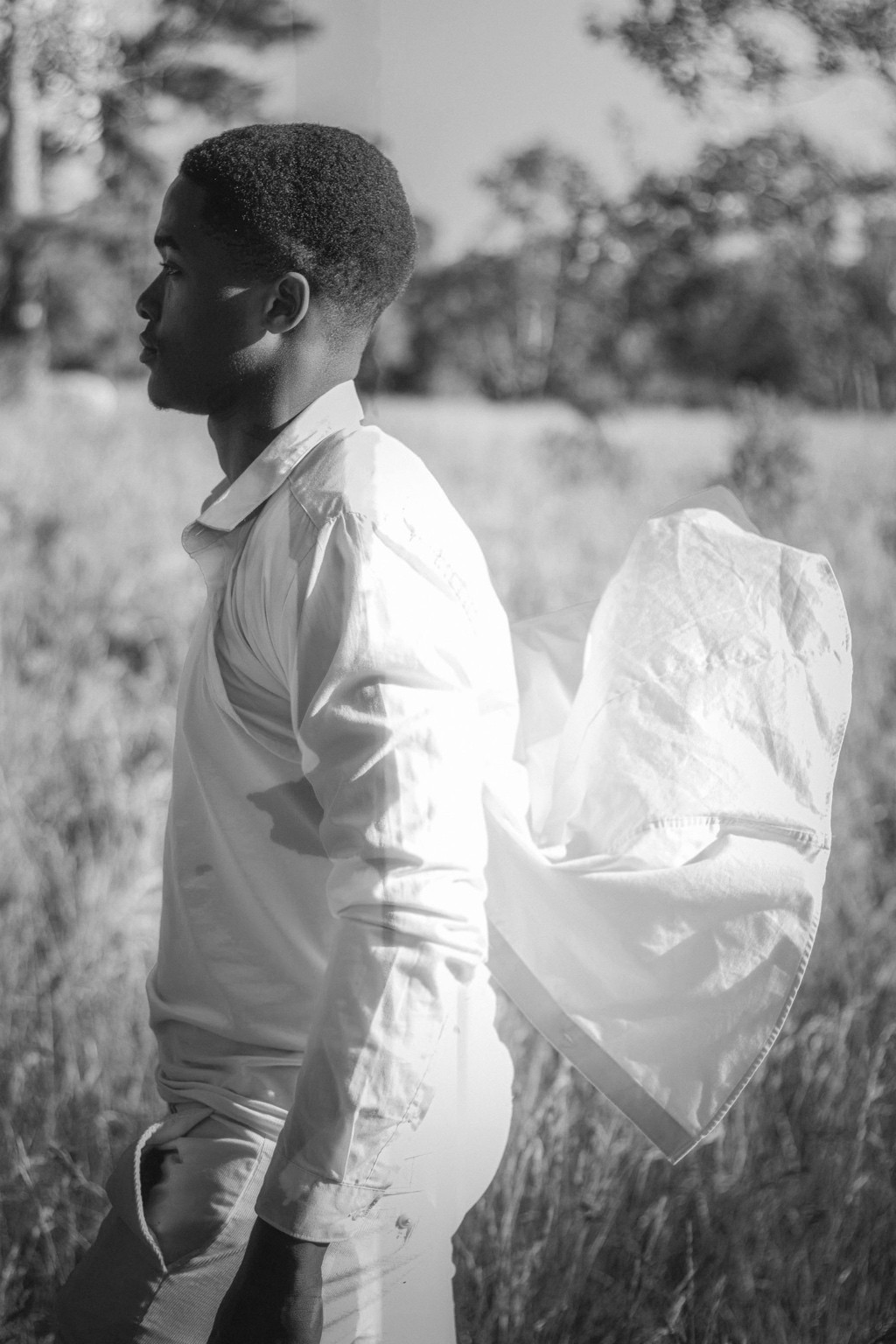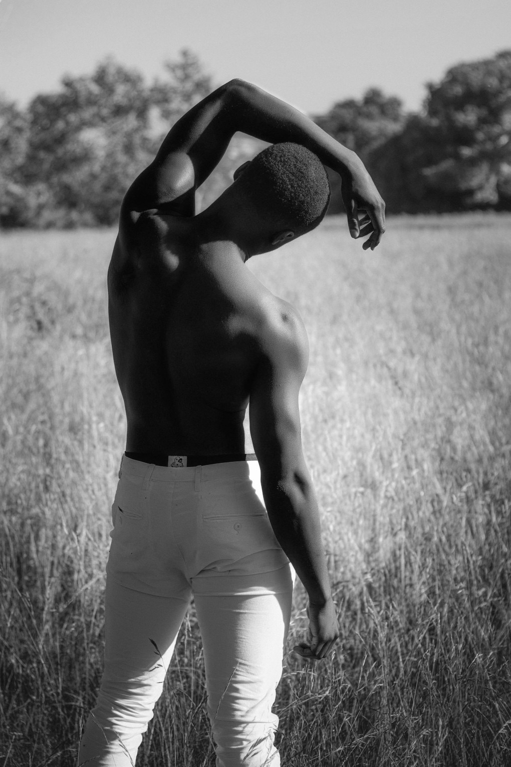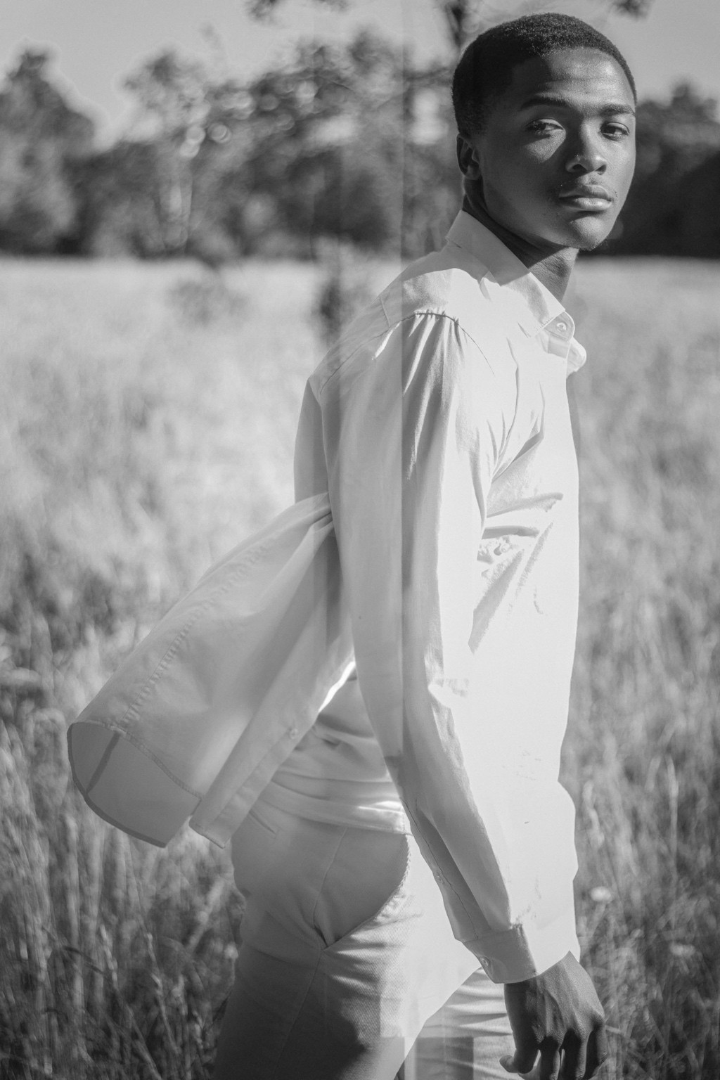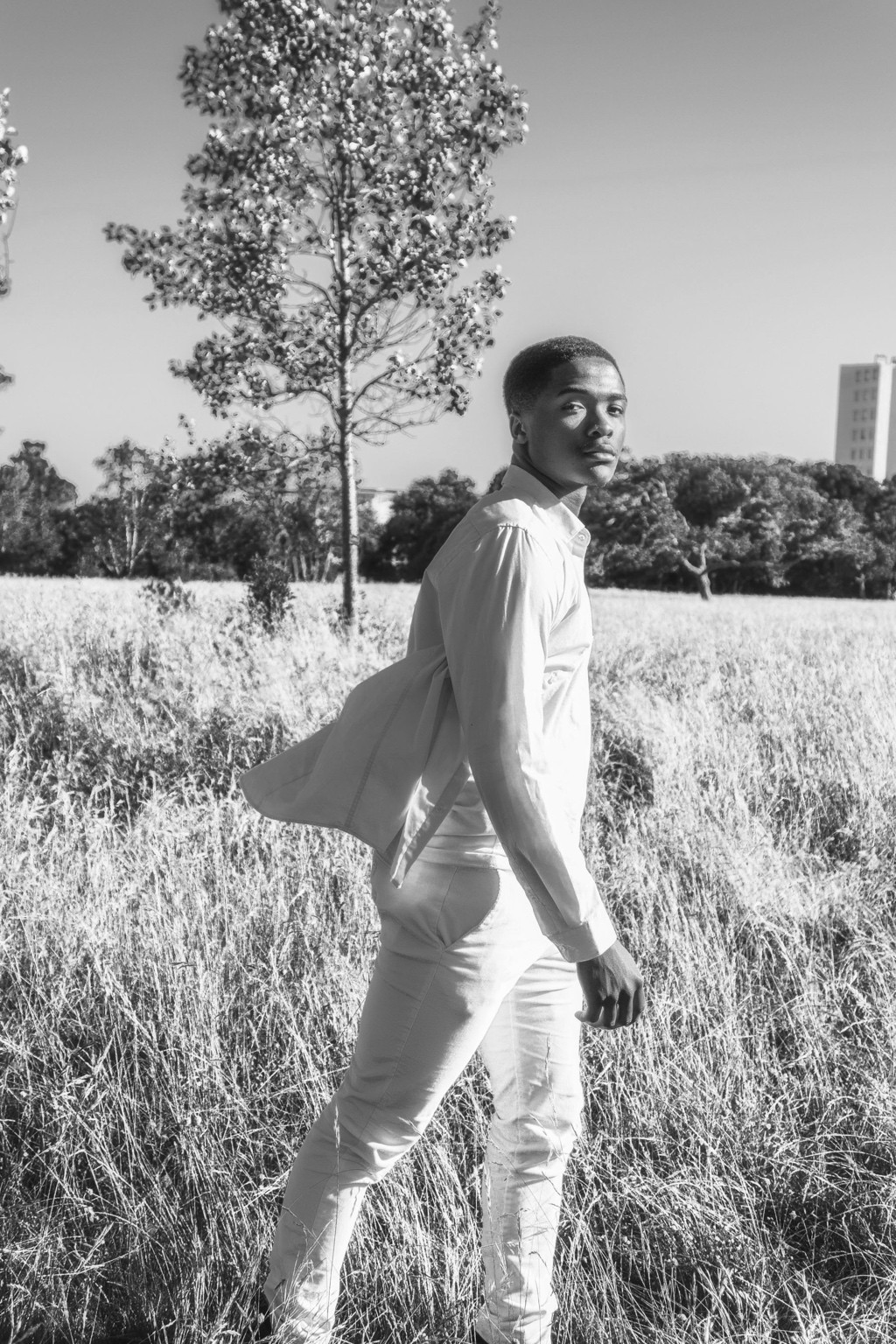 Je pensais à des portraits de mode masculins classiques, mais avec une tension plus contemporaine. Un peu comme les travaux d’Ethan James Green ou certaines séries de Peter Lindbergh, où l’élégance naît du naturel. En ciné, y’a un soupçon de Moonlight dans la manière d’assumer la lumière sur la peau noire.