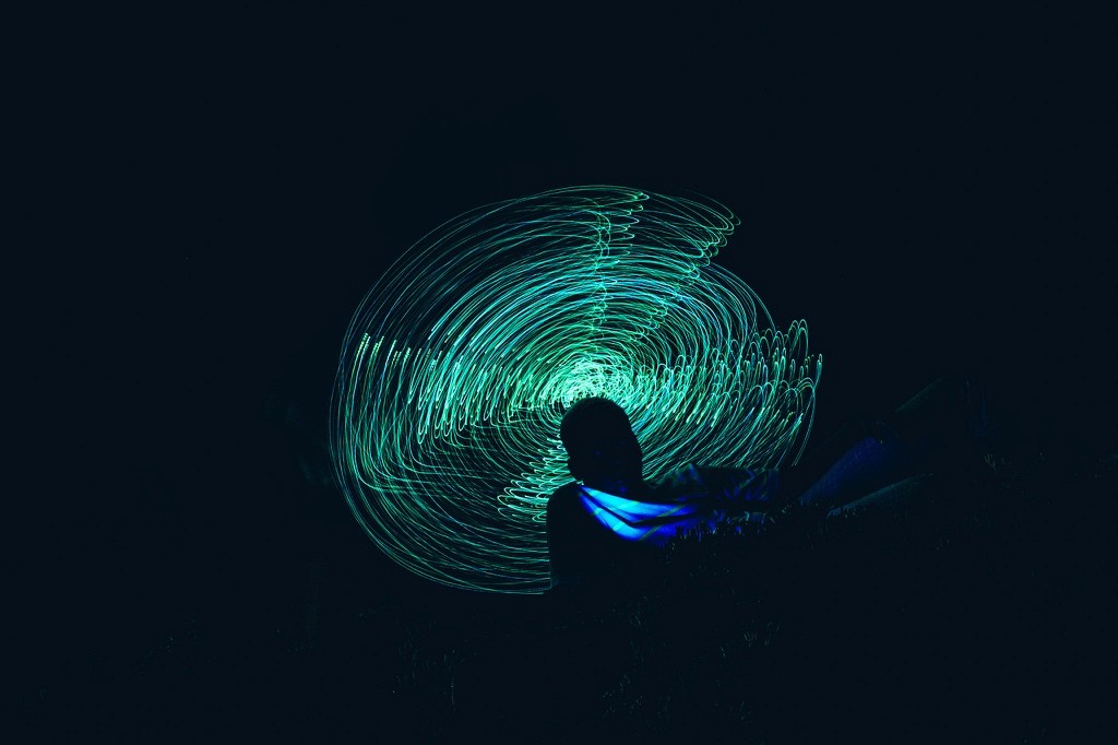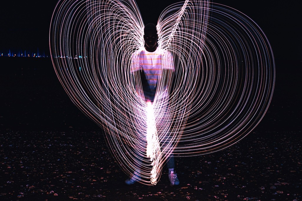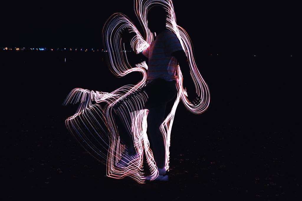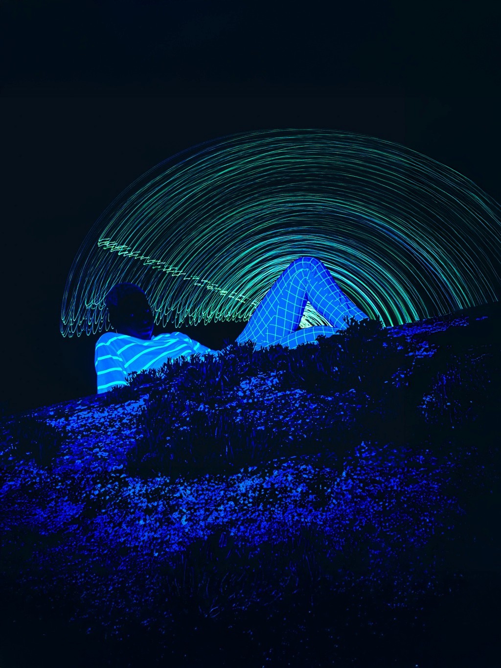 Le nom DYEUS REPLICAT puise dans la mythologie indo-européenne, où DYEUS est le ciel lumineux, une force divine originelle. Associé à “REPLICAT”, il évoque une divinité dont chaque geste, capturé en lumière, devient une empreinte immortelle, une réplique parfaite mais éphémère. La technique de la longue exposition renforce cette idée en multipliant les mouvements du modèle, transformant chaque cliché en une œuvre qui transcende le temps. Cette approche, croisant influences cyberpunk et mythologiques, sublime le pouvoir de la lumière et du mouvement, plaçant le spectateur face à une divinité vivante et intemporelle.