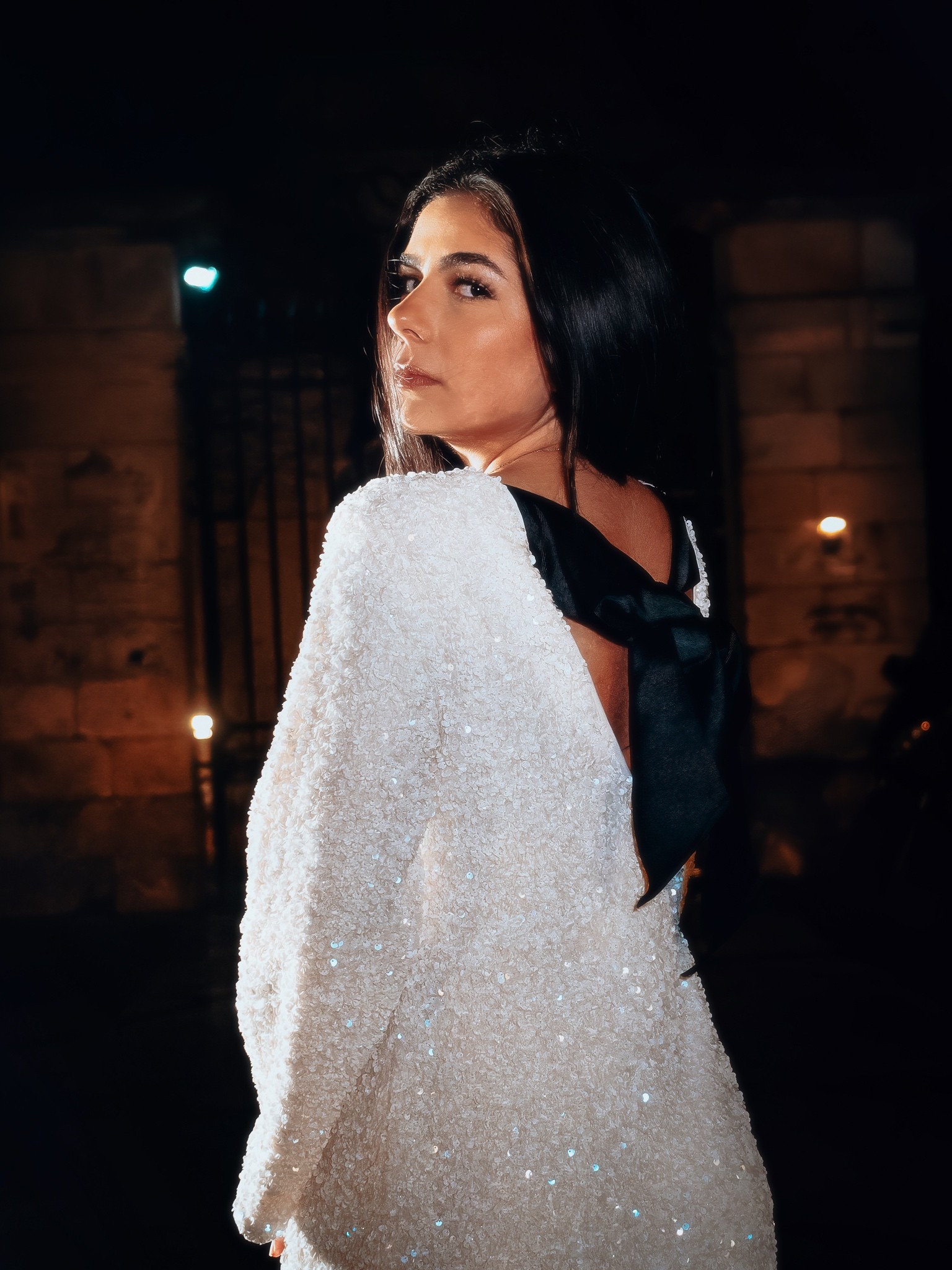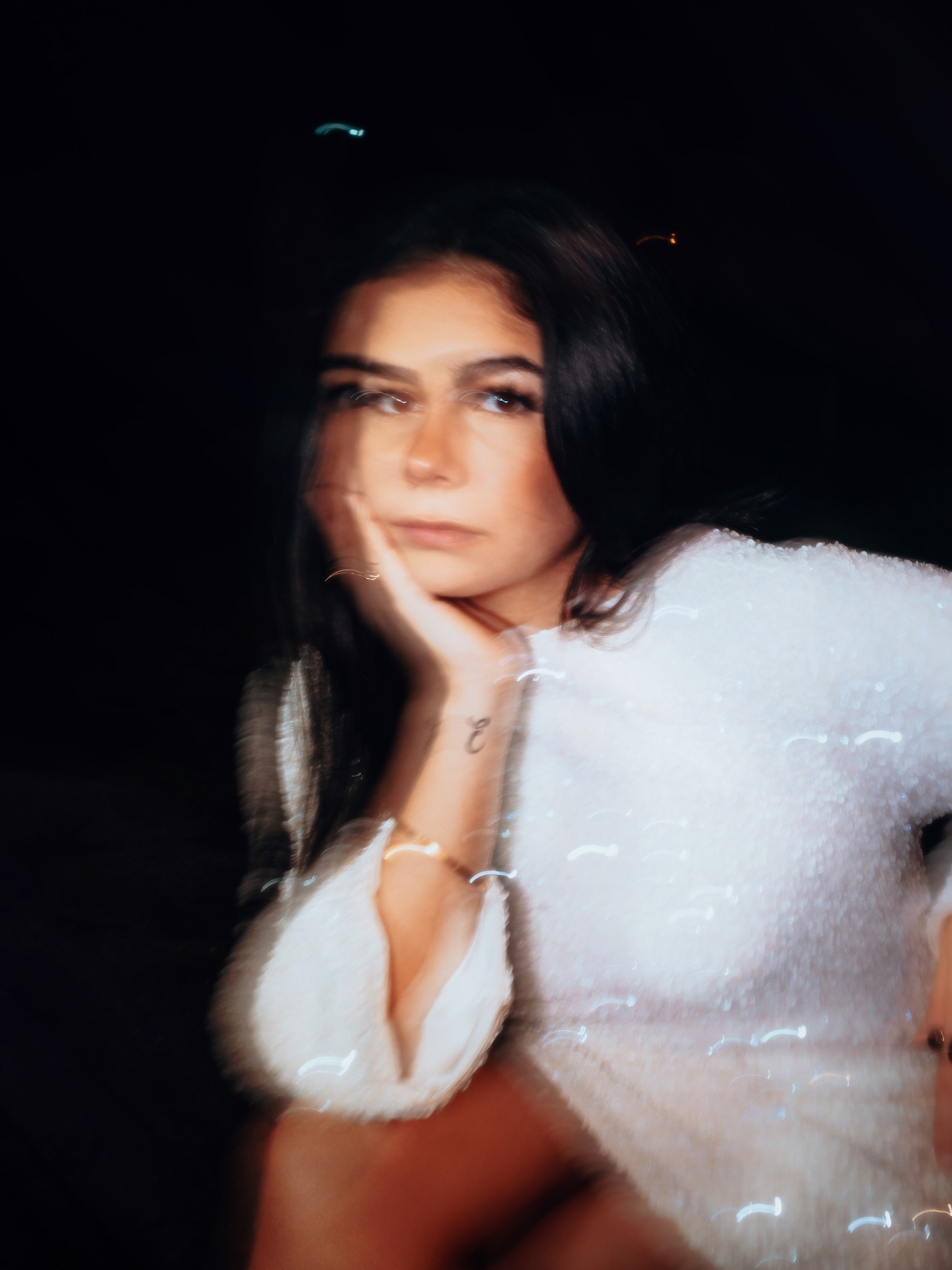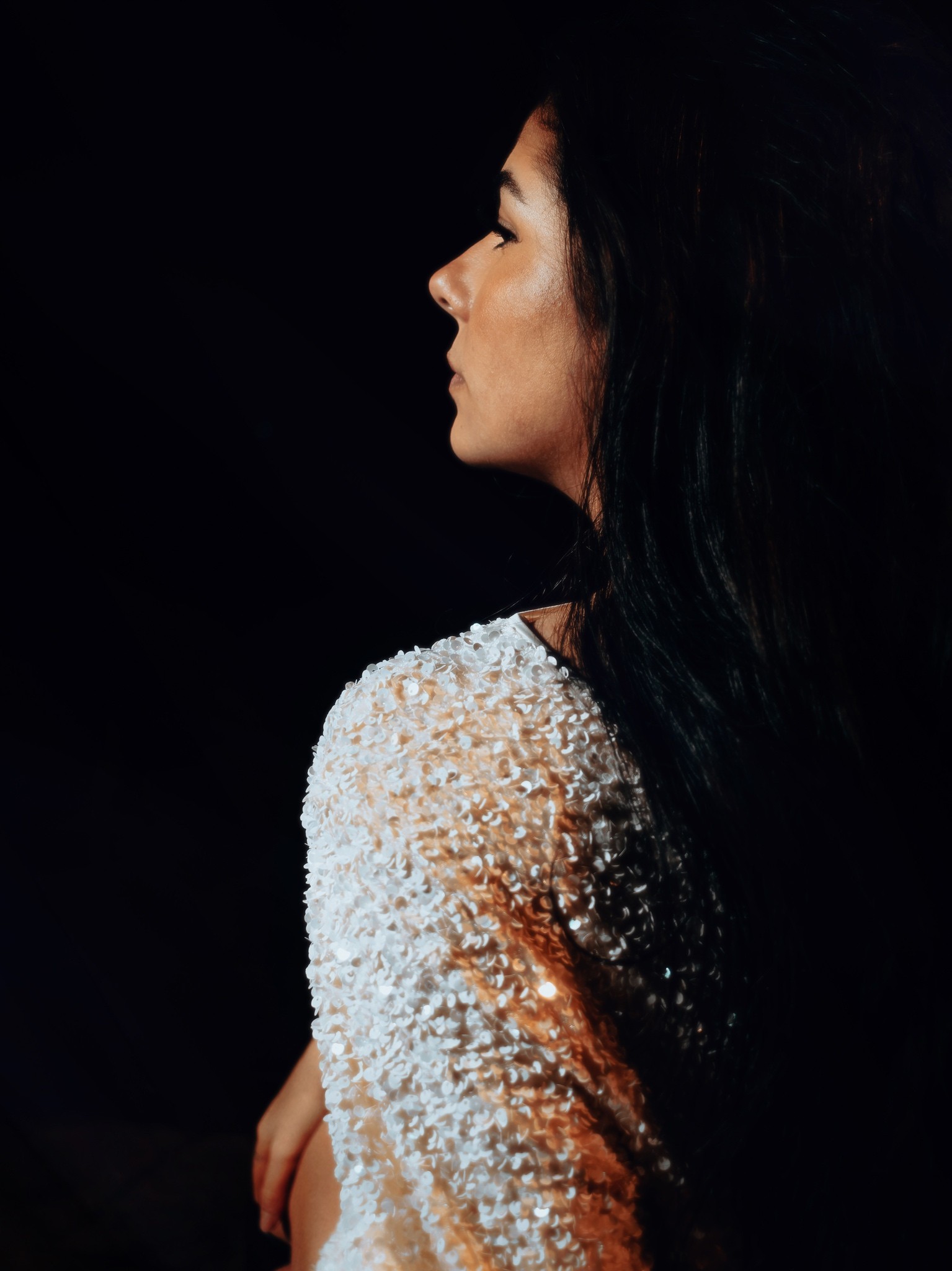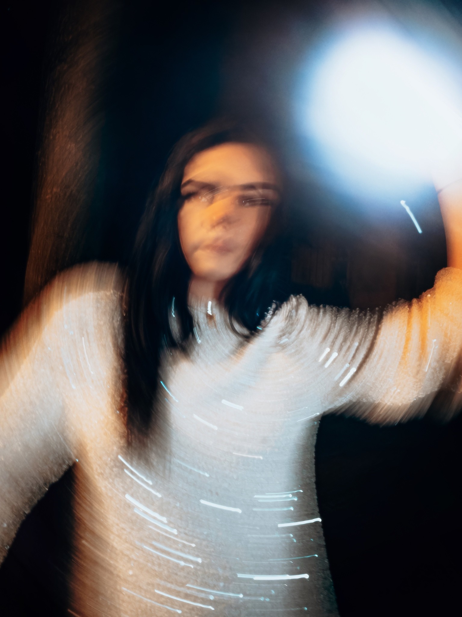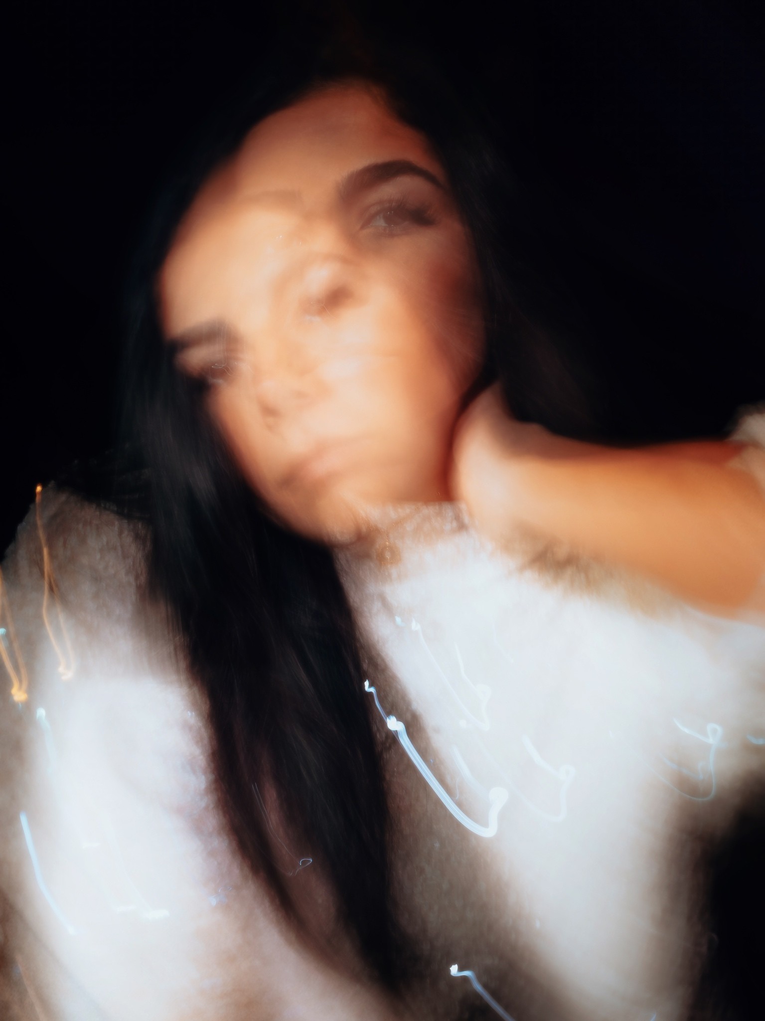“Ipséité Opaline” puise son nom dans la philosophie et les pierres. Ipséité désigne ce qui fait qu’un être est lui-même et pas un autre. C’est une affirmation d’identité singulière, intime, non reproductible. Opaline, en contrepoint, suggère la lumière douce, le voile, le mystère translucide. Ensemble, ils racontent une identité fuyante mais présente, une affirmation douce, sans cri. Le nom résonne avec les flous lumineux, les effets de traînées, et les choix esthétiques nocturnes. Il traduit cette beauté de l’entre-deux : entre chair et lumière, entre réel et perception, entre apparition et disparition.