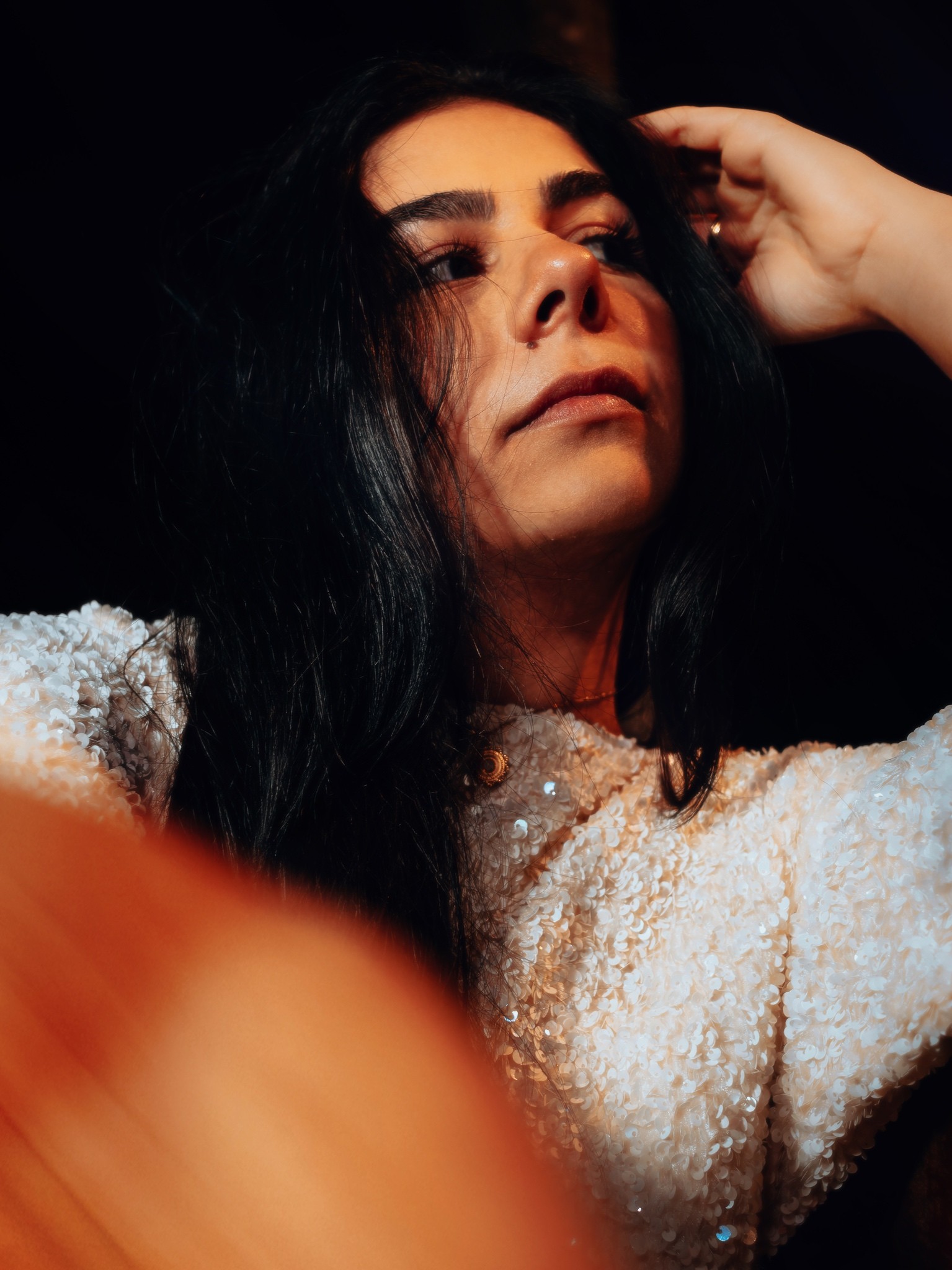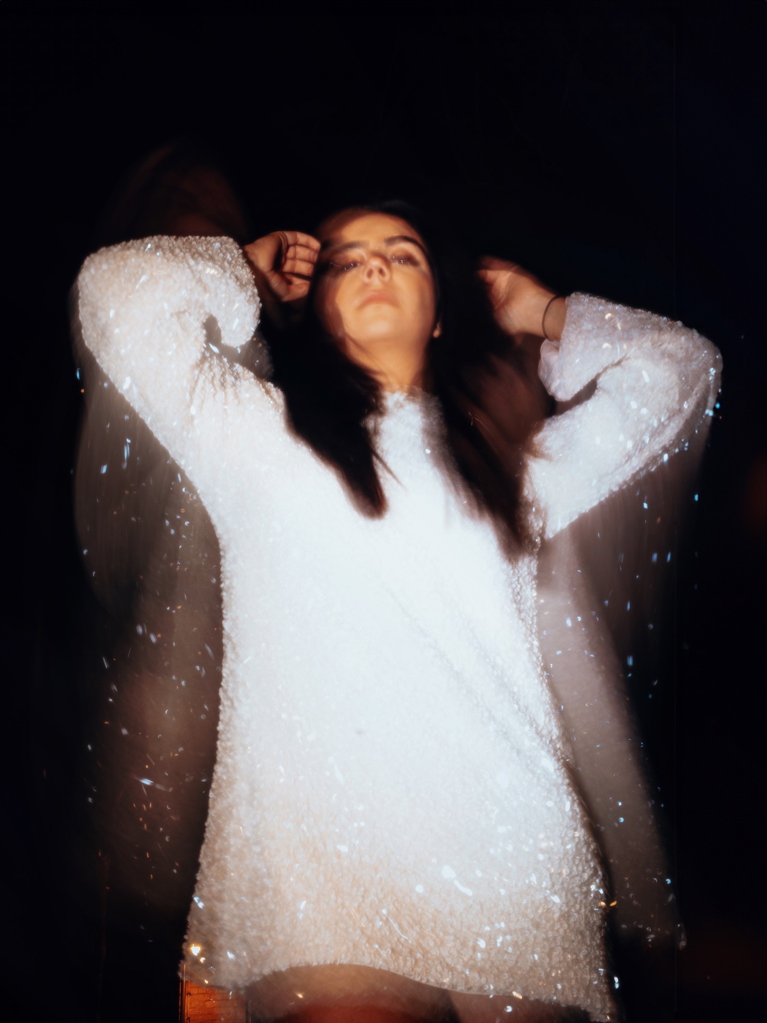 Je voulais que ça sonne comme une rencontre entre les délires visuels de Wong Kar-Wai et l’esthétique d’une pub Mugler. Pas de références trop évidentes, mais une volonté d’aller chercher du côté des expérimentations de mode nocturne, avec un petit clin d’oeil aux atmosphères de Gaspar Noé (mais sans le chaos). Le style lumineux presque cosmique me faisait penser à certaines séries de Solve Sundsbo aussi.