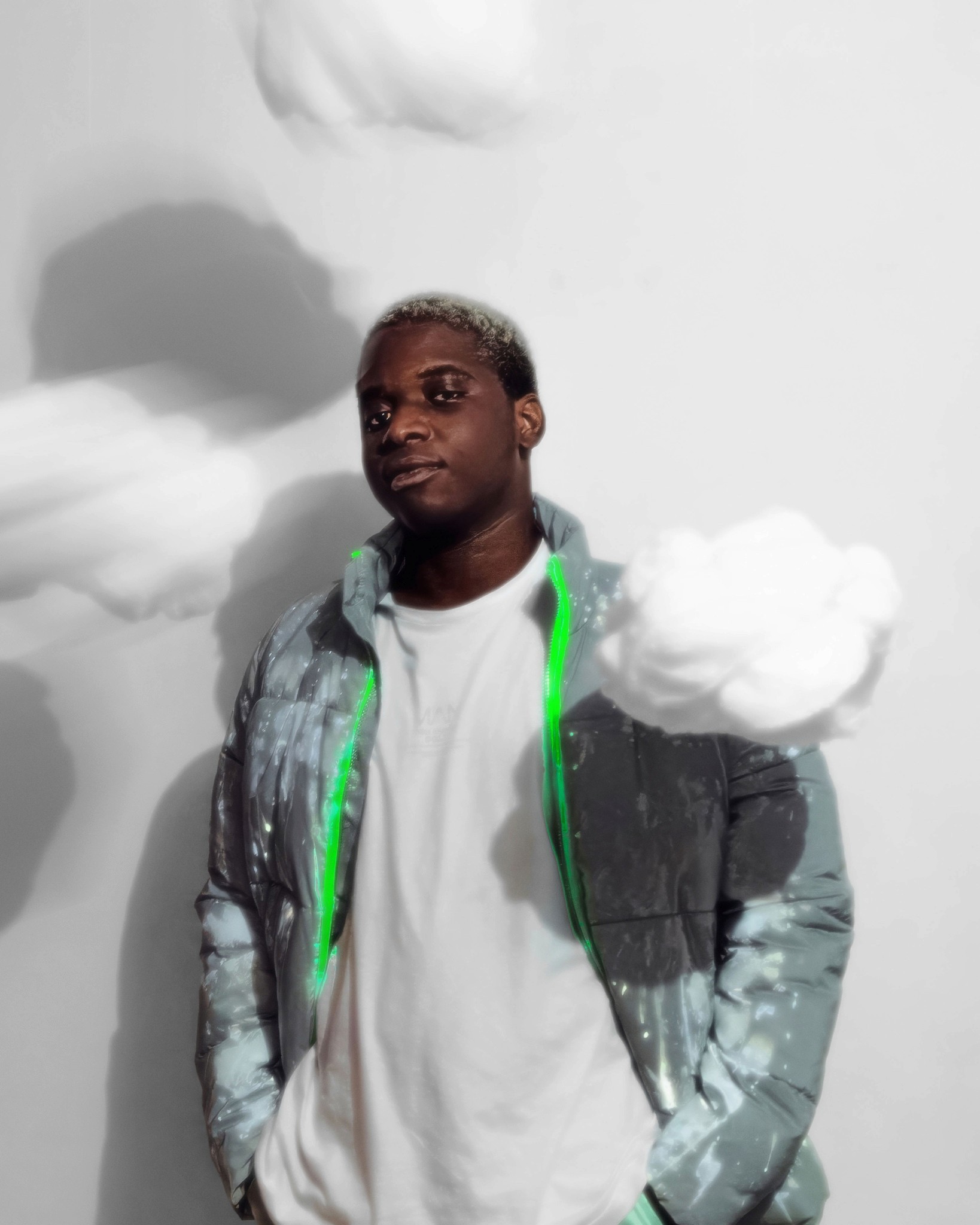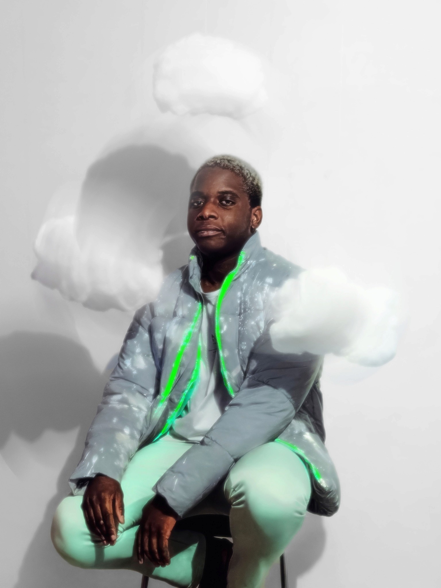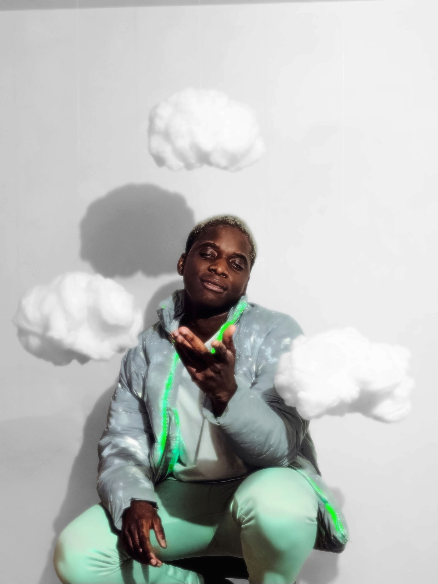 On est clairement dans un trip à la Man Ray pour le travail sur le flou et le mouvement, mais avec une esthétique plus digitale, presque cyberpunk. Il y a un petit côté Matrix remixé avec de la douceur, un univers qui pourrait être celui de la mode future chez Balenciaga ou Craig Green. J’avais aussi en tête certains visuels de clips expérimentaux ou de pochettes de rap indé qui utilisent la distorsion comme signature.
