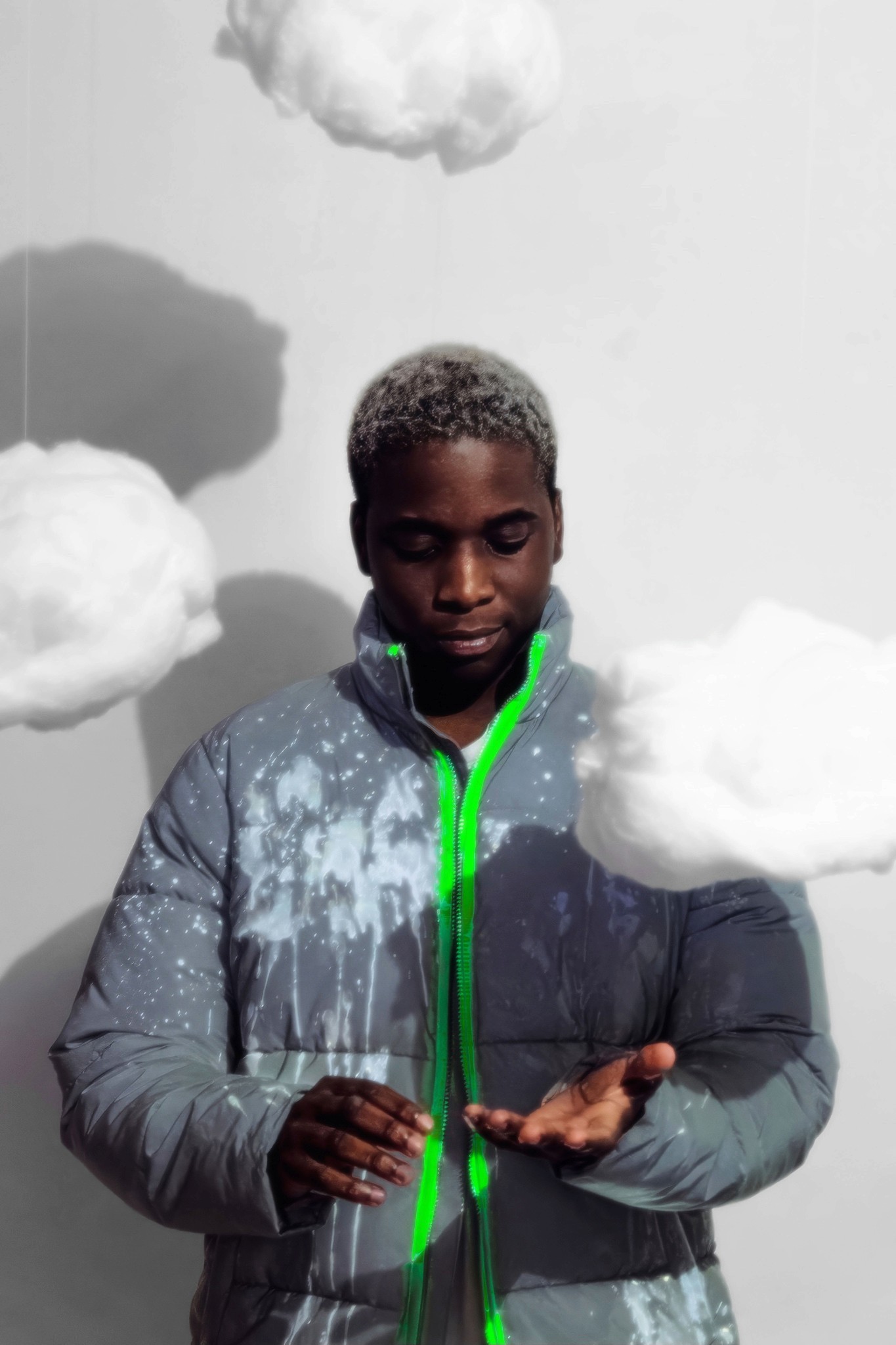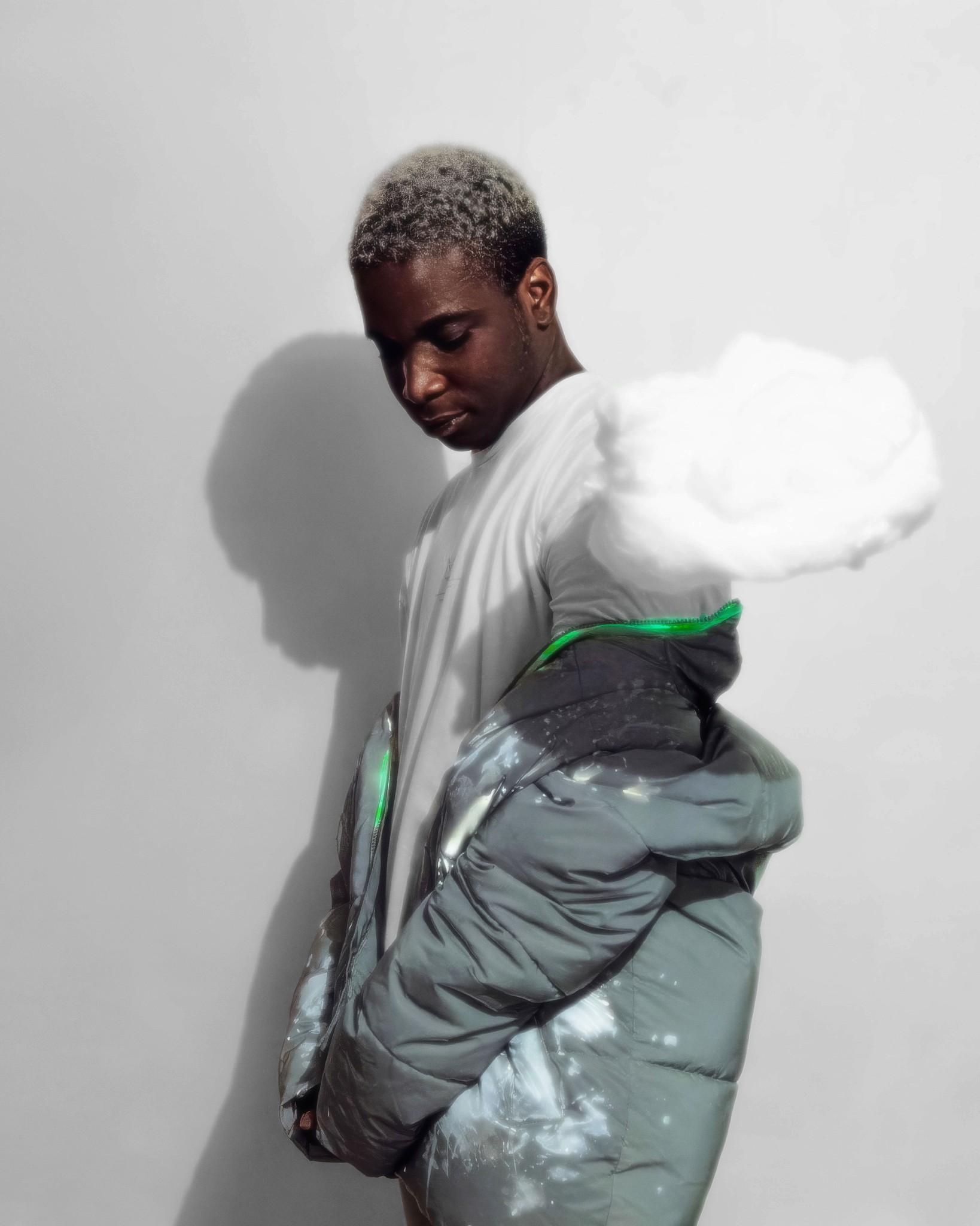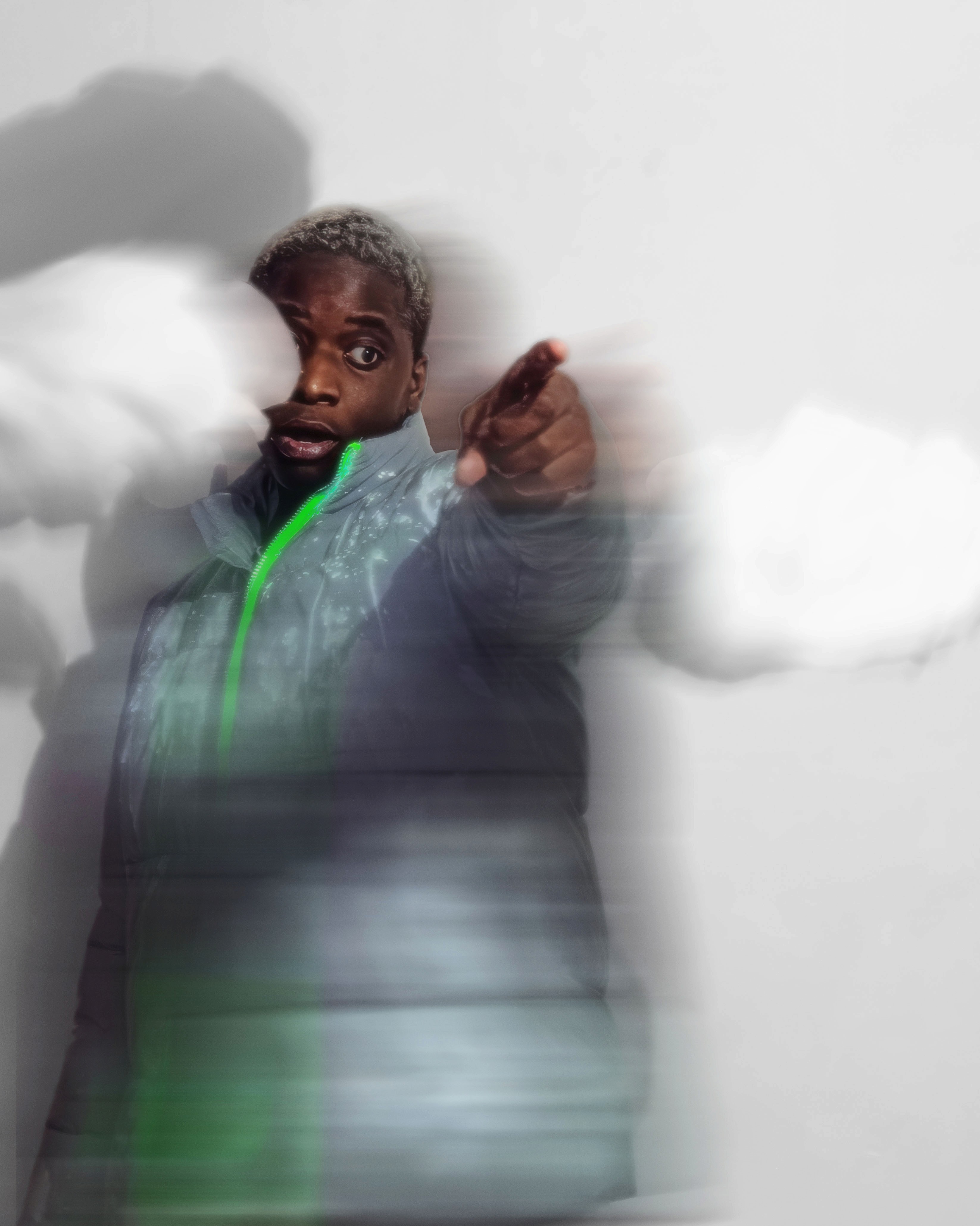 On est clairement dans un trip à la Man Ray pour le travail sur le flou et le mouvement, mais avec une esthétique plus digitale, presque cyberpunk. Il y a un petit côté Matrix remixé avec de la douceur, un univers qui pourrait être celui de la mode future chez Balenciaga ou Craig Green. J’avais aussi en tête certains visuels de clips expérimentaux ou de pochettes de rap indé qui utilisent la distorsion comme signature.