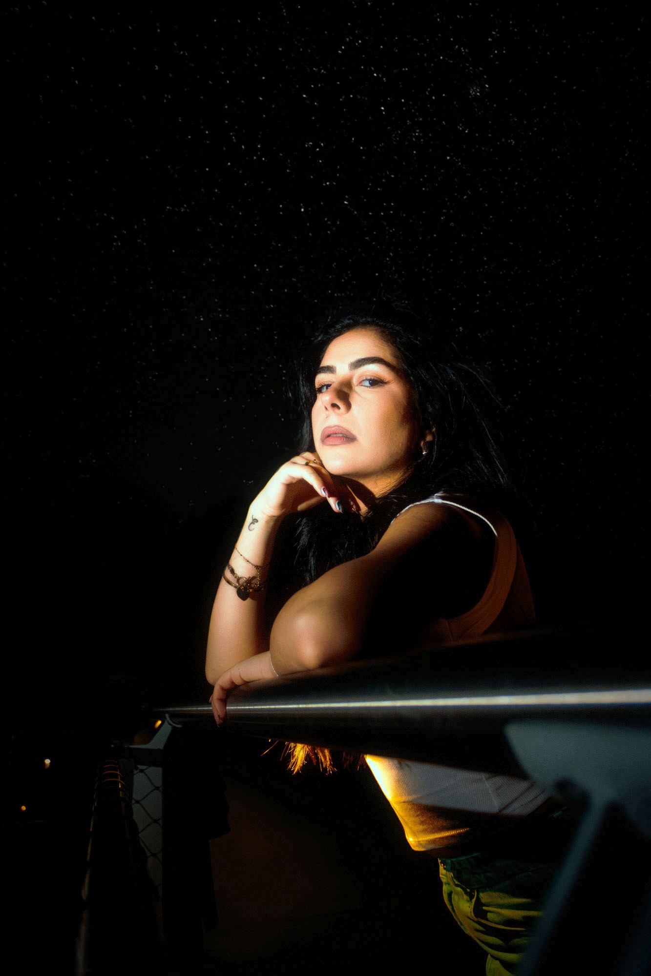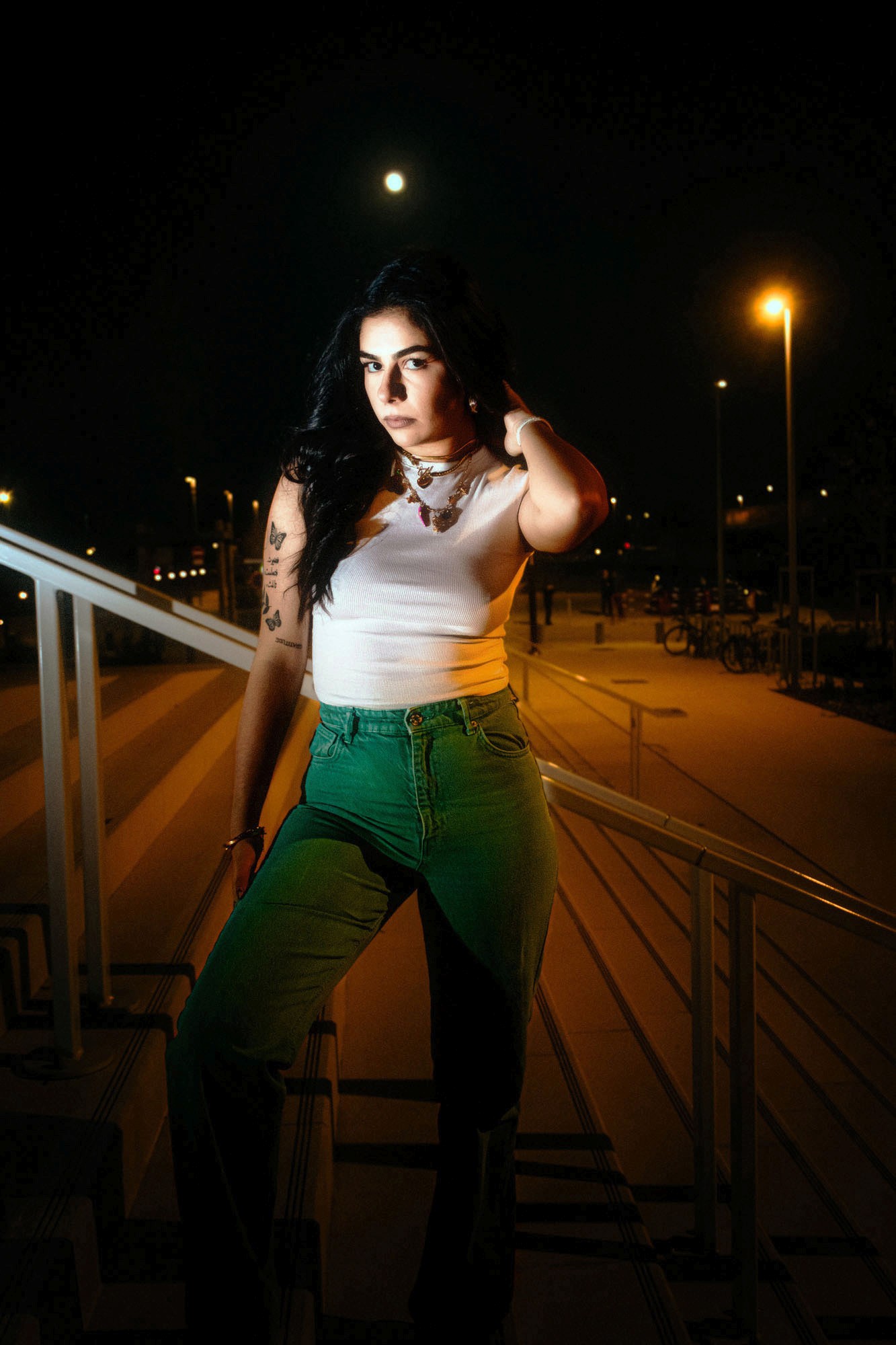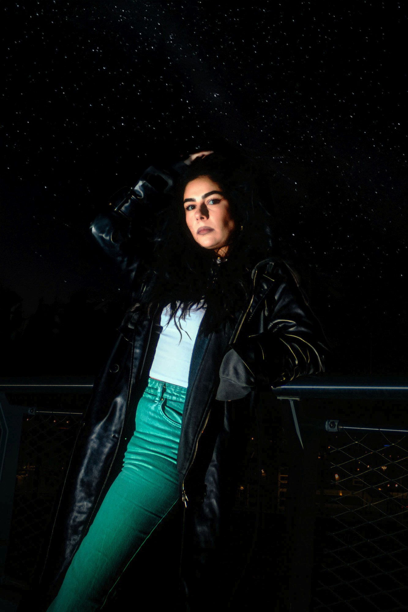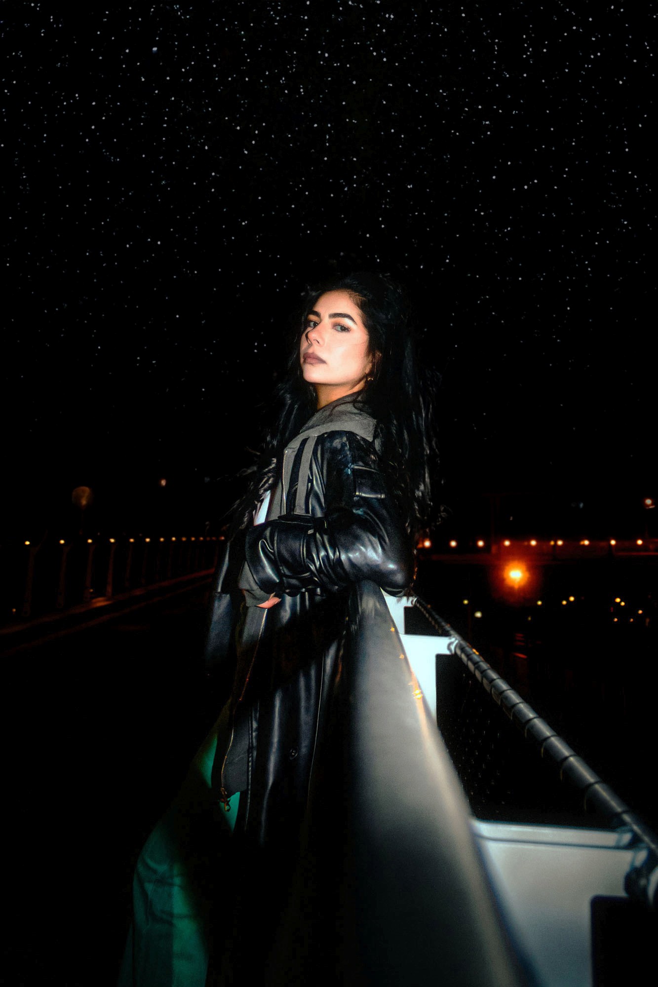 Le nom Night Stance capture l’essence même de l’image : une posture affirmée et intemporelle dans un décor de nuit. Le mot “Stance” évoque à la fois une position physique stable et une attitude mentale résolue, qui s’impose face aux éléments environnants. La nuit devient alors le théâtre dans lequel le modèle prend sa place, évoquant une figure presque mythique ou cinématographique, entre élégance moderne et force tranquille. Cette dualité entre l’immobilité du modèle et l’énergie contenue autour résume bien l’intention.