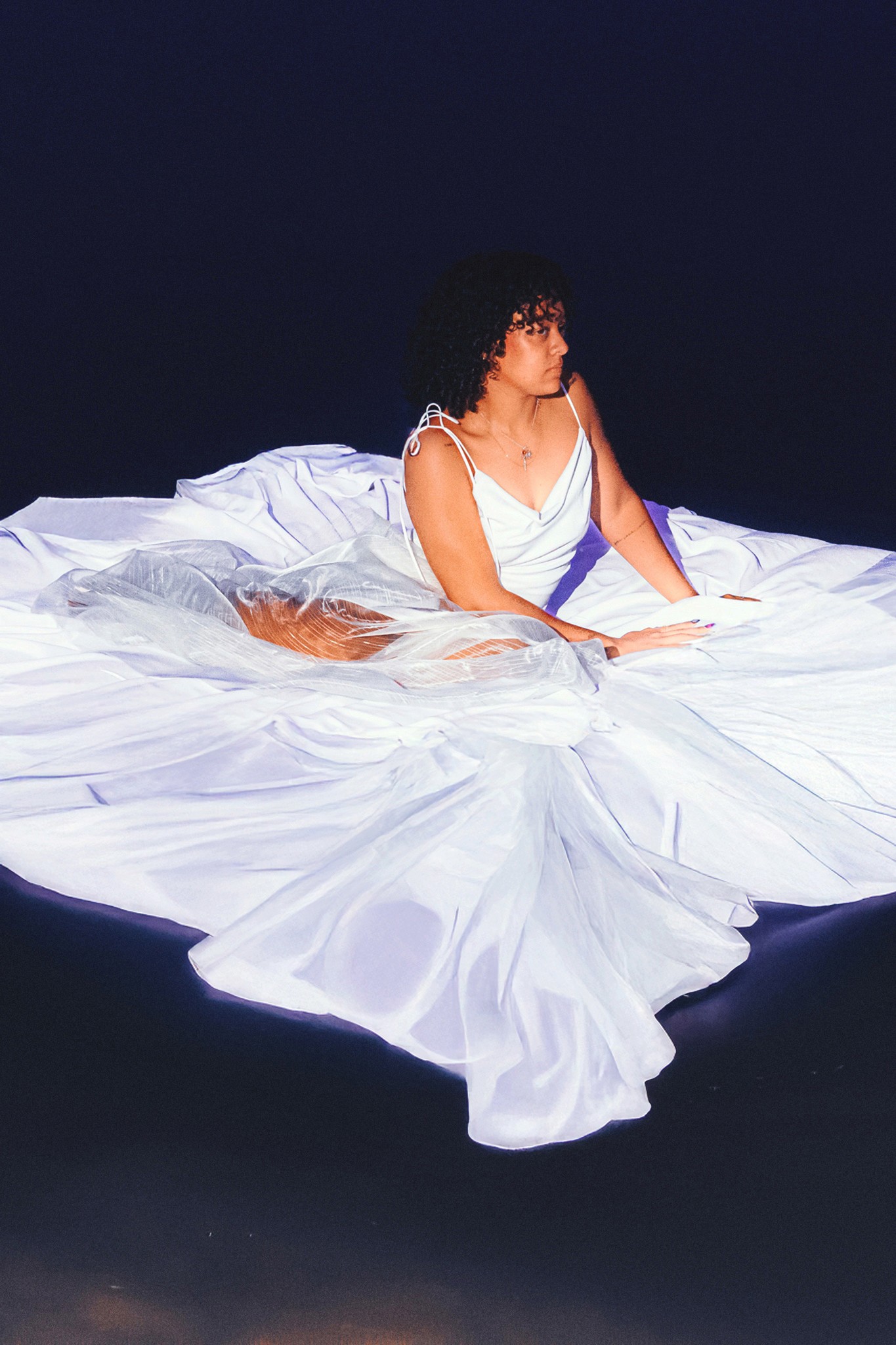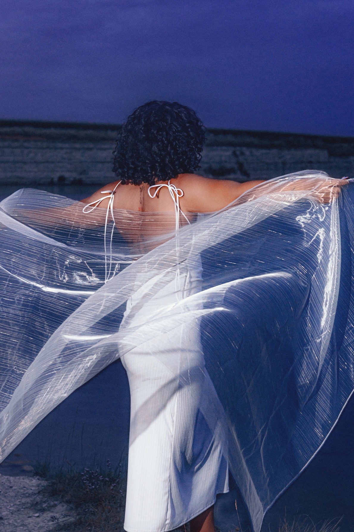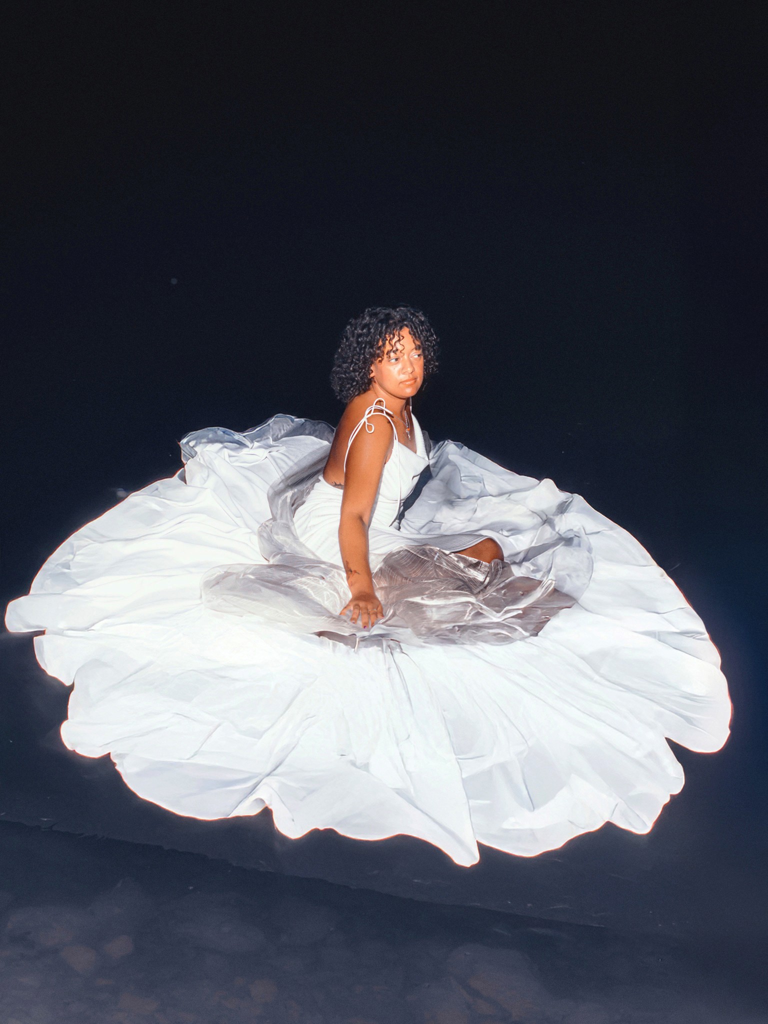 Nymphe, c’est ce lien entre la femme et la nature transformée en icône. C’est un mot ancien qui résonne encore aujourd’hui, une façon de parler de mystère et de force en même temps. Je l’ai choisi parce que cette série, pour moi, c’est ça : une présence fluide, inclassable, presque mythologique.