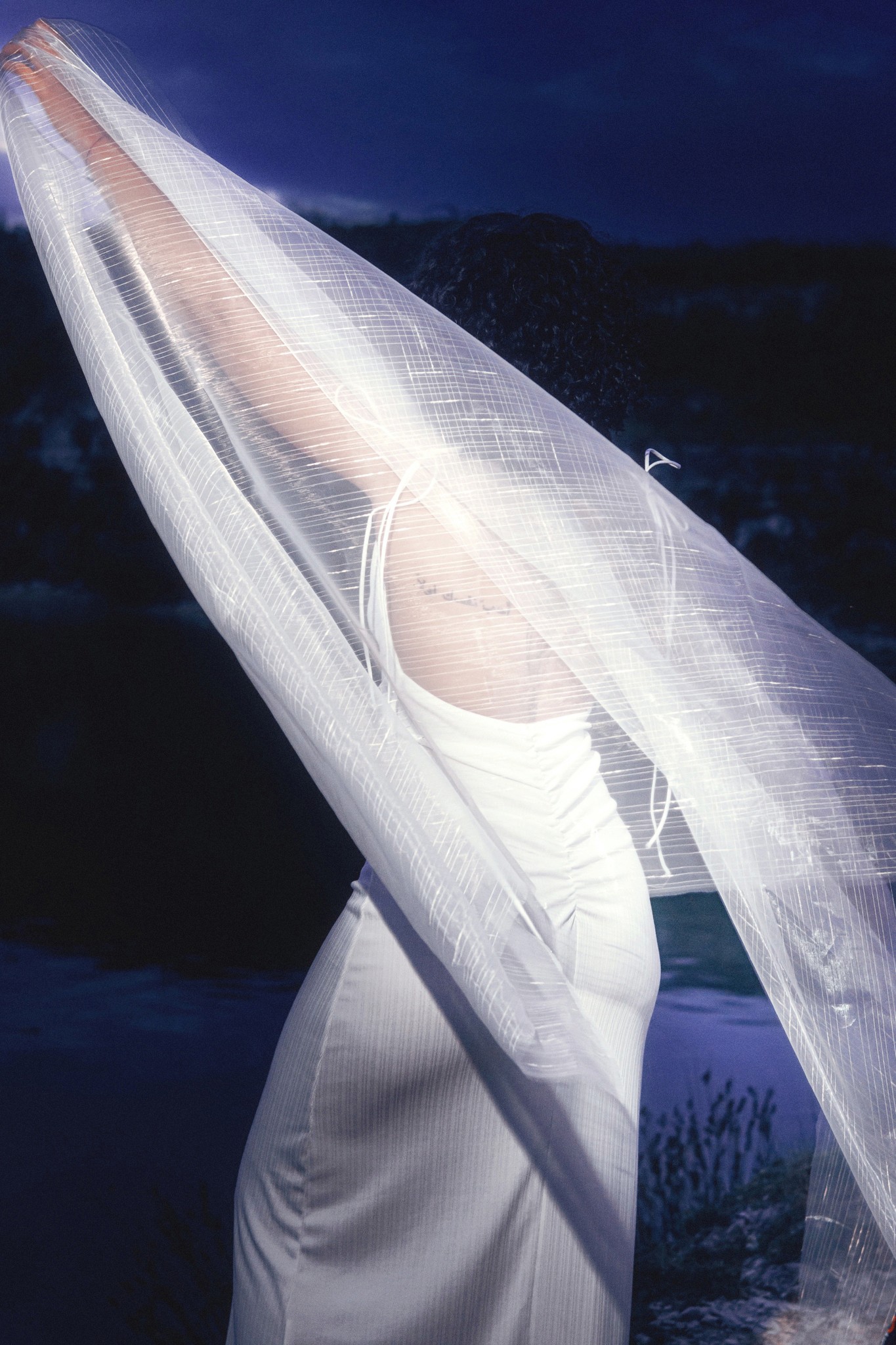 Je pensais à certaines scènes de “The Love Witch”, pour l’iconisation du personnage. Il y a aussi une vibe à la Tim Walker, dans l’idée d’une silhouette qui appartient à un autre monde. Et un clin d’oeil discret aux nymphes préraphaélites, pour cette manière de poser sans jamais s’ancrer tout à fait.