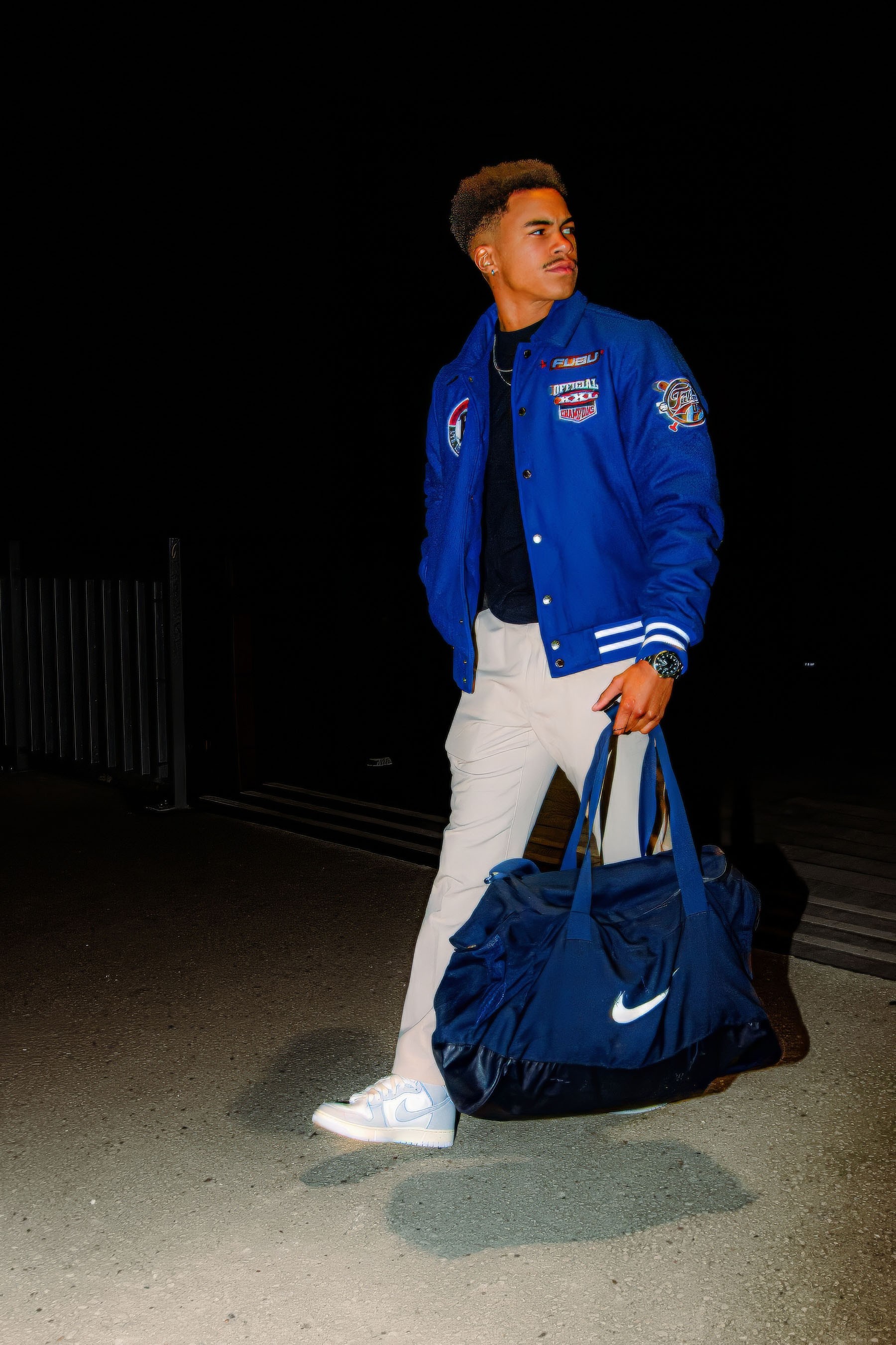 C’est très inspiré des shootings streetwear de Kappa ou Nike des années 2000, mais avec une retouche plus moderne. On retrouve un peu le côté "after game" des clips de Chris Brown ou les looks de campagne FUBU mixés au style NBA tunnel walk. J’avais aussi en tête certaines photos de GQ Sport, où les athlètes deviennent des mannequins sans perdre leur essence.