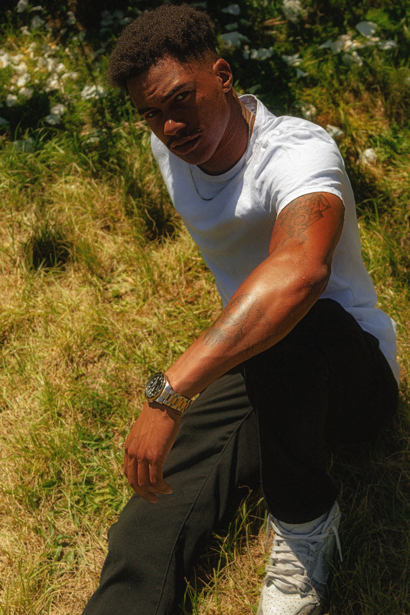 “Ozon” se détache du mot “ozone”, mais allégé, presque effleuré. Il évoque l’air, la respiration, la haute atmosphère et les instants où tout devient plus clair. C’est un mot doux, flou, à la sonorité presque cosmique, qui traduit bien l’énergie tranquille du shoot. Il pourrait être le nom d’une brise d’été, ou celui d’un élément invisible mais essentiel. En ce sens, le nom est un souffle, une couche protectrice, une enveloppe invisible qui amplifie le pouvoir visuel de la série.