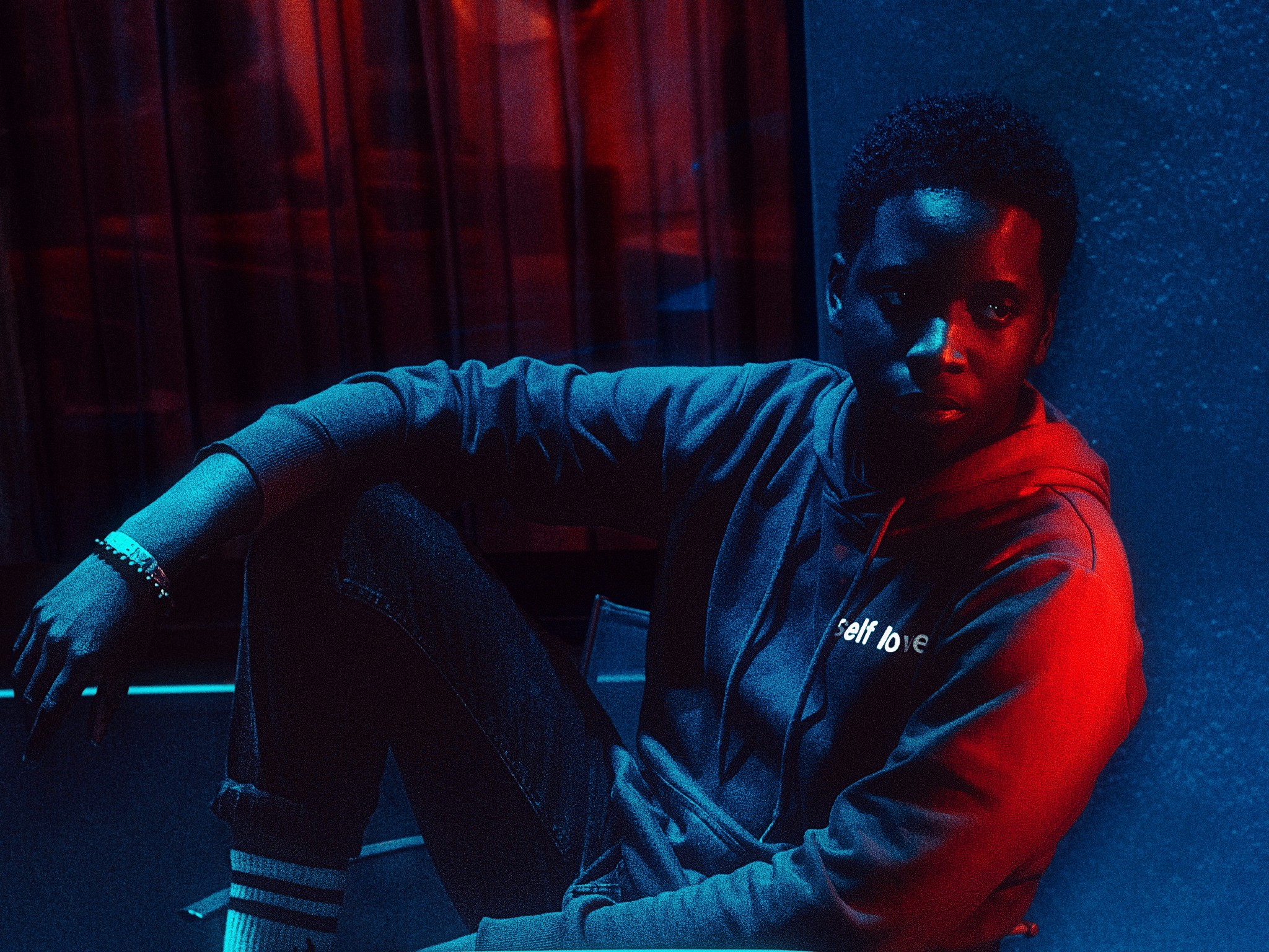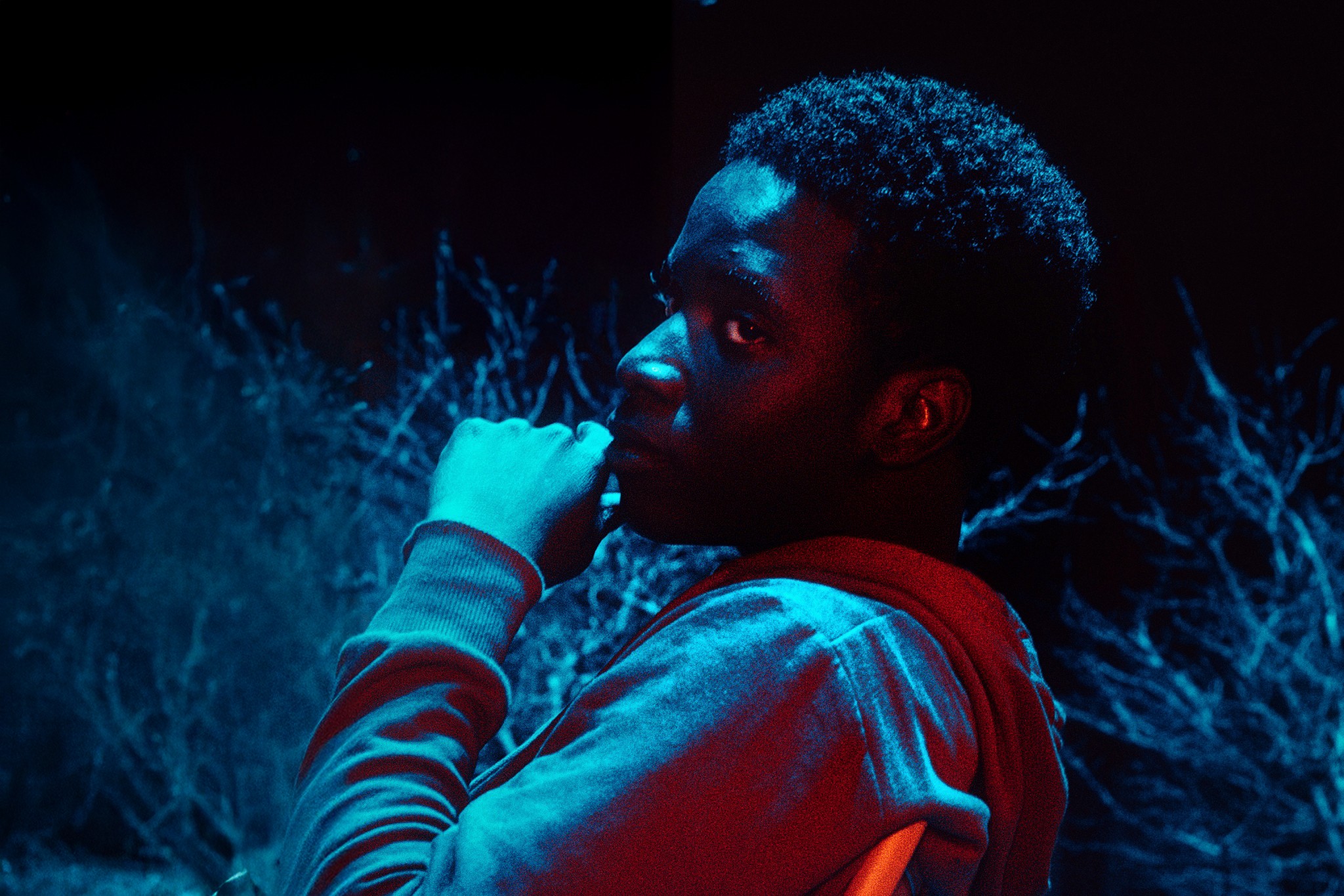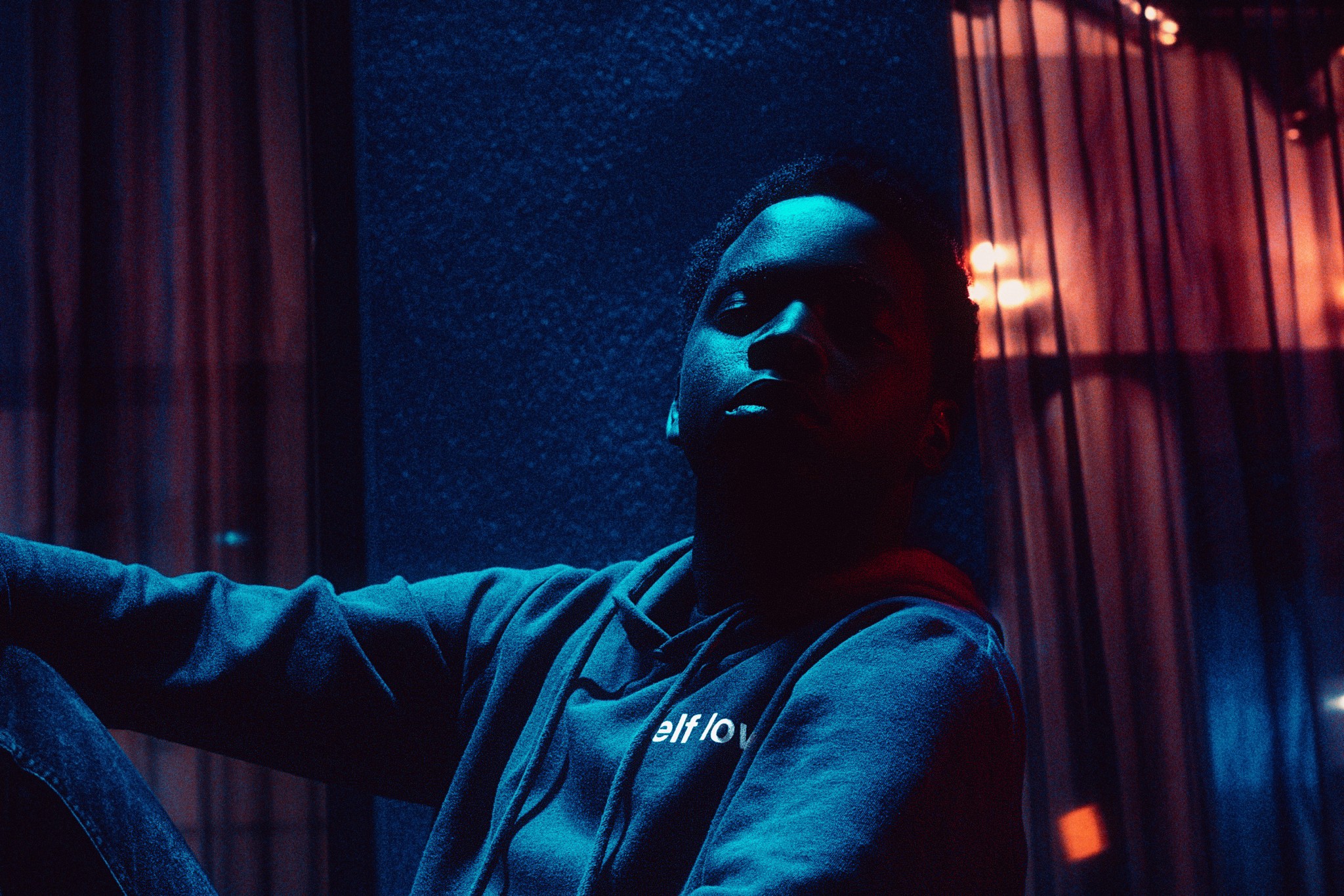 Le traitement chromatique fait penser aux films de Nicolas Winding Refn ou au clip “LOYALTY.” de Kendrick Lamar, où les couleurs deviennent langage. On retrouve aussi un peu du clair-obscur de Wong Kar-Wai dans les jeux d’ombres et la manière d’isoler le personnage. L’ambiance évoque les visuels streetwear underground, entre introspection et esthétique urbaine futuriste.