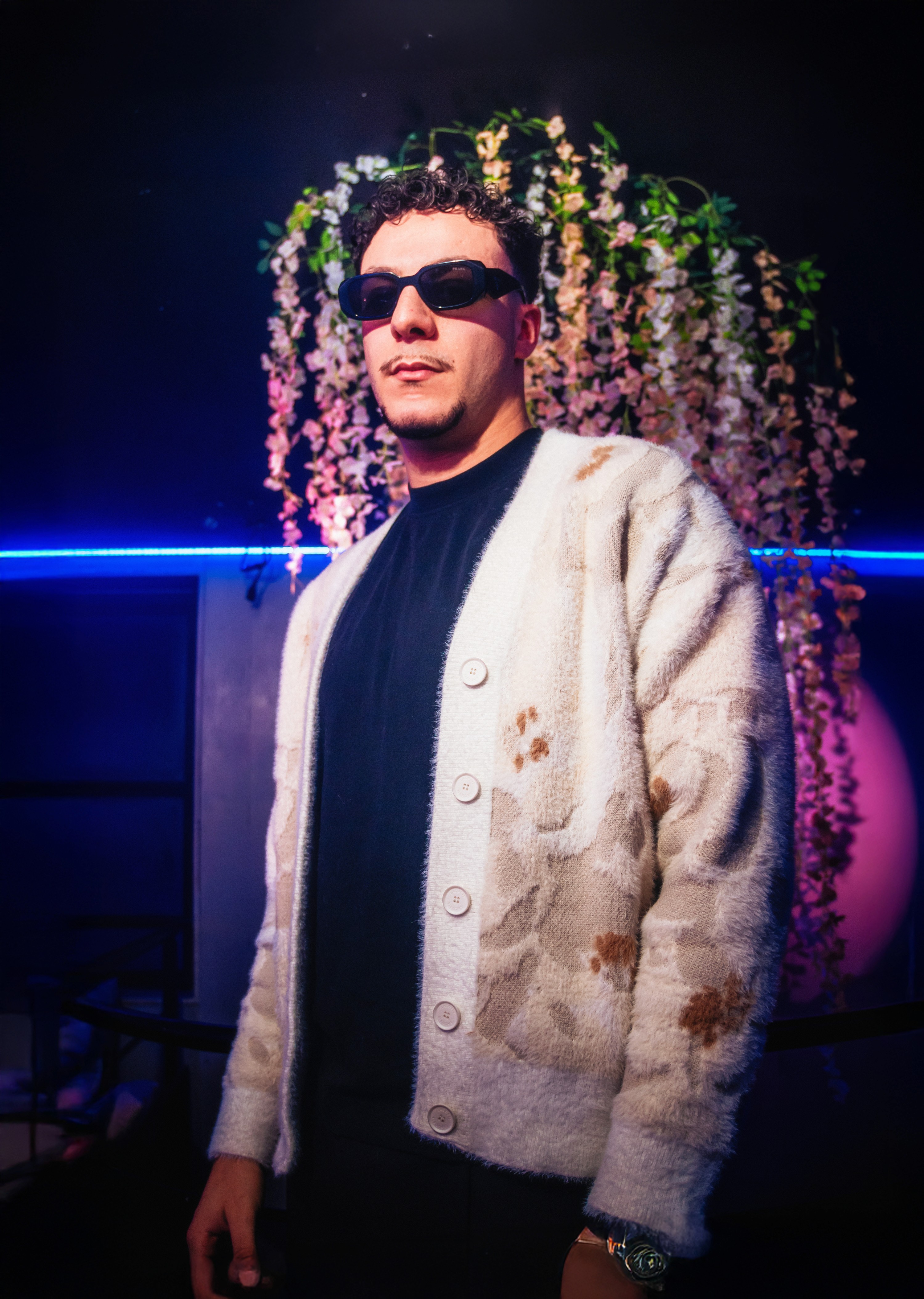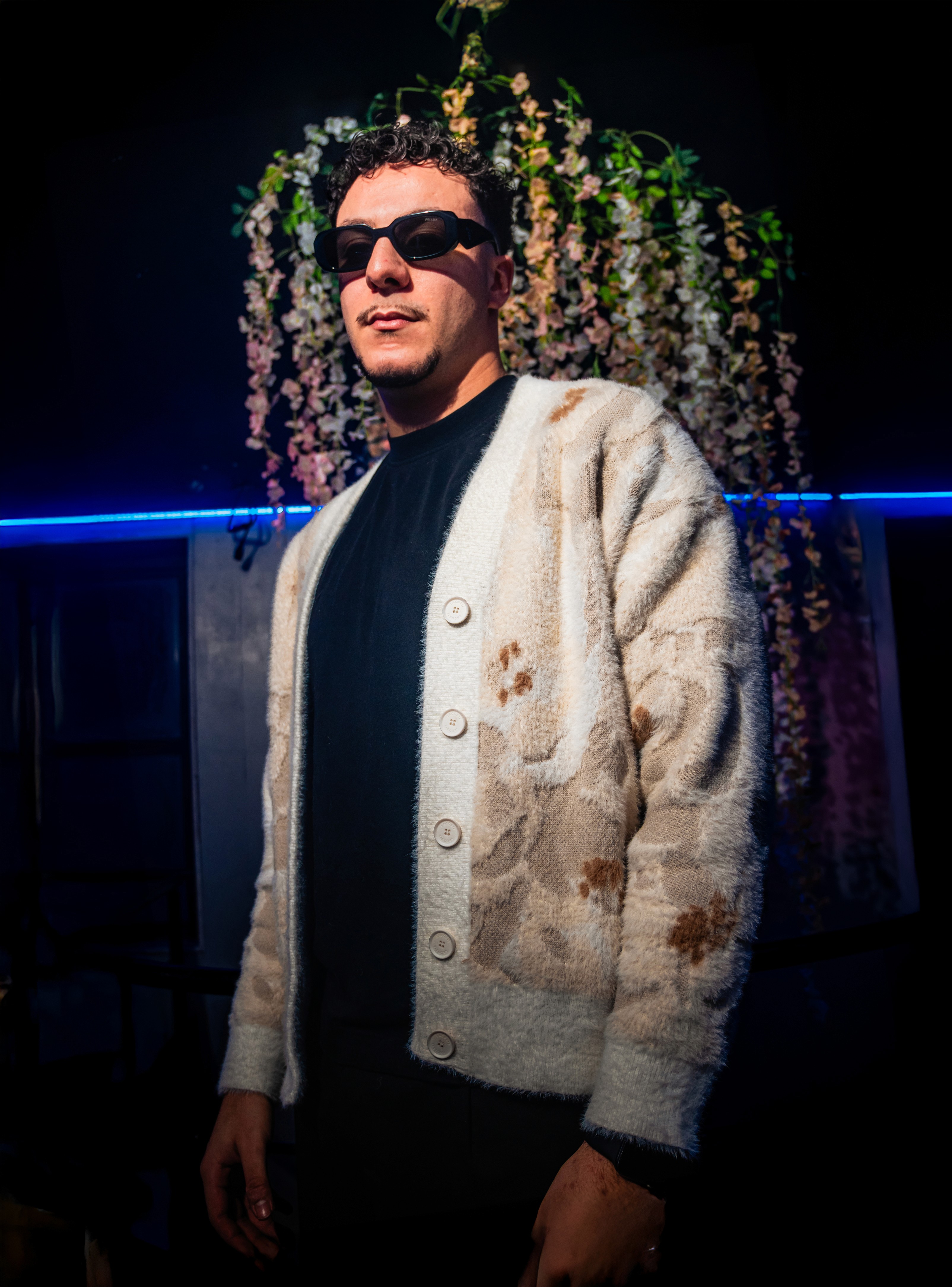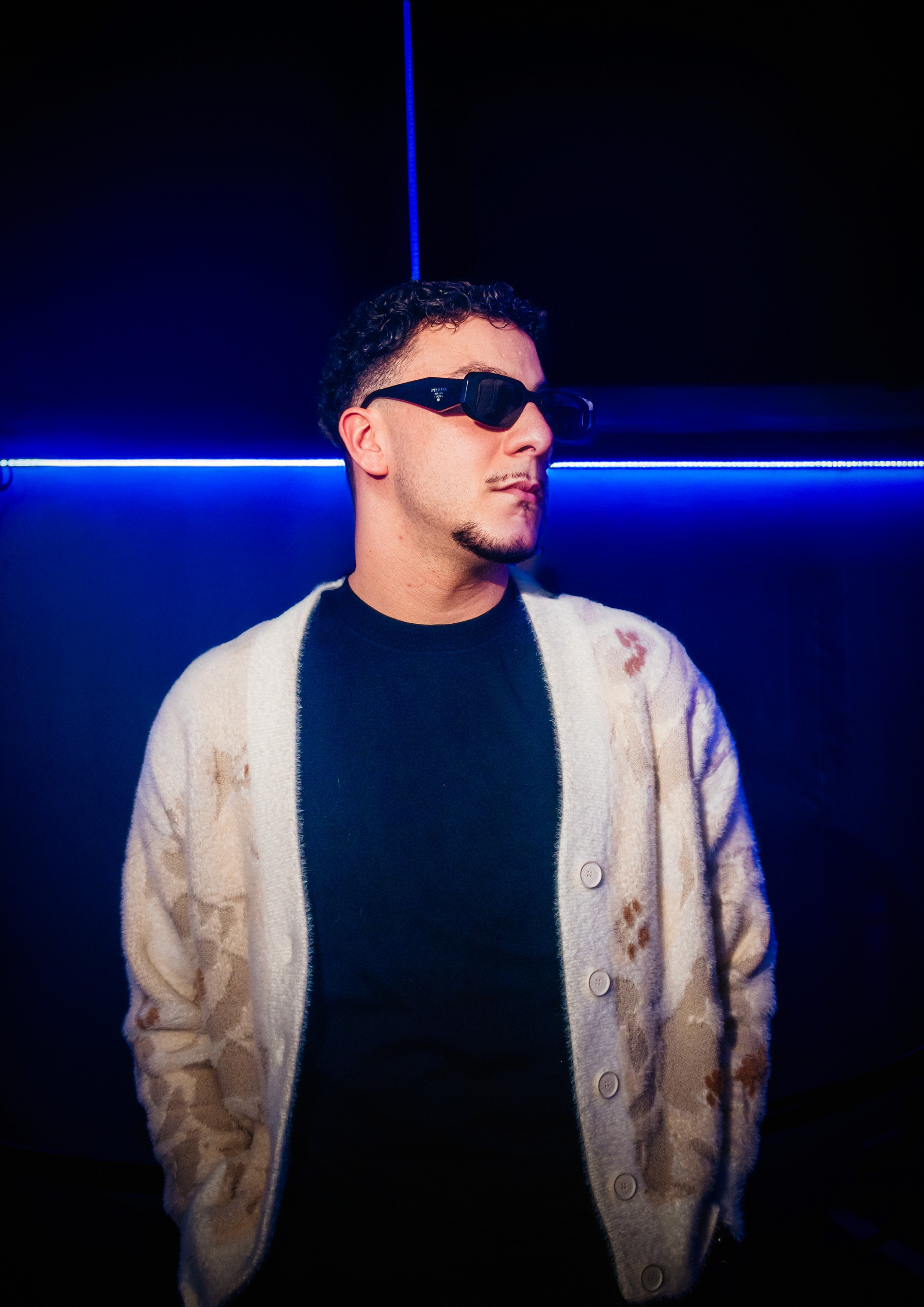 Le shoot navigue entre le lookbook Jacquemus remixé en club berlinois et l’univers visuel de clips de rap à la slowthai, Orelsan ou Laylow. Il y a un peu de Stranger Things dans la lumière, un peu de mode italienne dans la coupe, et un max d’ego visuel dans la manière de poser.