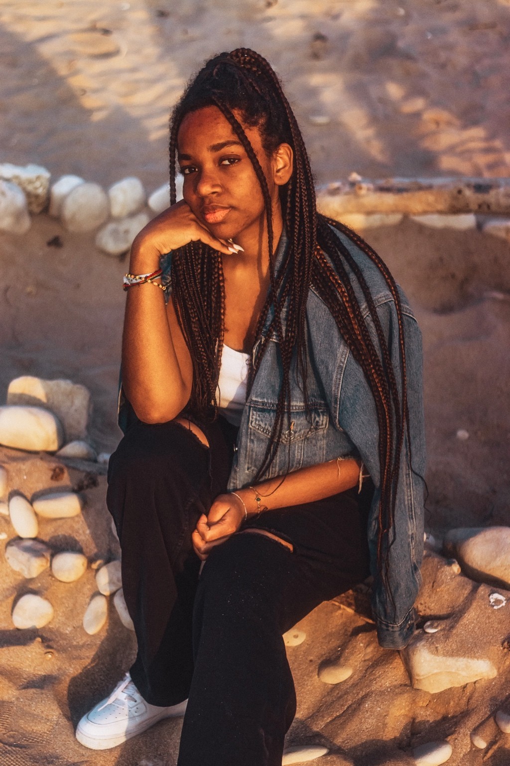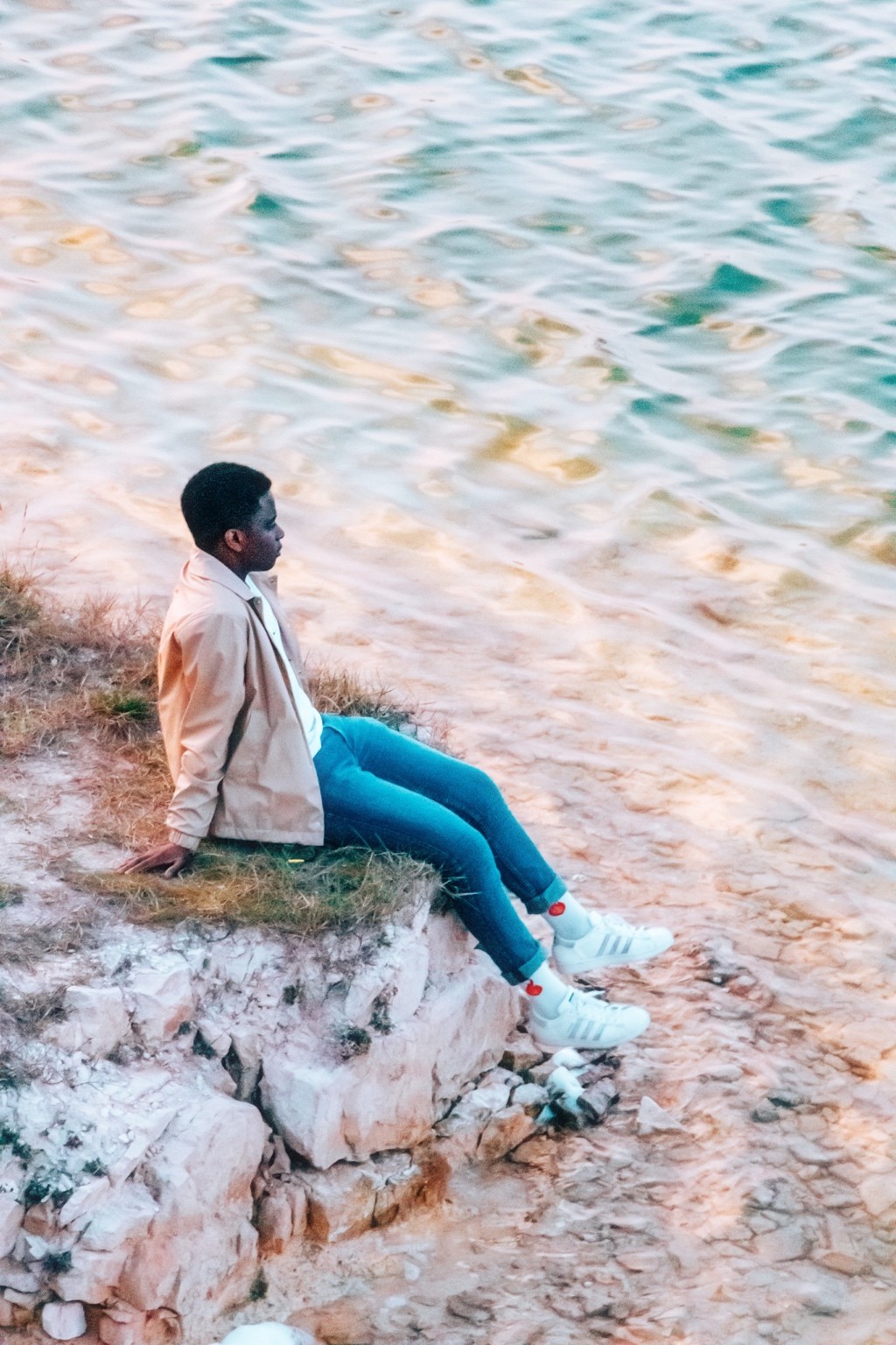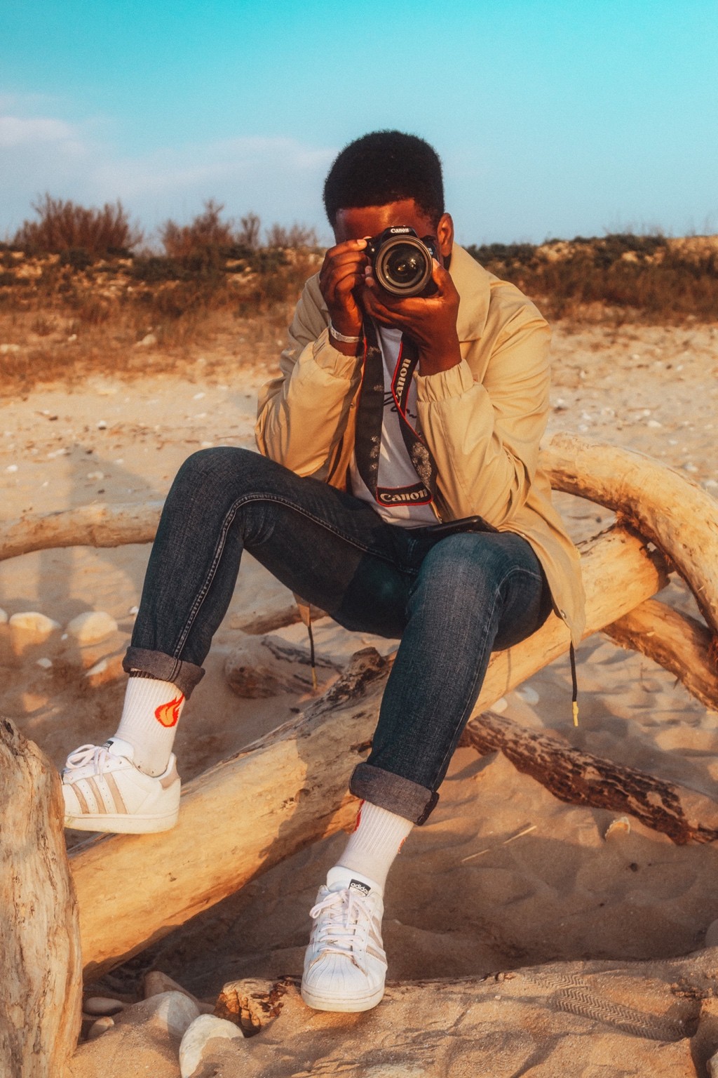 Dans ma tête y’avait du Ren Hang dans le décalage doux, un peu de Petra Collins pour la lumière dorée naturelle, et du old Kanye pour l’énergie silencieuse de fin de journée. Mais surtout, des souvenirs d’étés d’avant, avec des potes, à juste rien faire sauf être là. C’est un mix entre nostalgie, plage et modernité calme.