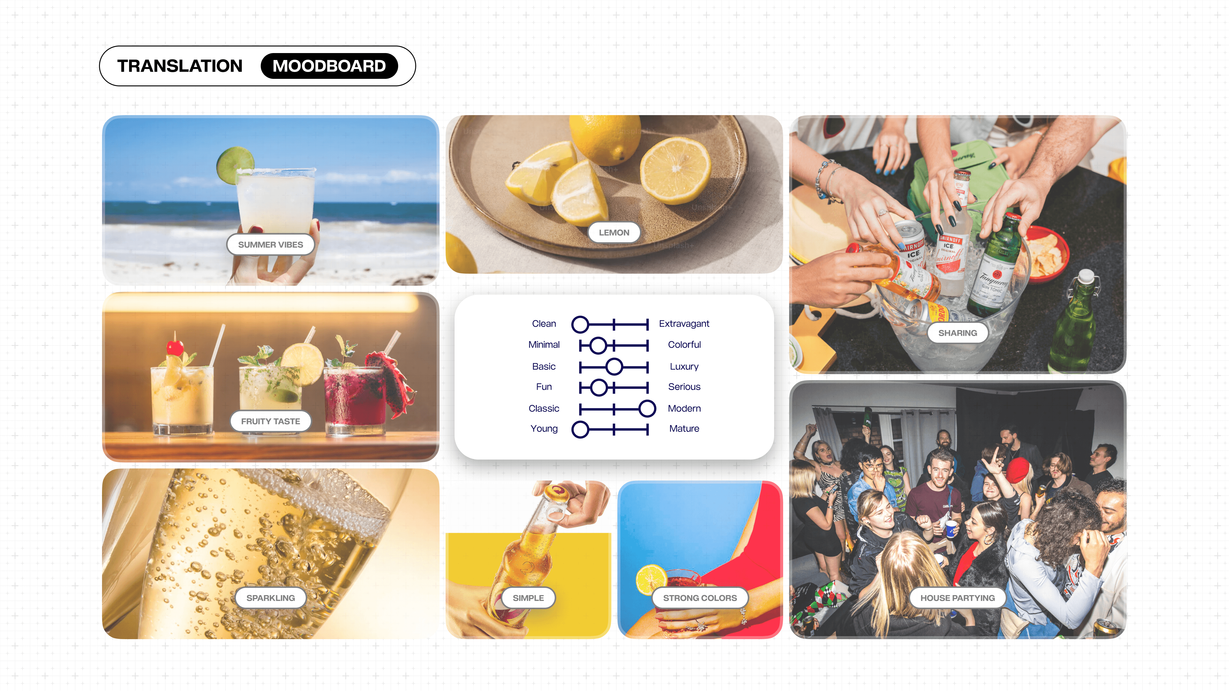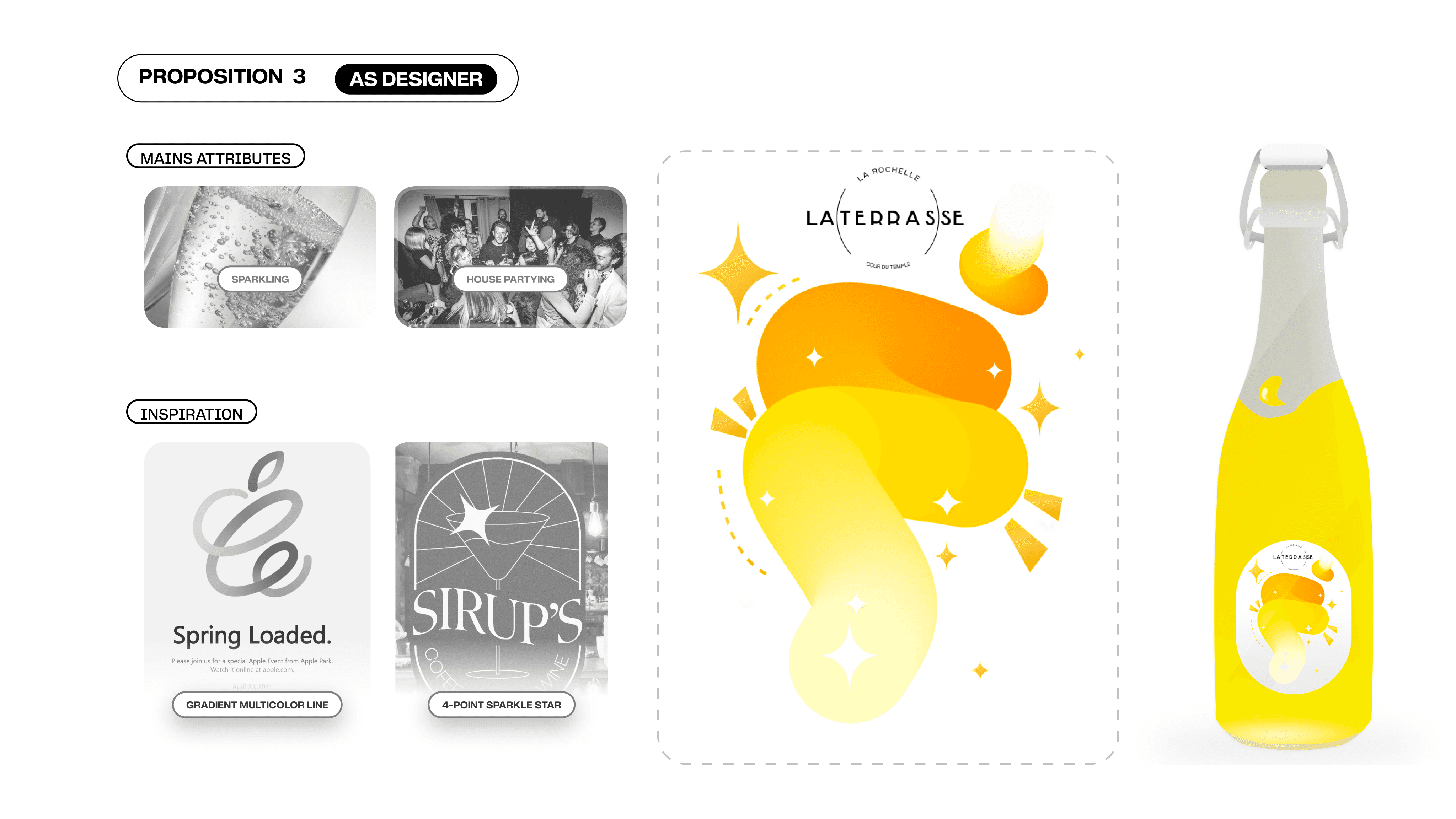 Créer un label de boisson pétillante simple et frais pour un bar festif, afin d'attirer un public jeune et étudiant avant la soirée.