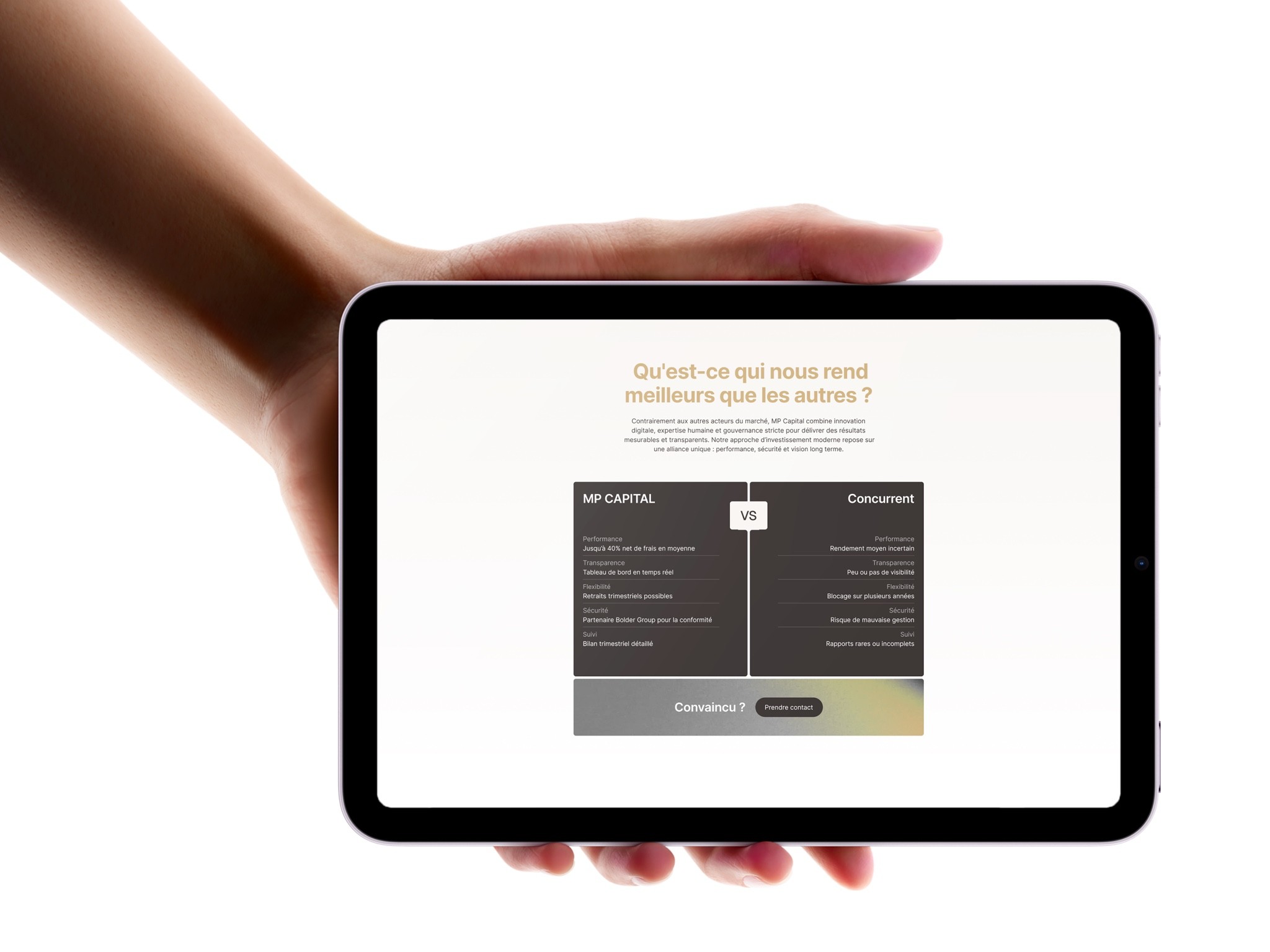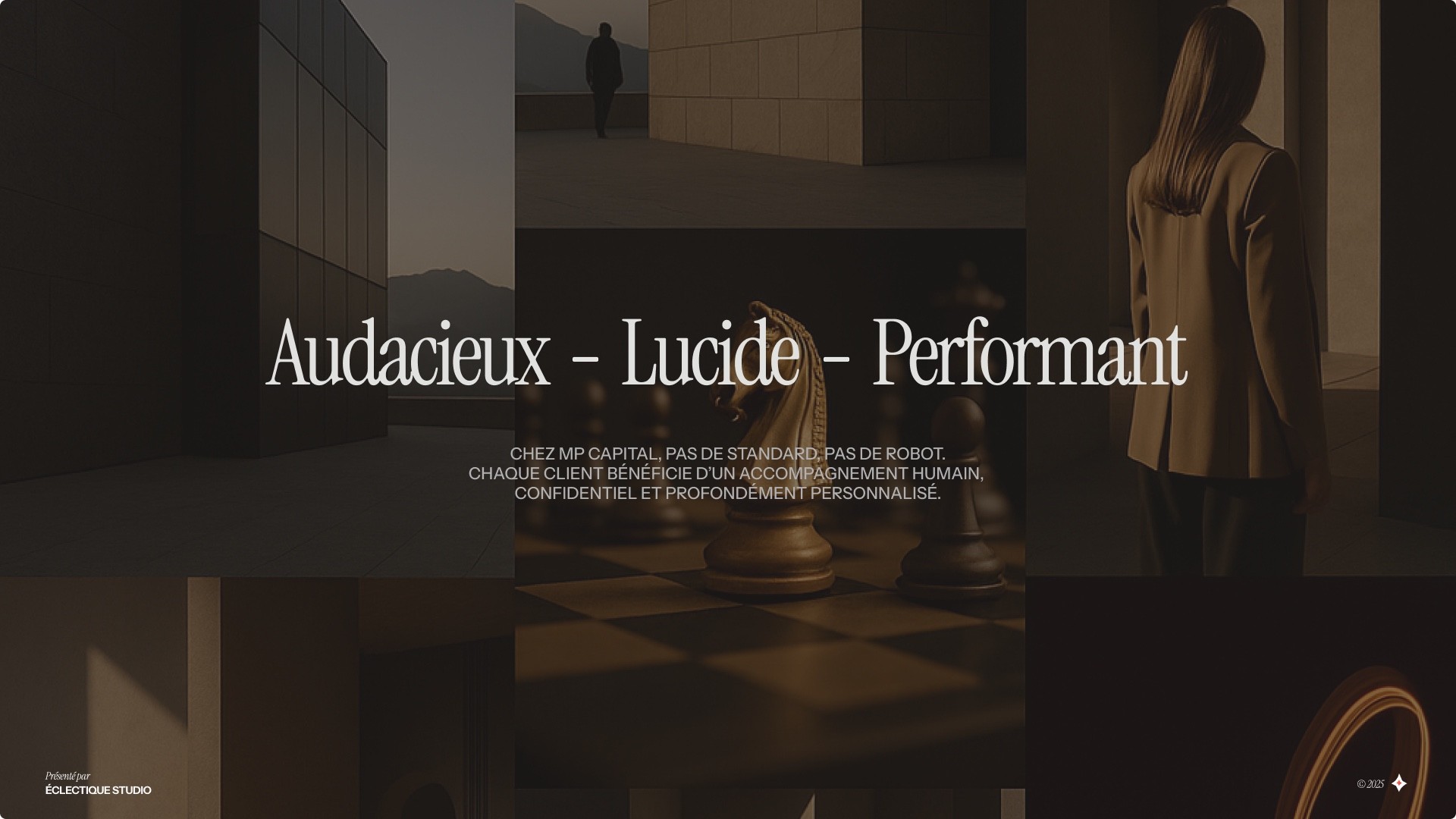 Dans un secteur saturé de marques austères, MP Capital voulait une identité qui inspire la confiance sans se perdre dans le formalisme. Le défi : trouver la juste tension entre solidité et élégance, professionnalisme et accessibilité.